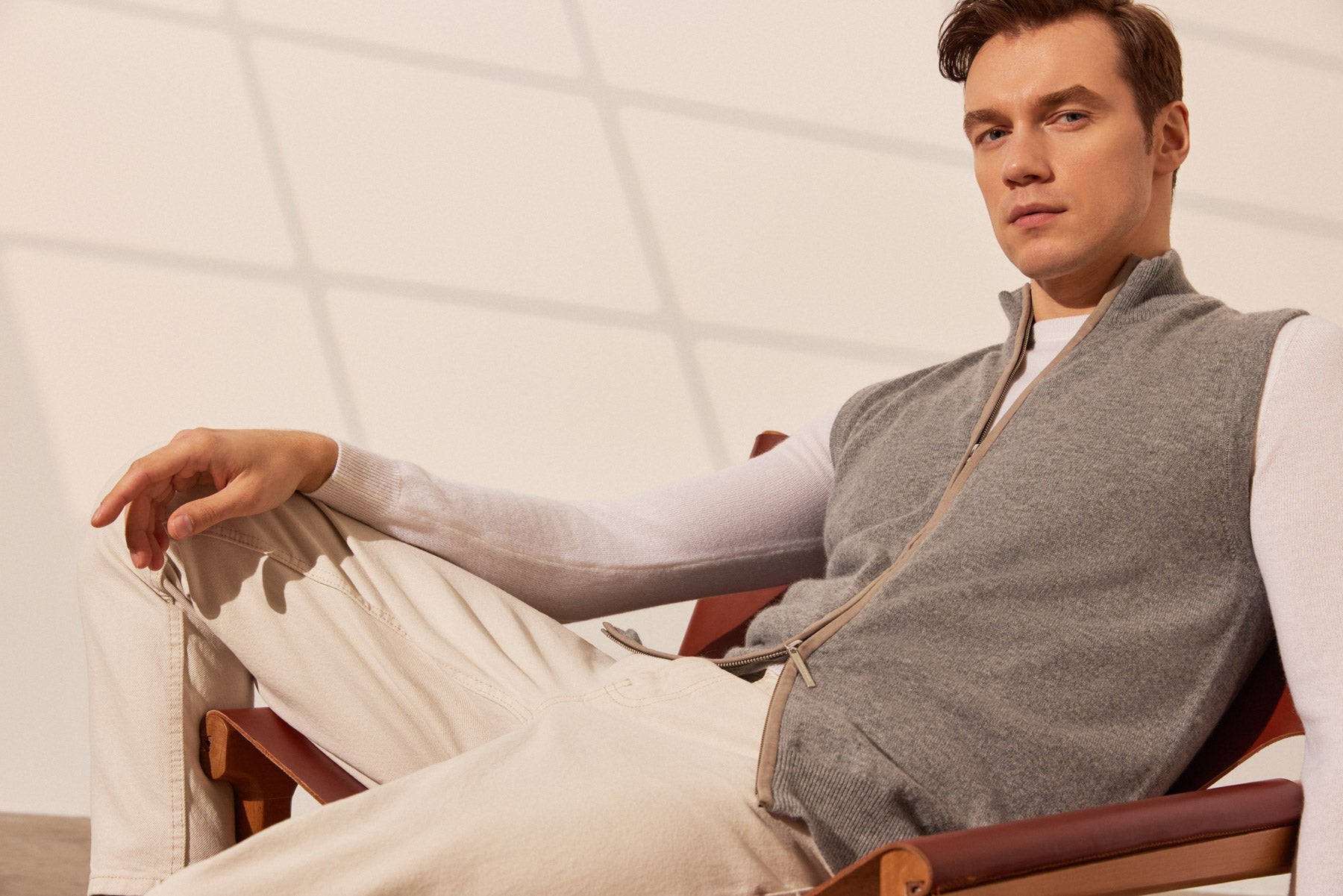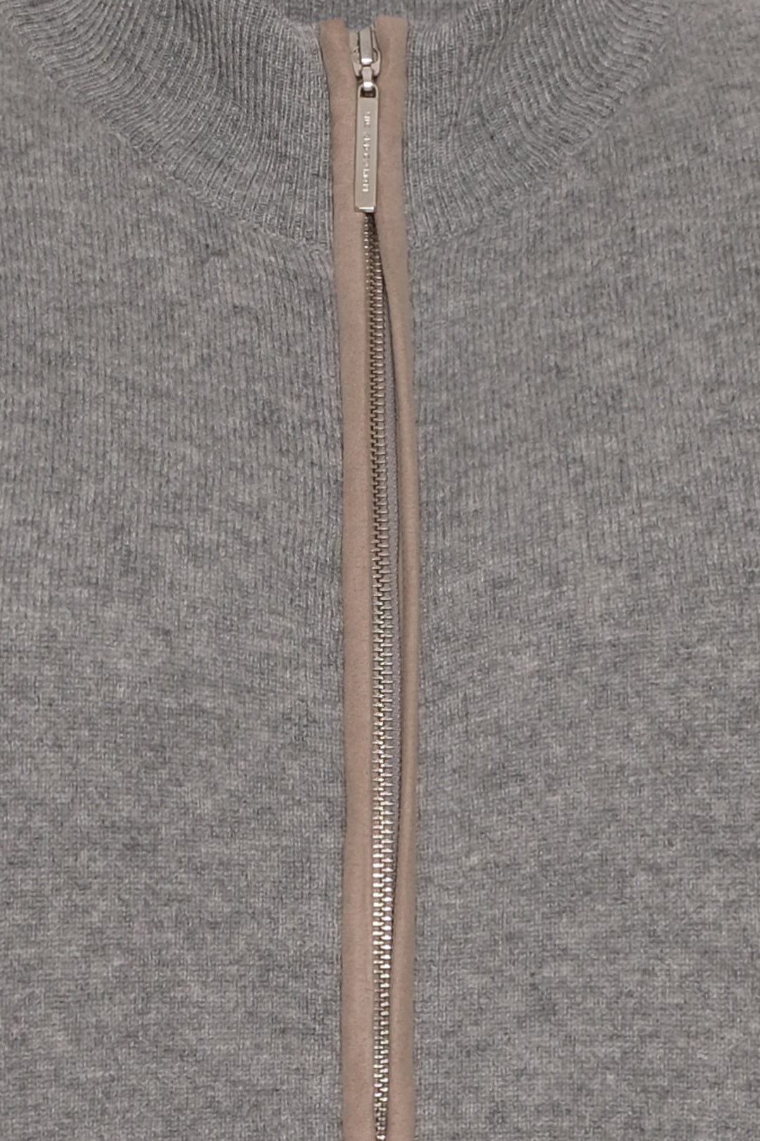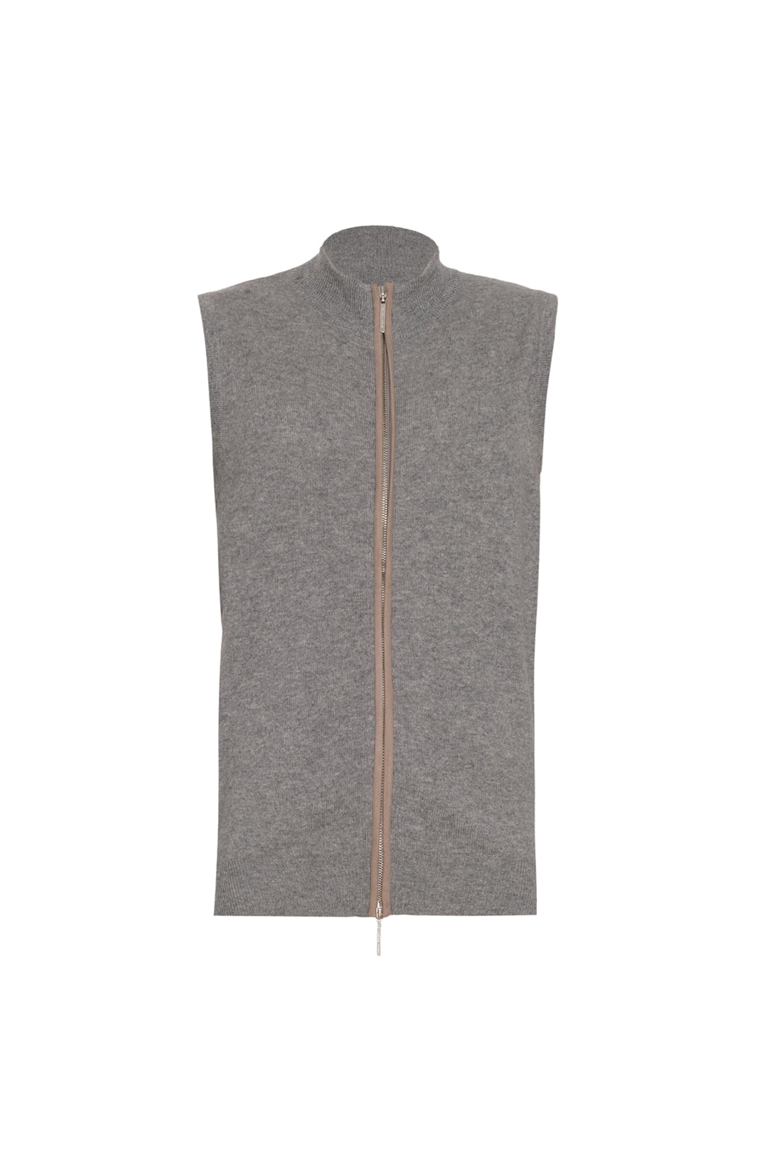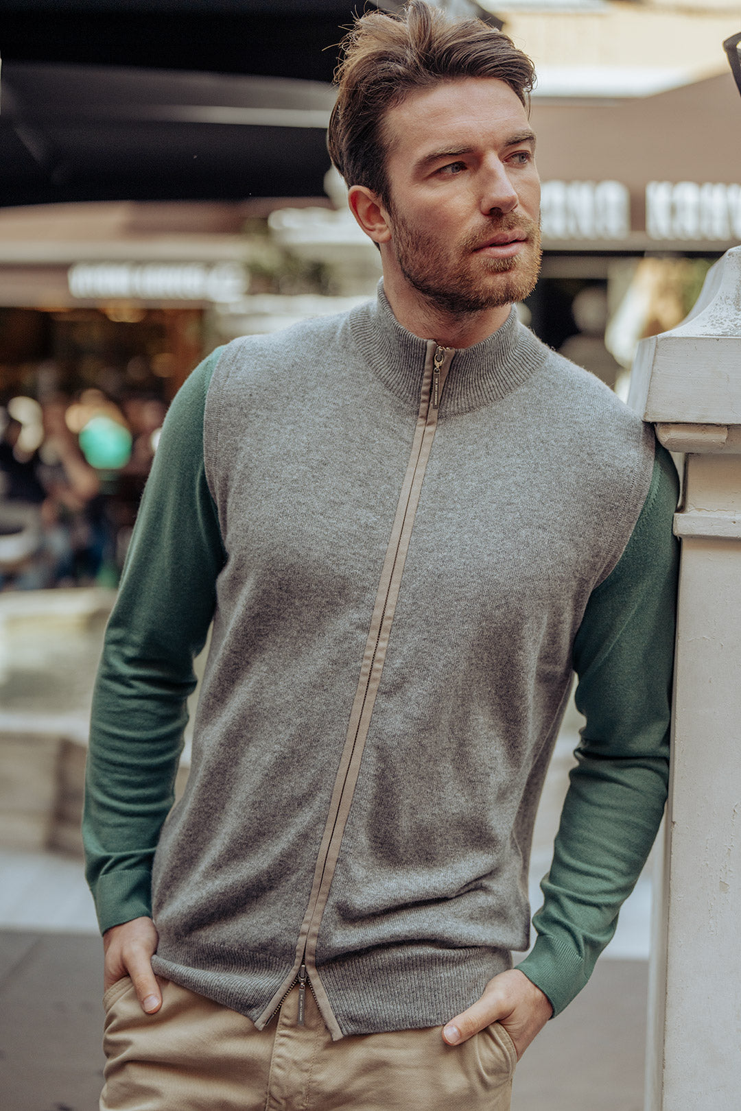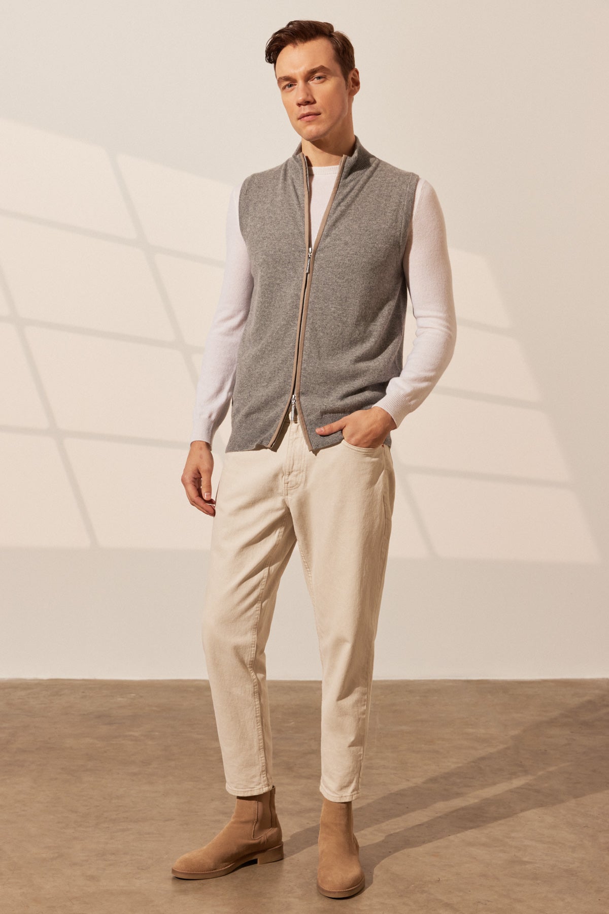 Orta Gri Melanj Saf Kaşmir Yarım Balıkçı Yaka Fermuarlı Erkek Yelek