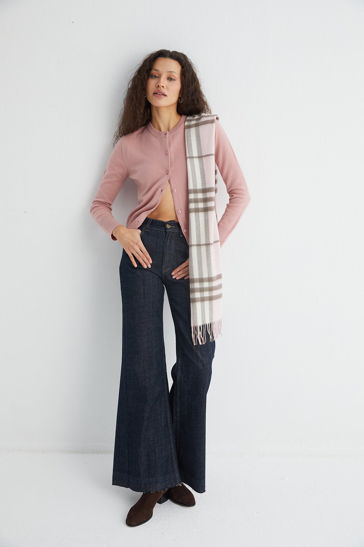 Pastel Pembe Lilly Hırka, yumuşak tonları ve doğal dokusuyla sizi konforlu bir zarafete davet ediyor. Saf kaşmirin üstün dokunuşu, bu klasik formda buluşarak sıcaklık, hafiflik ve asaletin dengeli bir yansımasını sunuyor. Sadelikten ilham alan bu özel parça, günlük yaşamın içinde şefkatli bir dokunuş gibi hissediliyor.