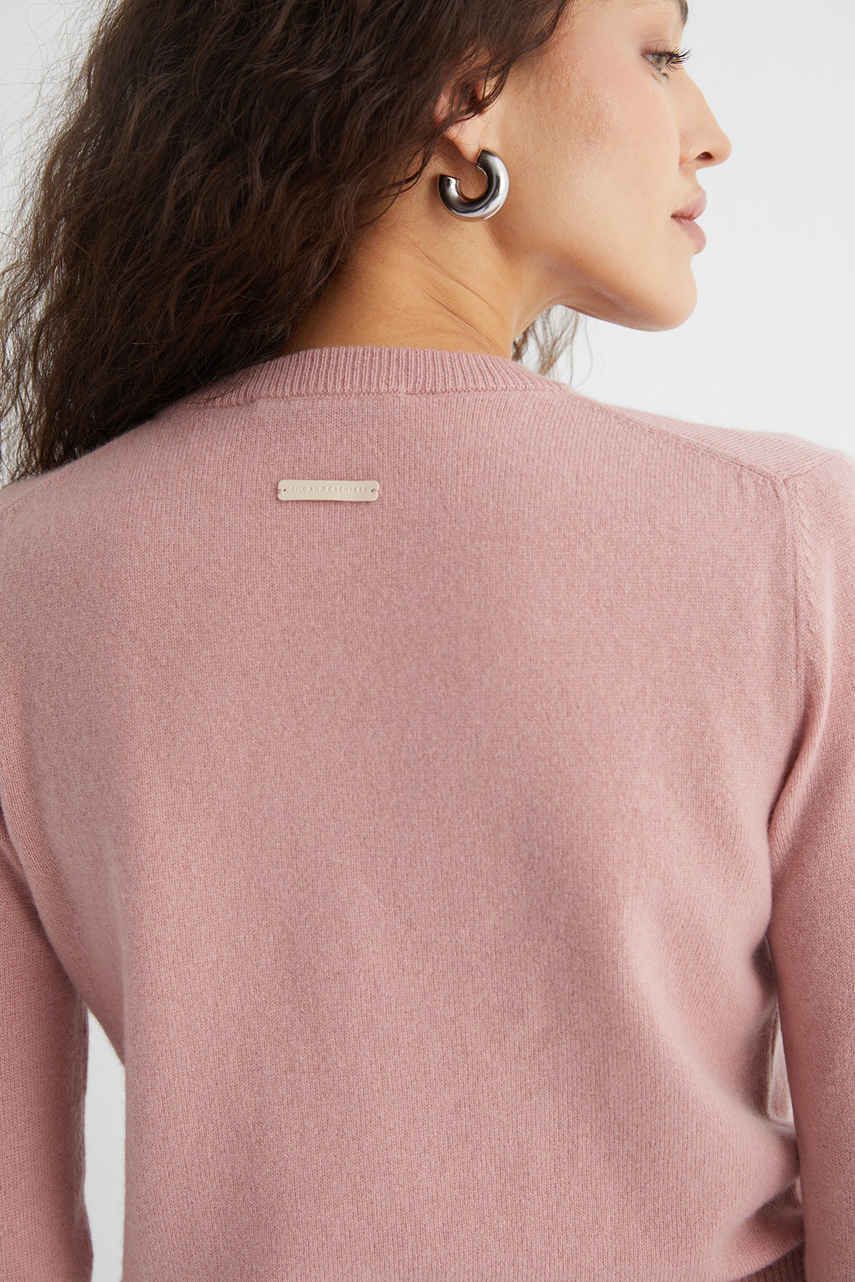 Pastel Pembe Lilly Saf Kaşmir Bisiklet Yaka Hırka