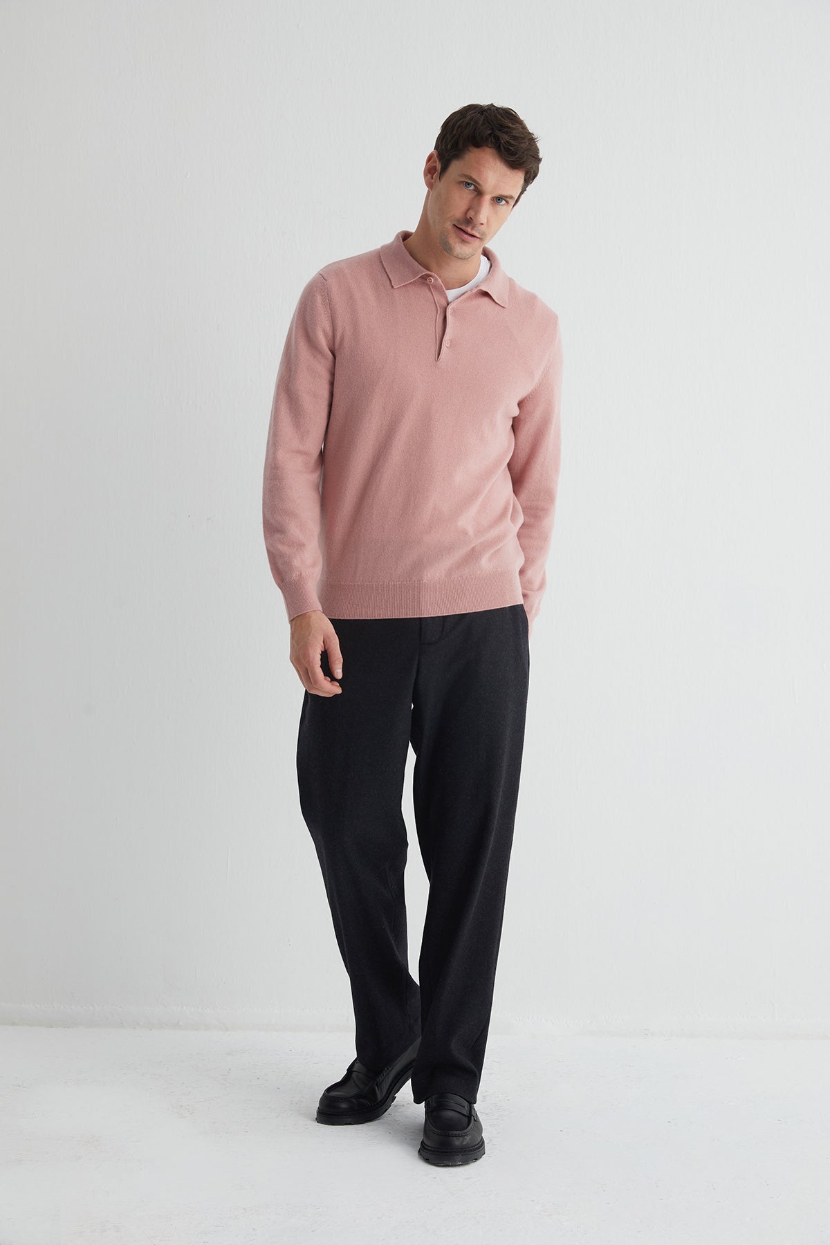 Kendine güvenen ve fark yaratan bir stilin parçası olan pastel pembe polo kazak, saf kaşmirin doğallığıyla form buluyor. Hafifliği ve yumuşaklığıyla bedene uyum sağlarken, sade tasarımıyla gündelik ritminize zahmetsizce eşlik eder.