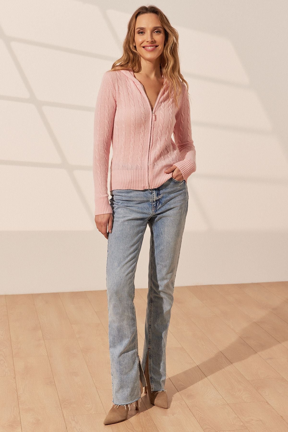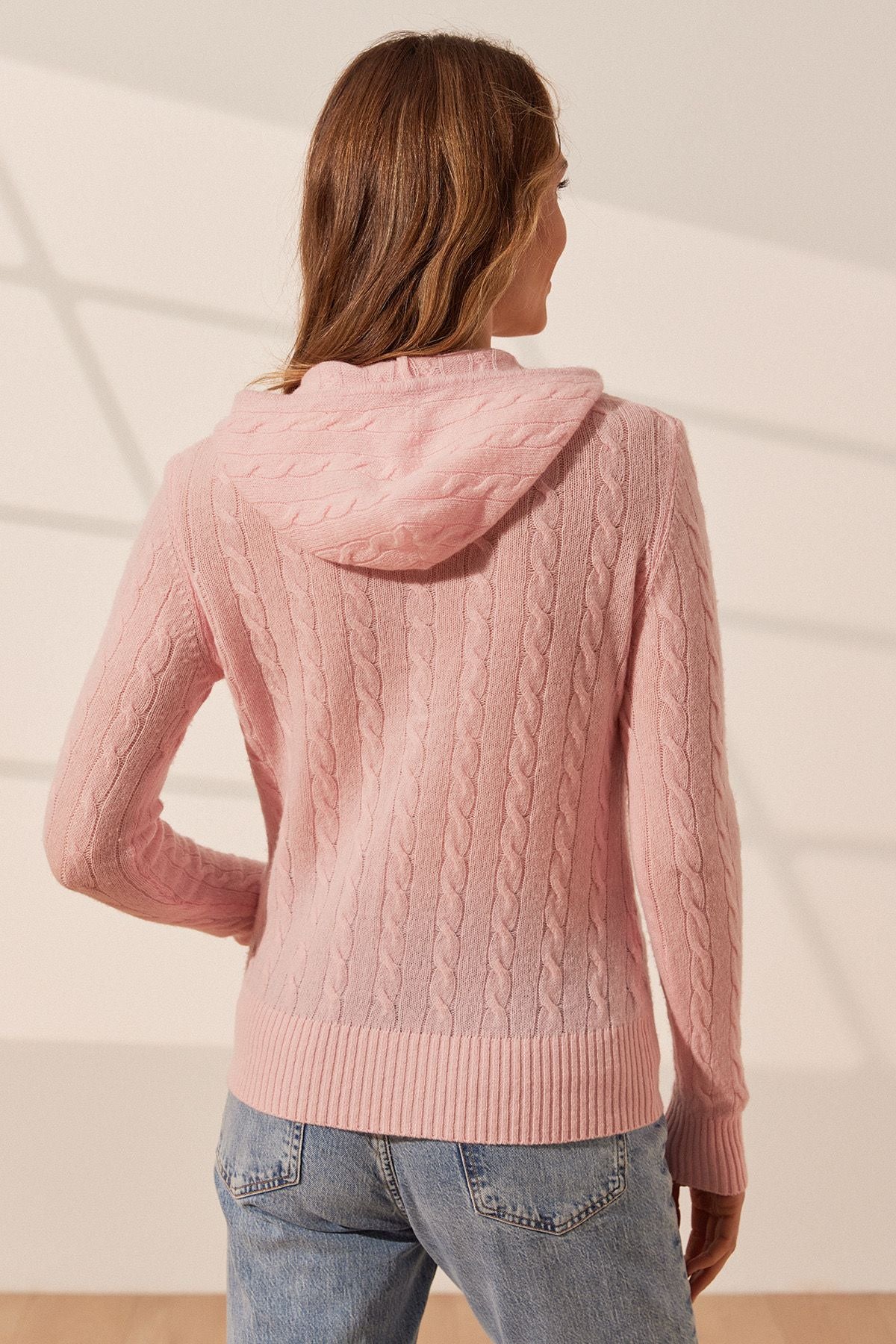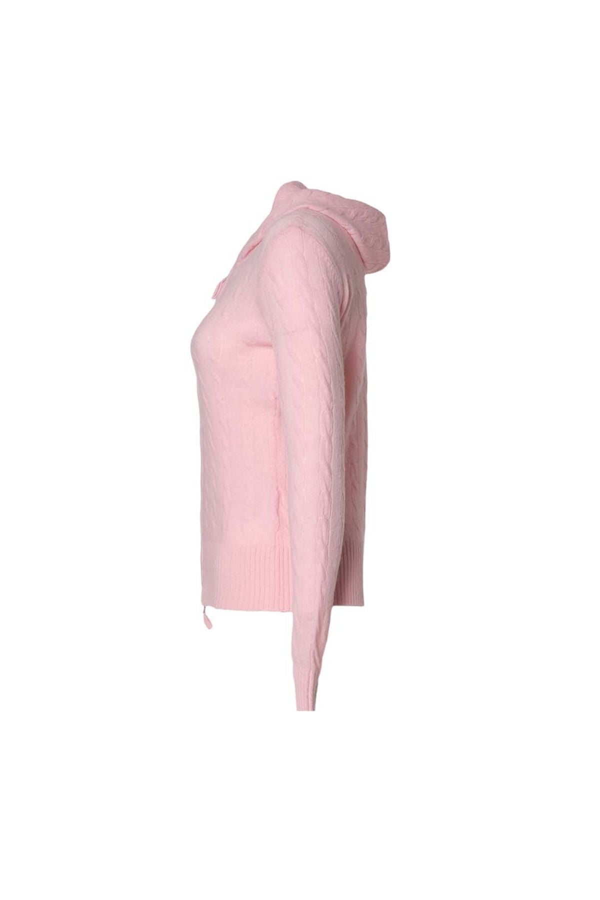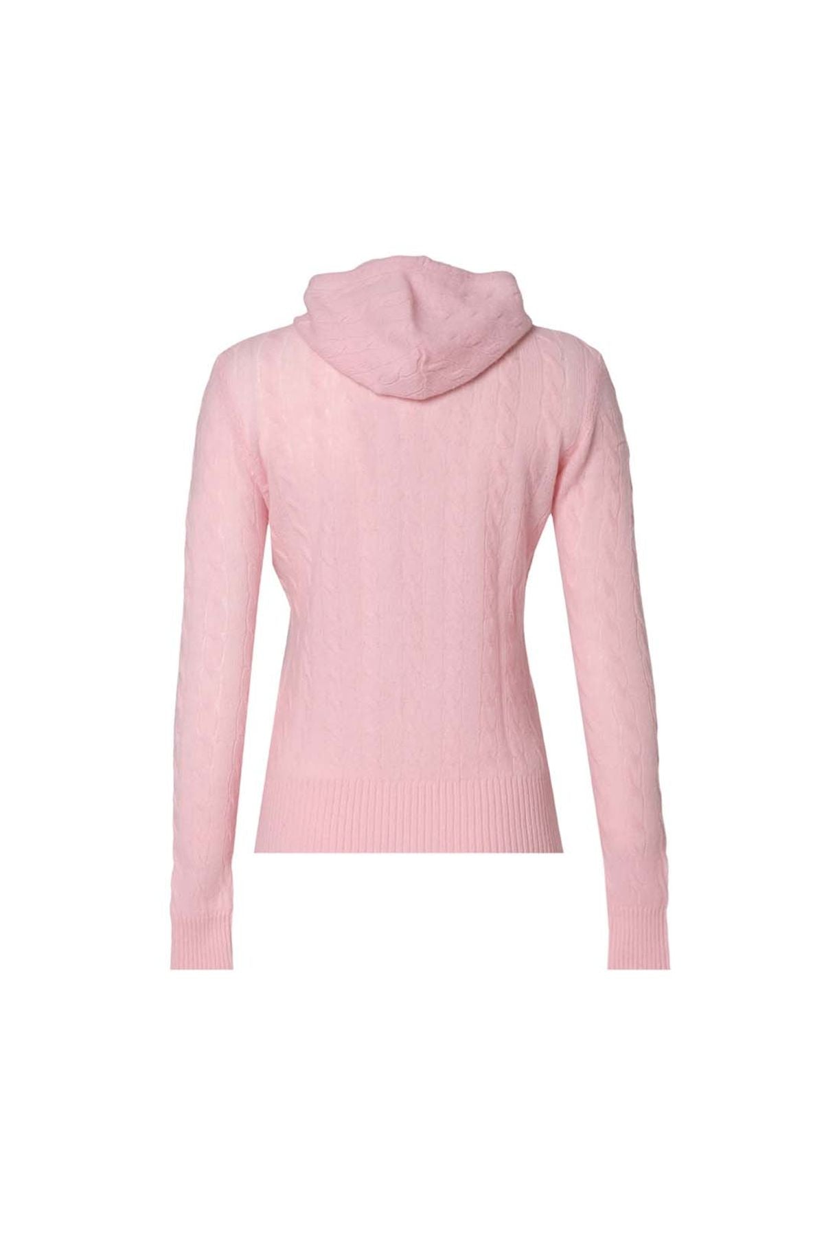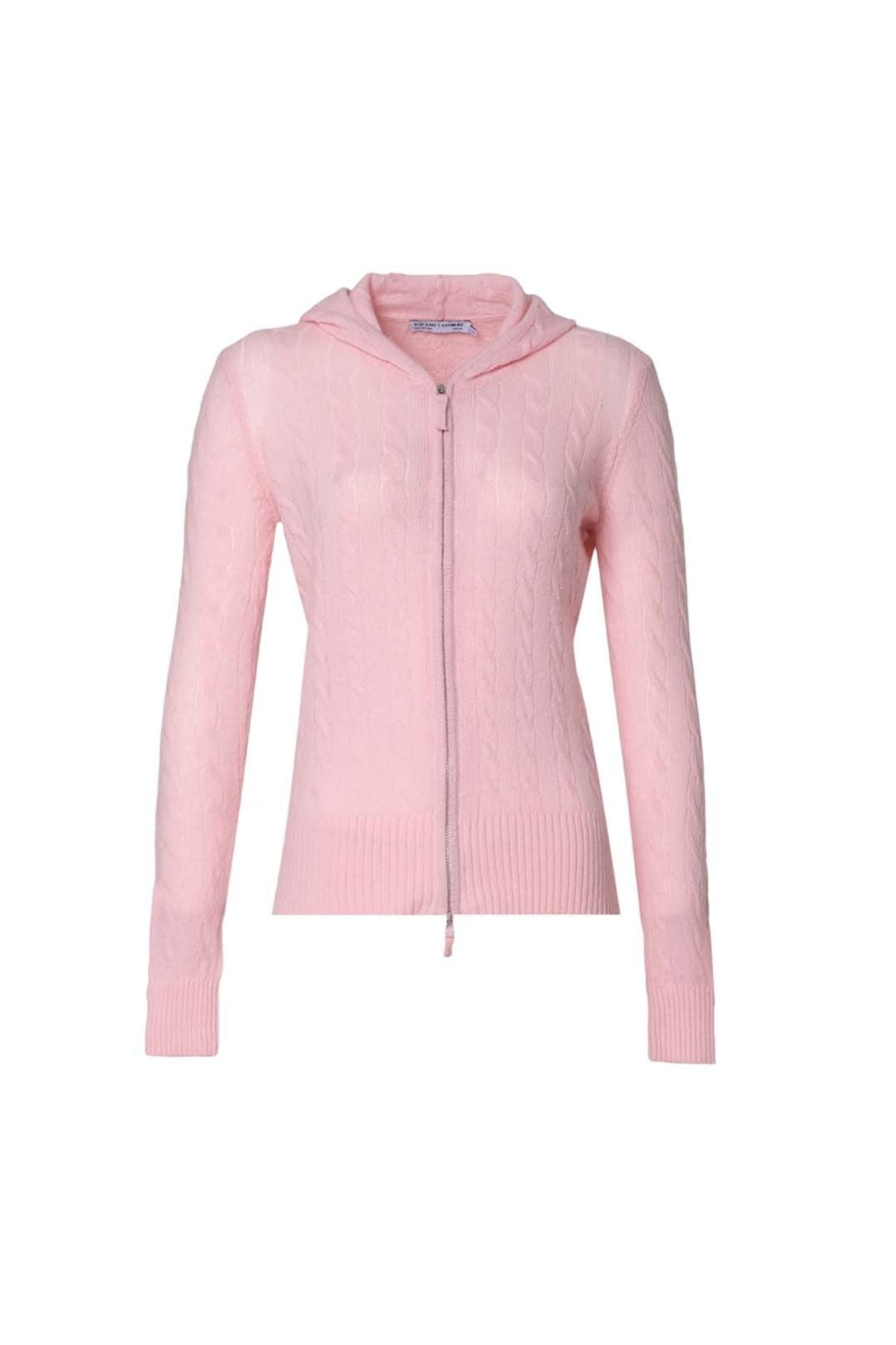 Pembe Amelia Avustralya Yünü Kaşmir Saç Örgülü Uzun Kollu Kadın Kapüşonlu Hırka