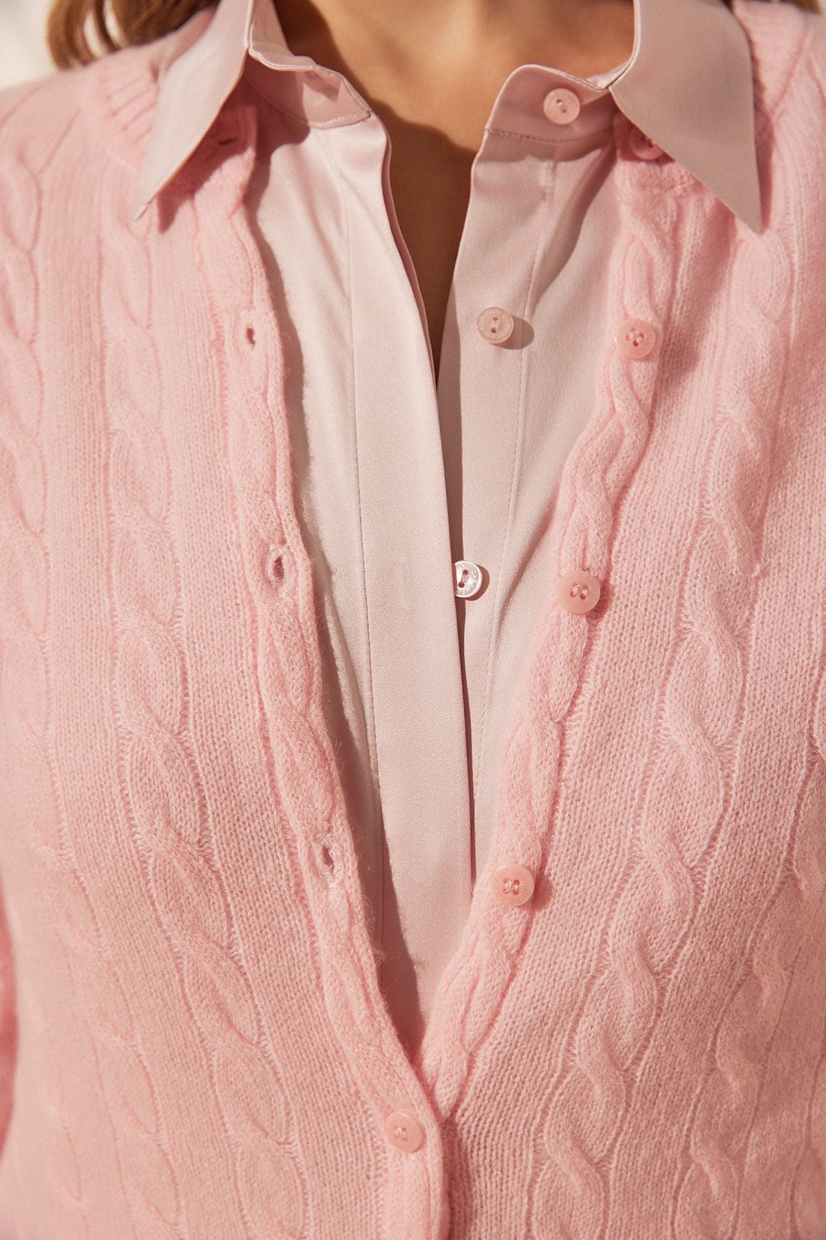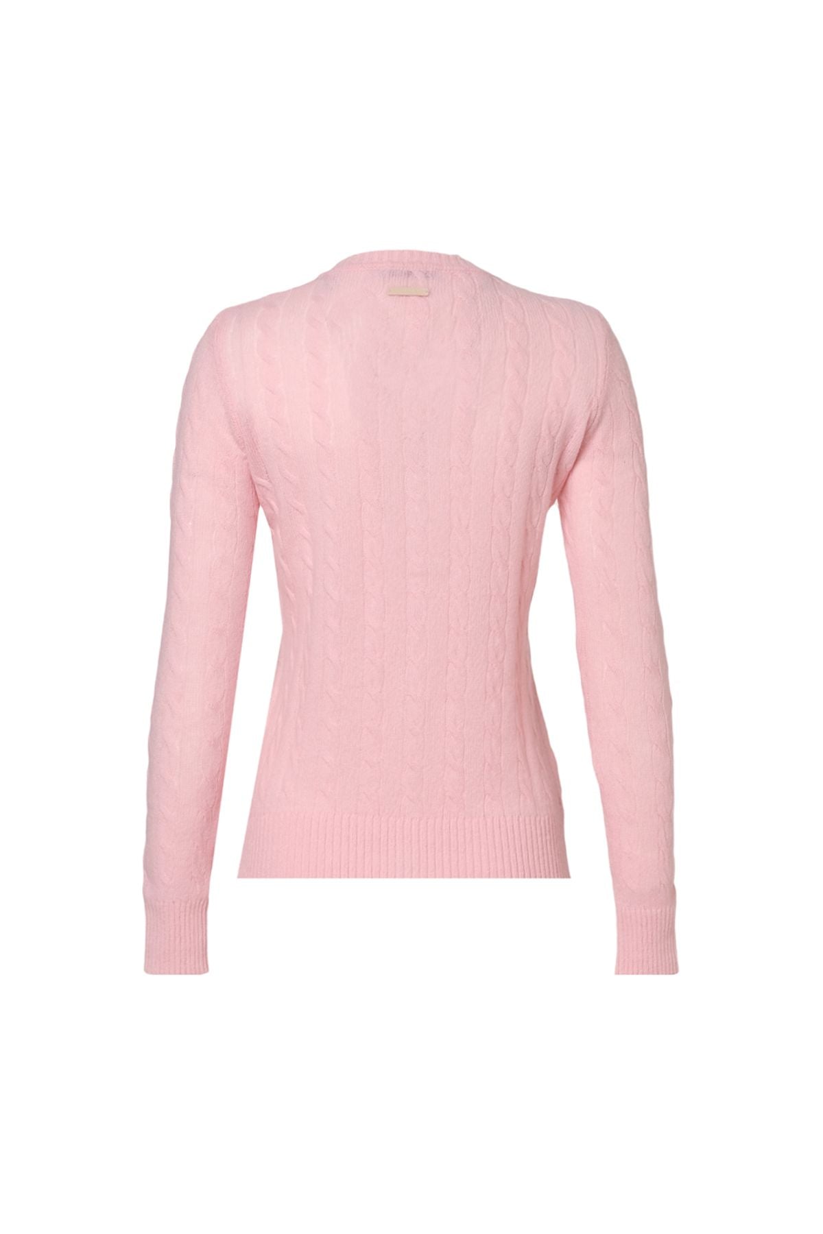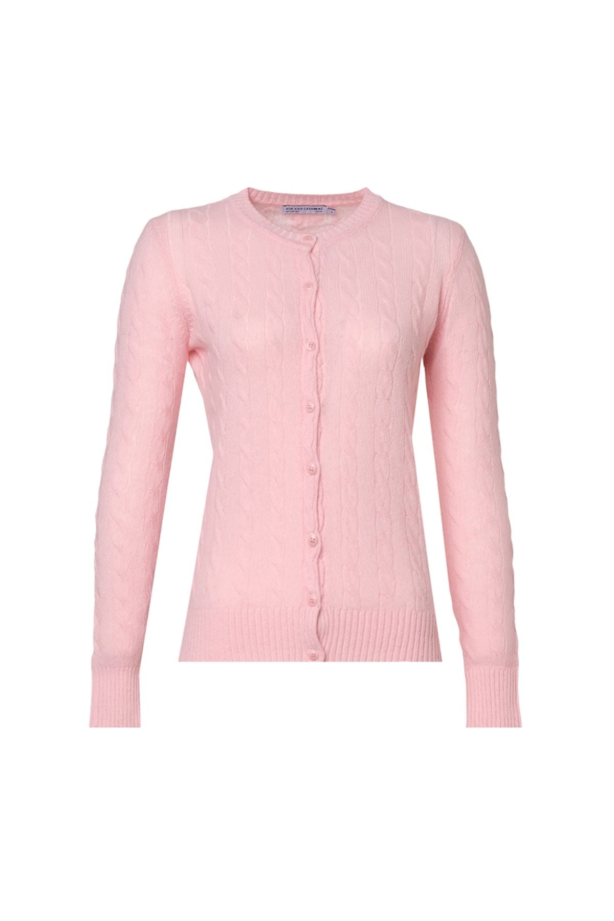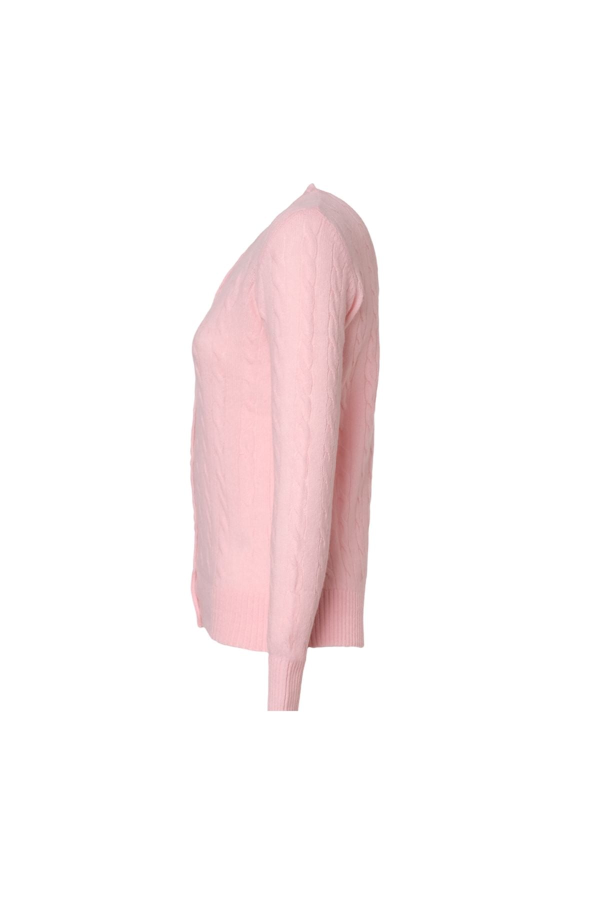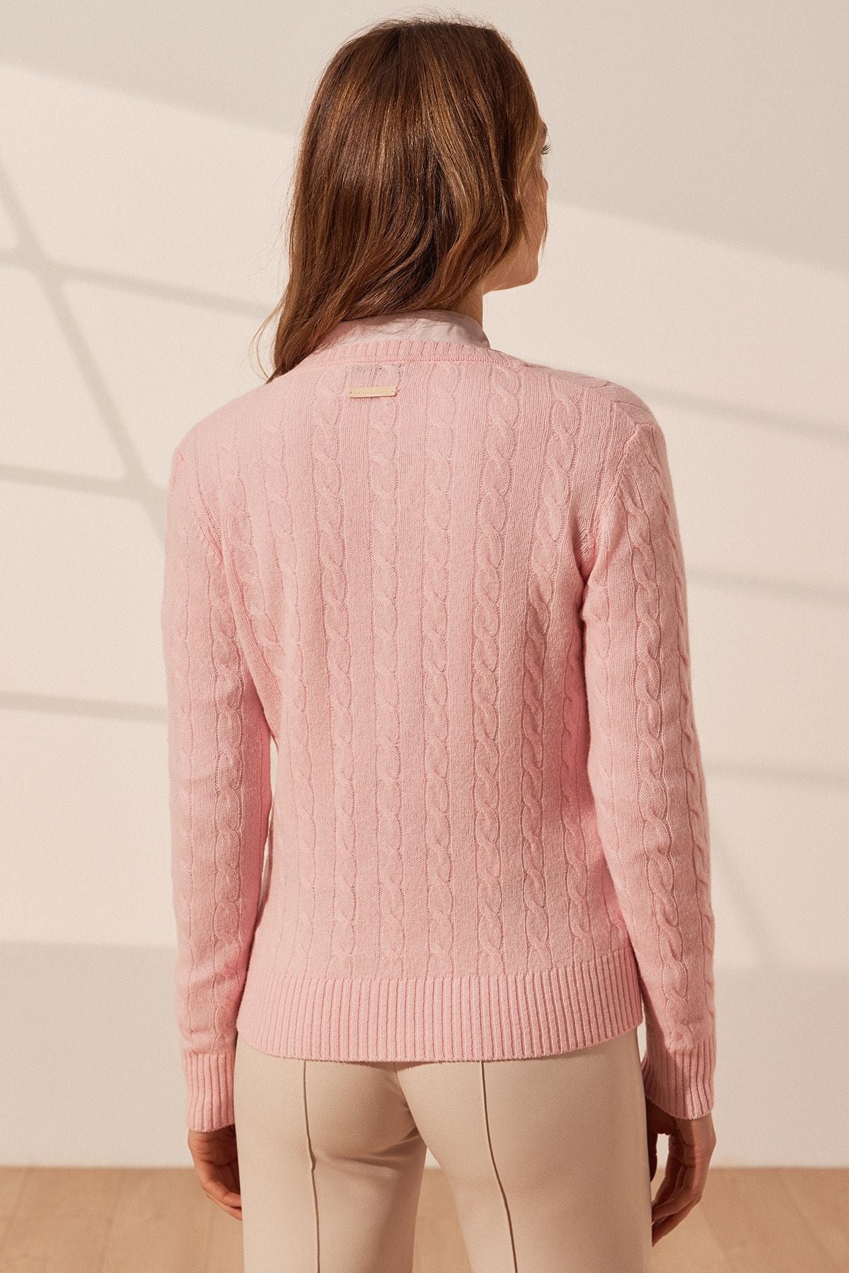 Pembe Amelia Avustralya Yünü Kaşmir Saç Örgülü Yuvarlak Yaka Uzun Kollu Kadın Hırka