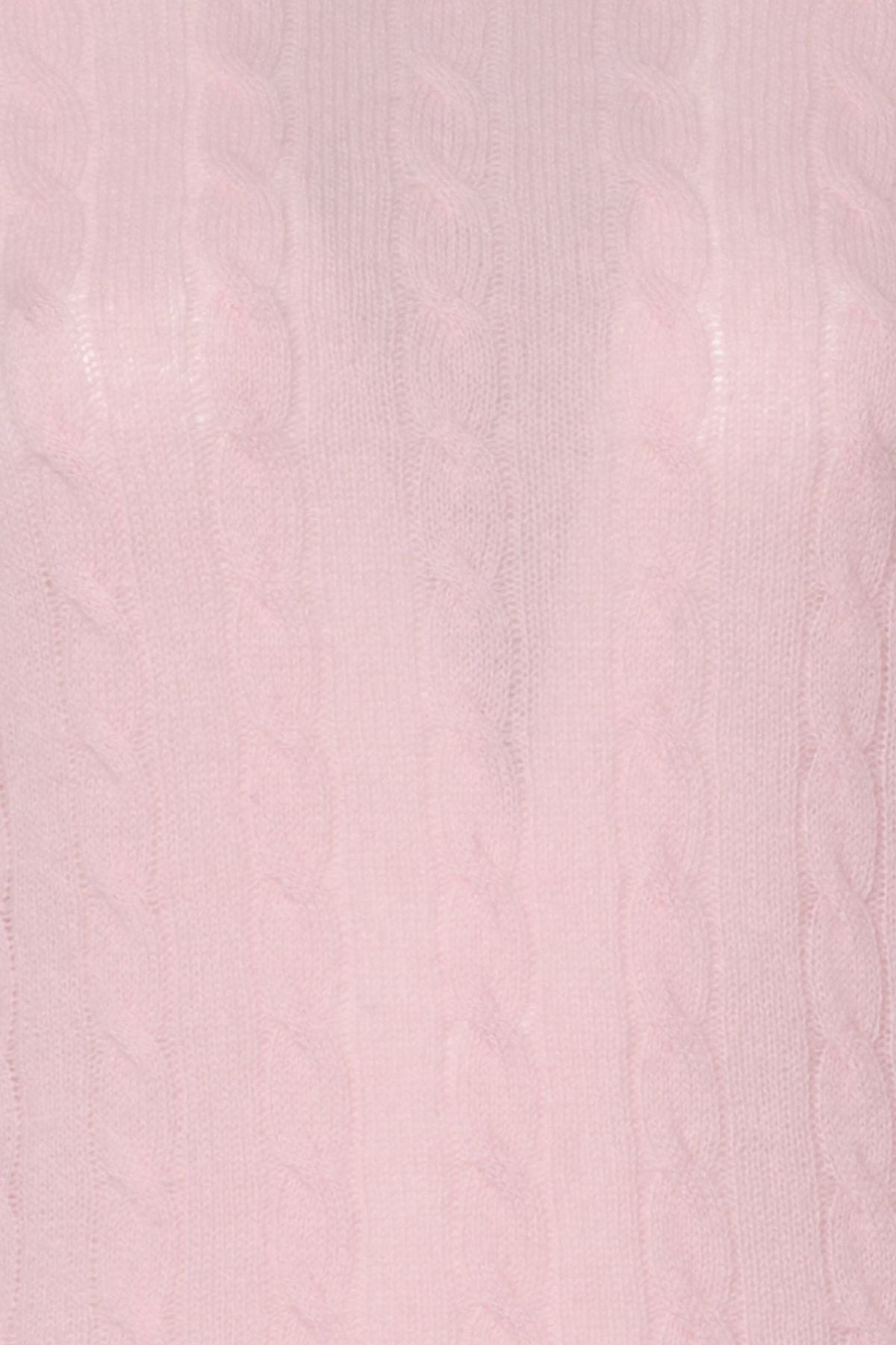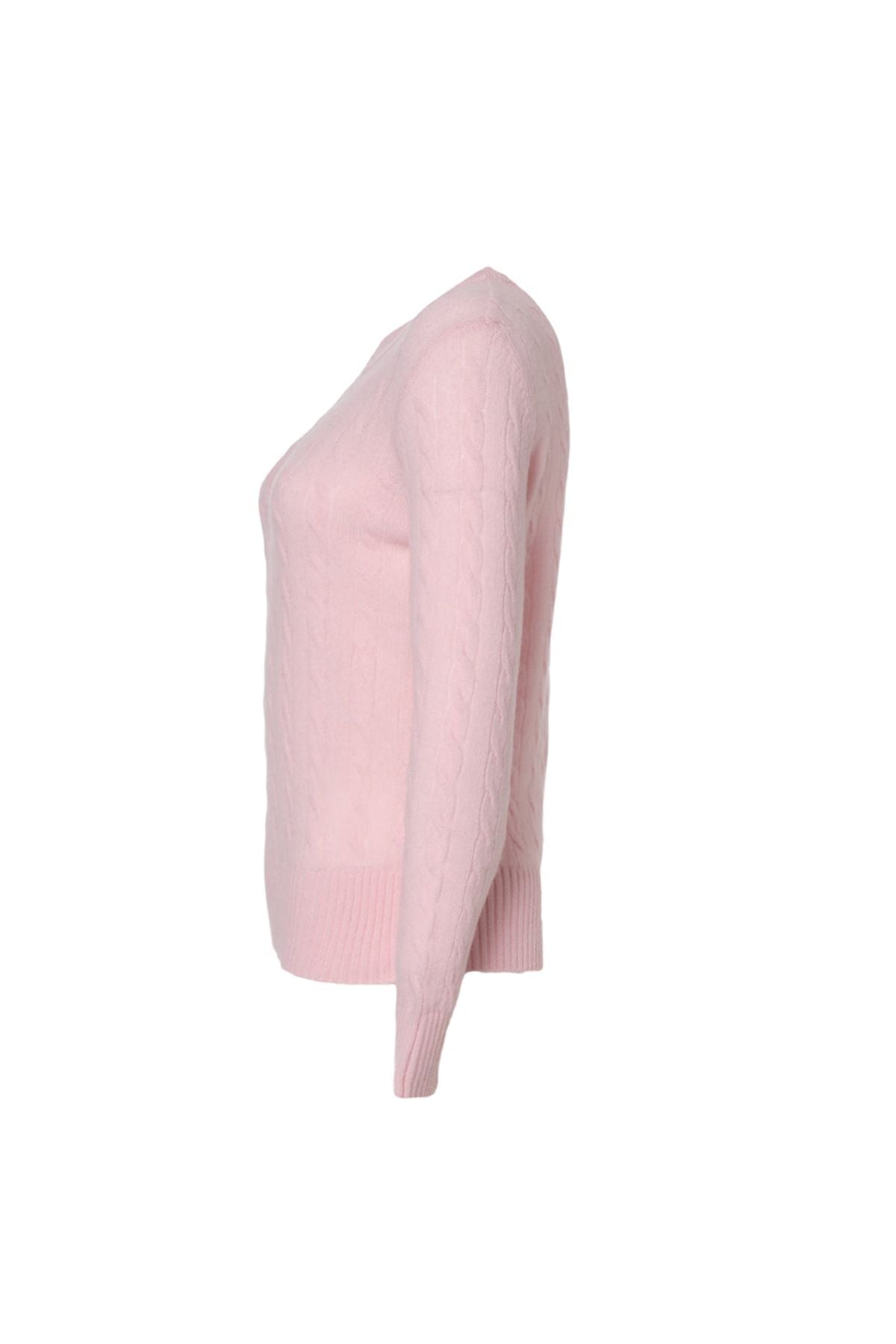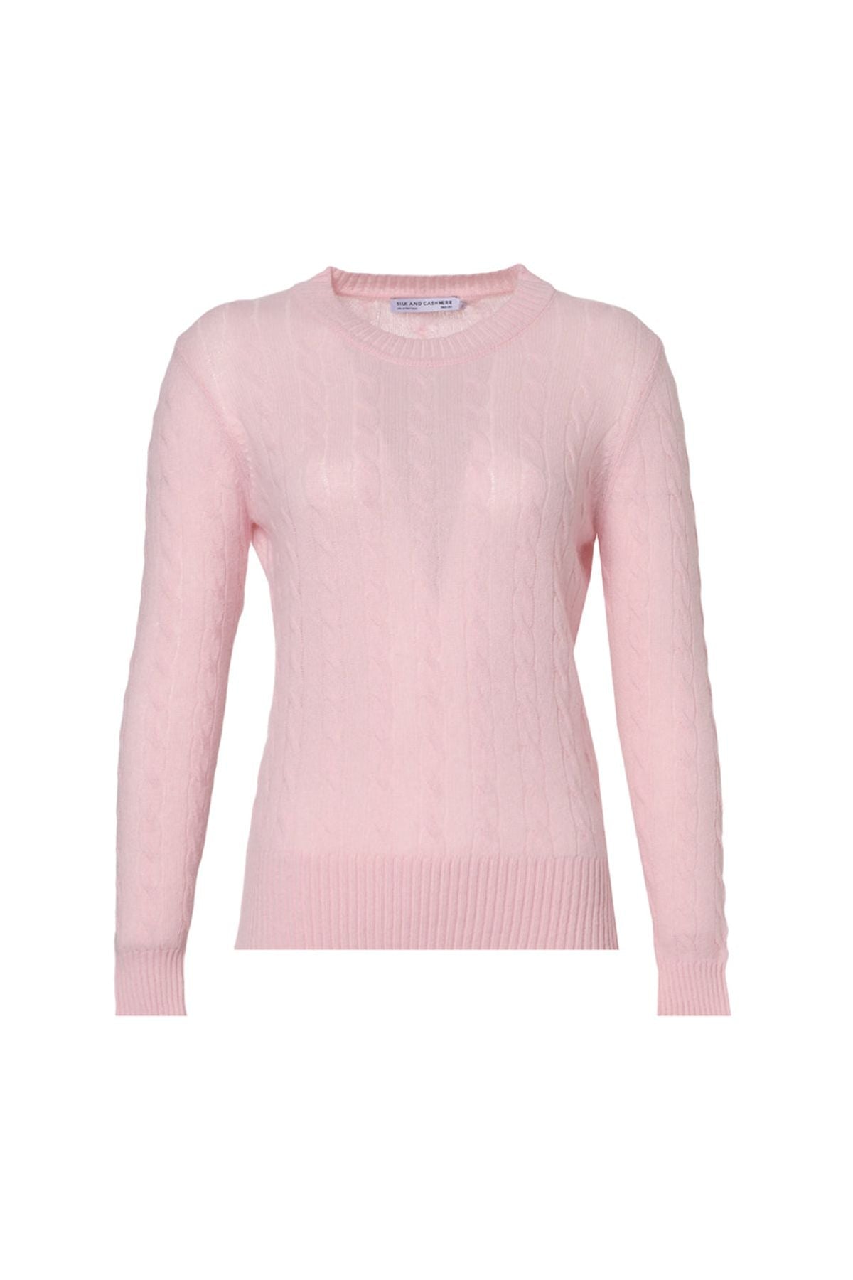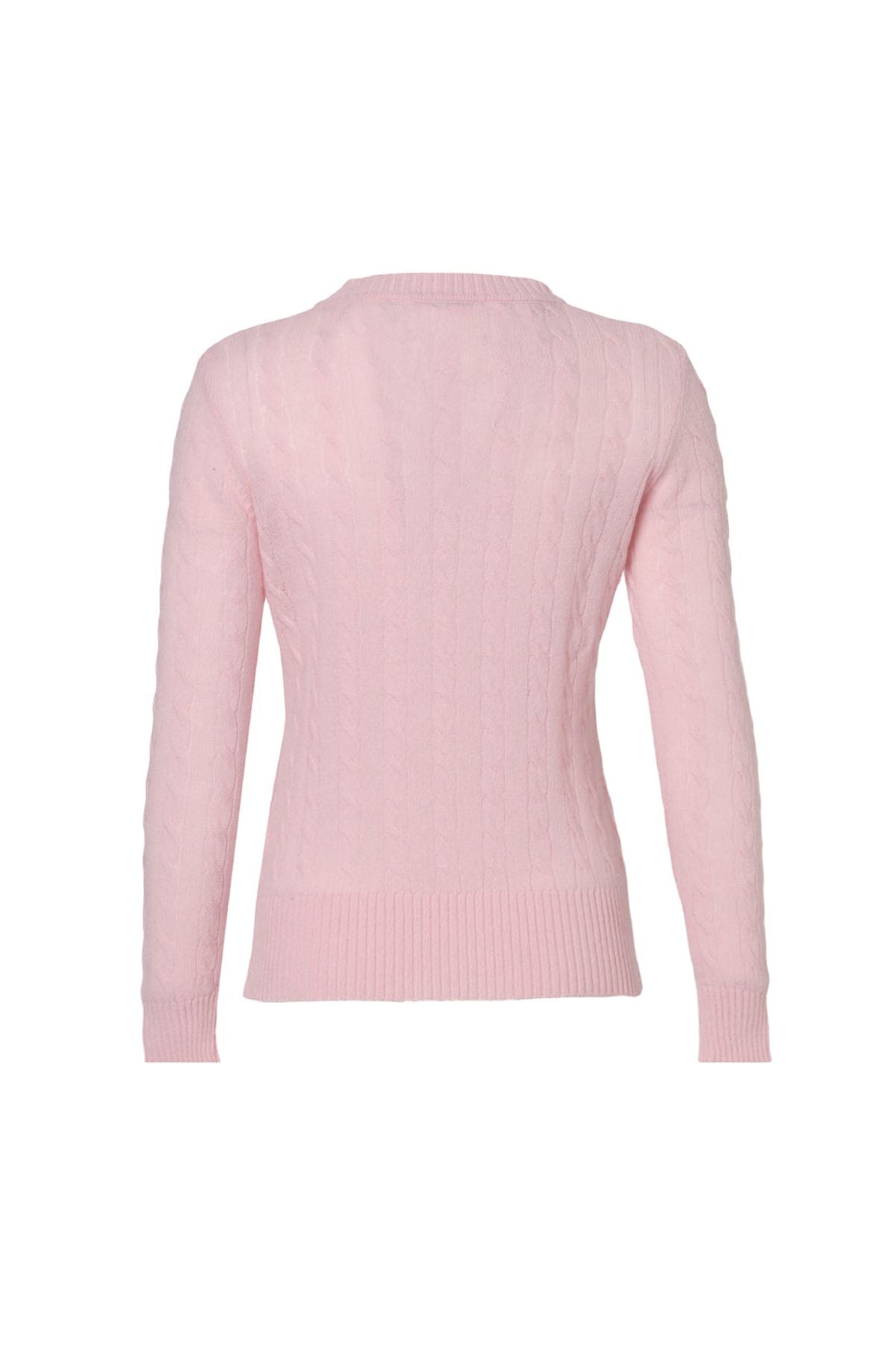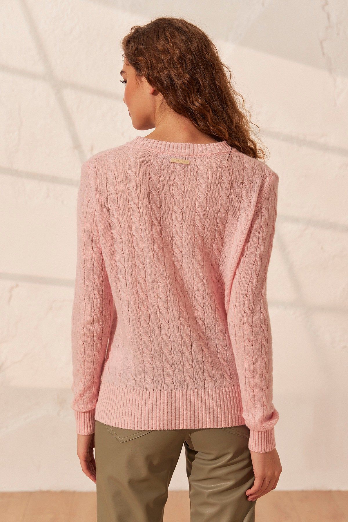 Pembe Amelia Avustralya Yünü Kaşmir Saç Örgülü Yuvarlak Yaka Uzun Kollu Kadın Kazak