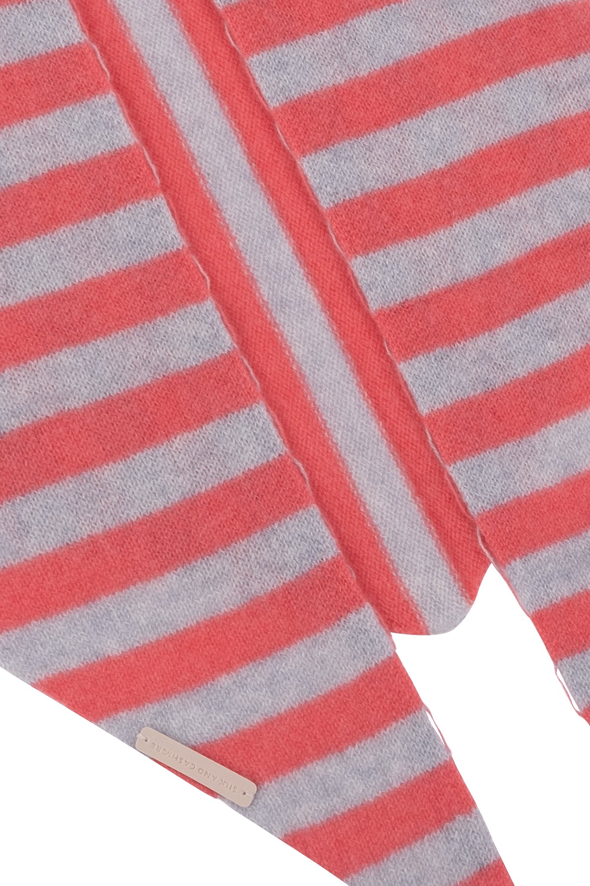 Rose çizgili bandana, enerjik renk blokları ve saf kaşmirin doğal sıcaklığıyla dinamik bir görünüm sunar. Fonksiyonel üçgen formu sayesinde farklı bağlama şekilleriyle stilinize esneklik katar.