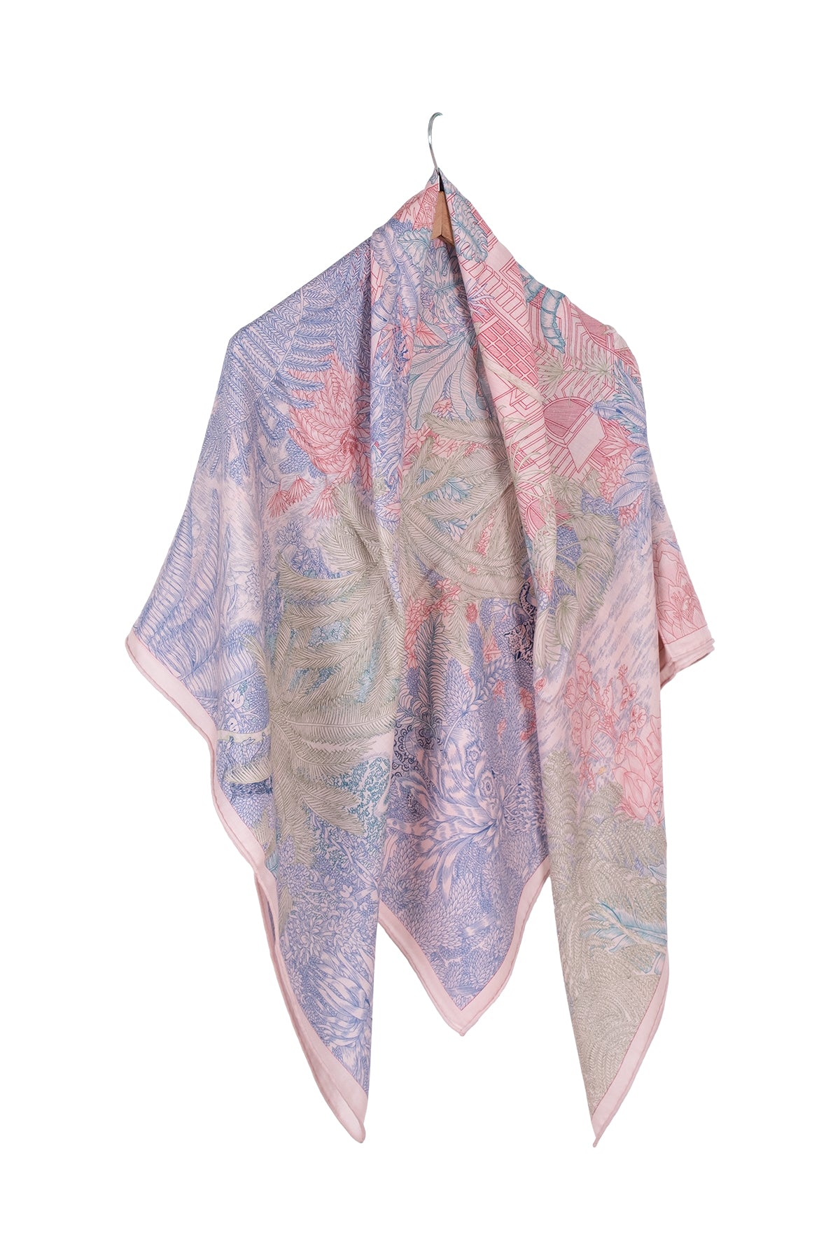 Pembe Linda Saf Kaşmir Baskılı Eşarp 140x 140 cm