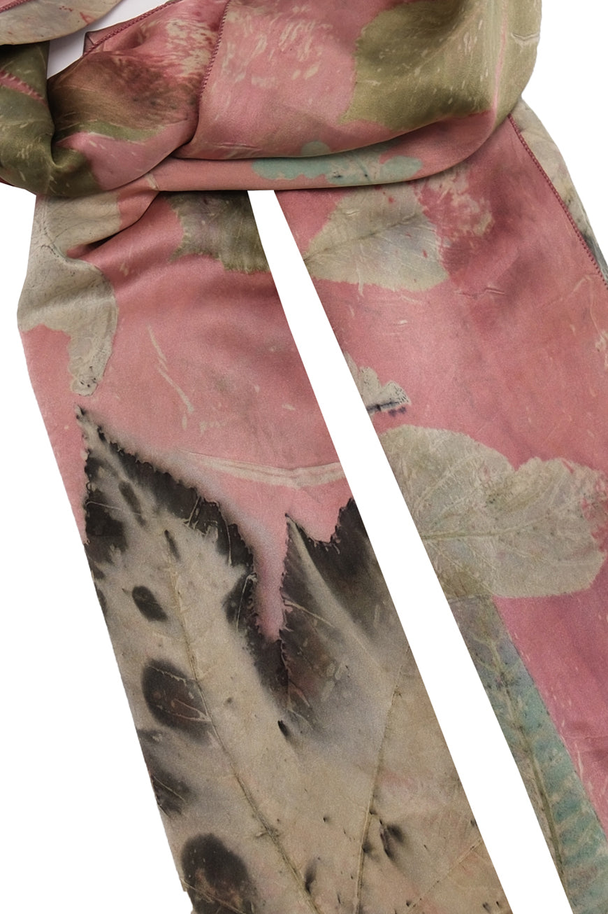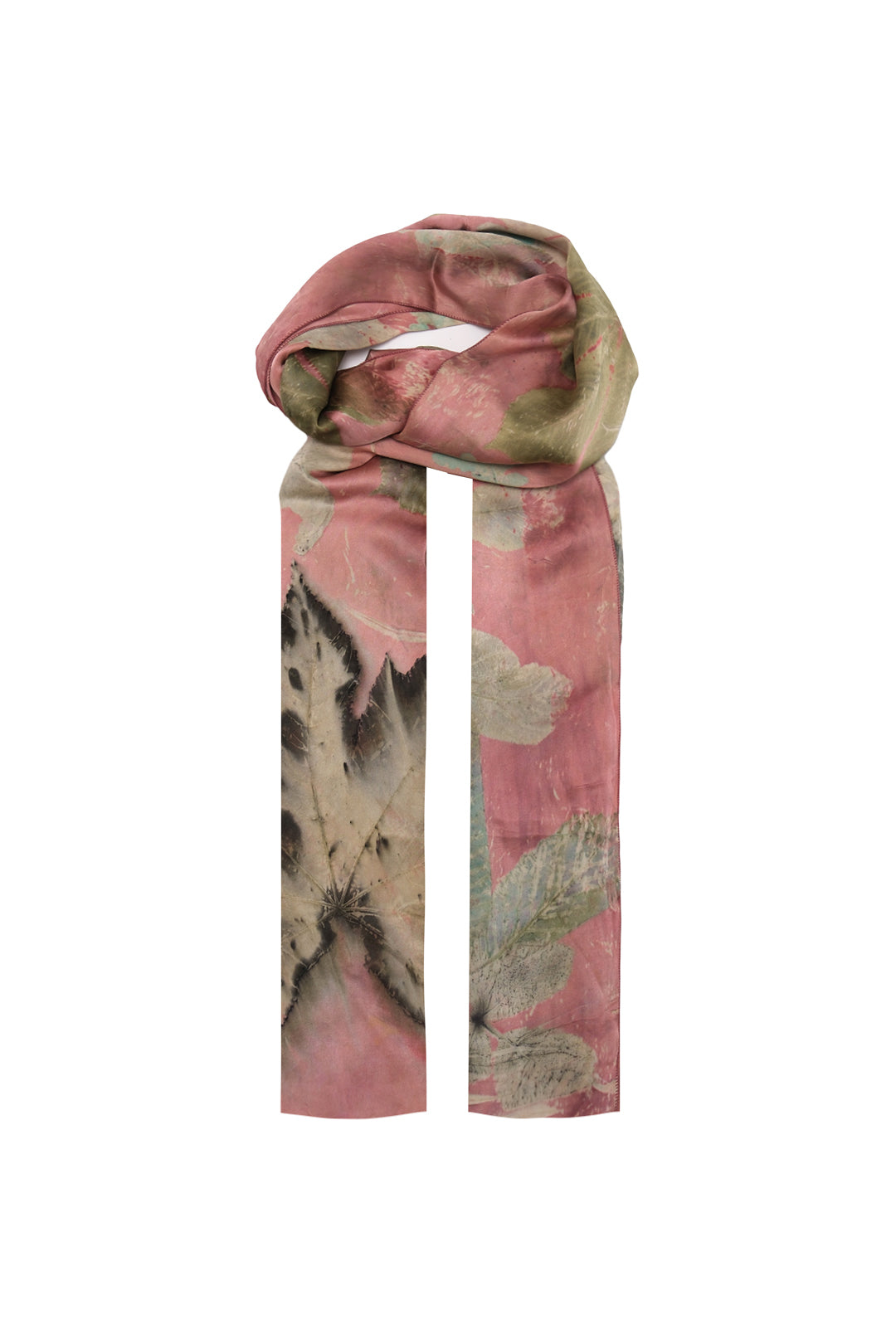 İpeğin eşsiz dokusunu ve doğanın sanatsal güzelliğini bir arada sunan bu şal, her mevsim için mükemmel bir aksesuardır. Pembe zemin üzerine uygulanan el baskısı yaprak desenleriyle, bu şal giysilerinize şıklık ve zarafet katacaktır. 90x190 cm boyutlarıyla, farklı stillerde kullanım için ideal bir genişliğe sahiptir.