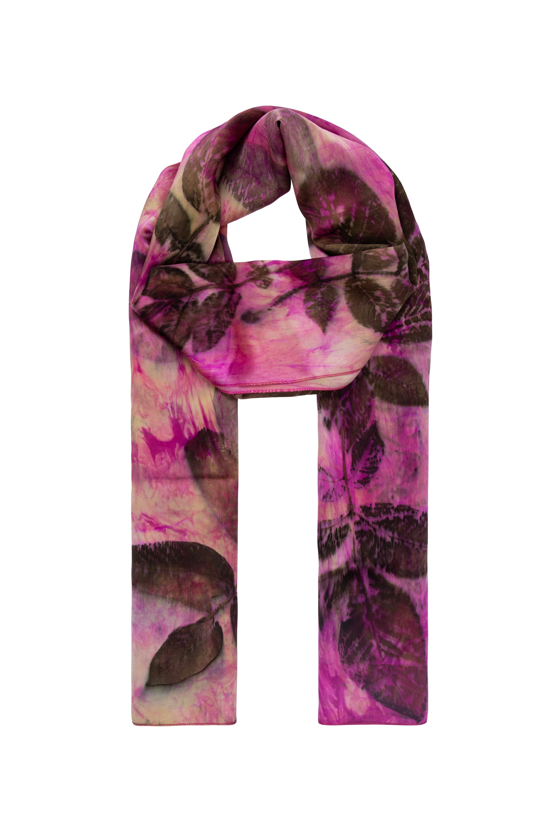 Pembe Saf İpek El Baskısı Ekolojik Şal 90 x 200 cm