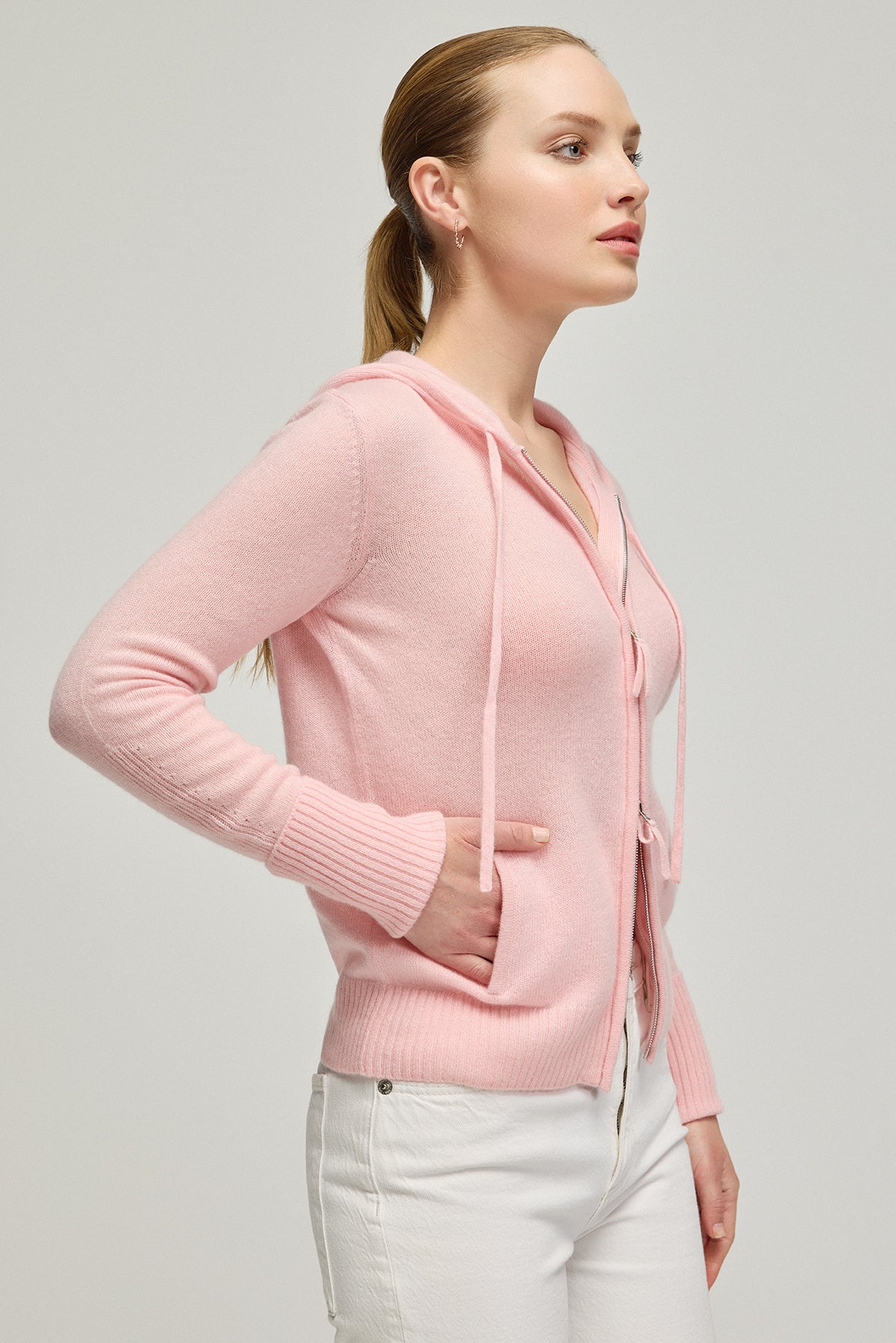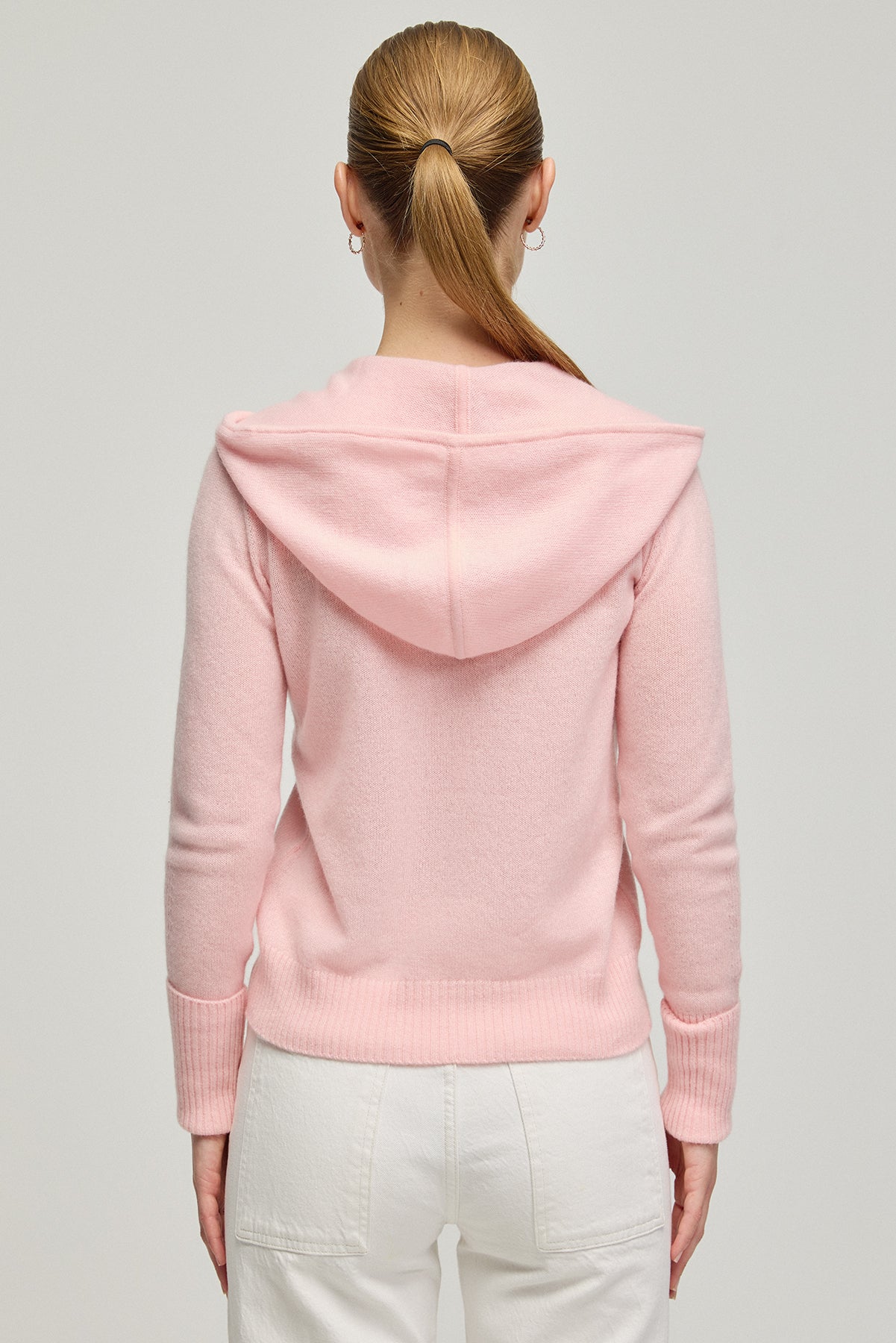 Pembe Orta Gri Melanj Saf Kaşmir Isabella Kadın Kapüşonlu Hırka