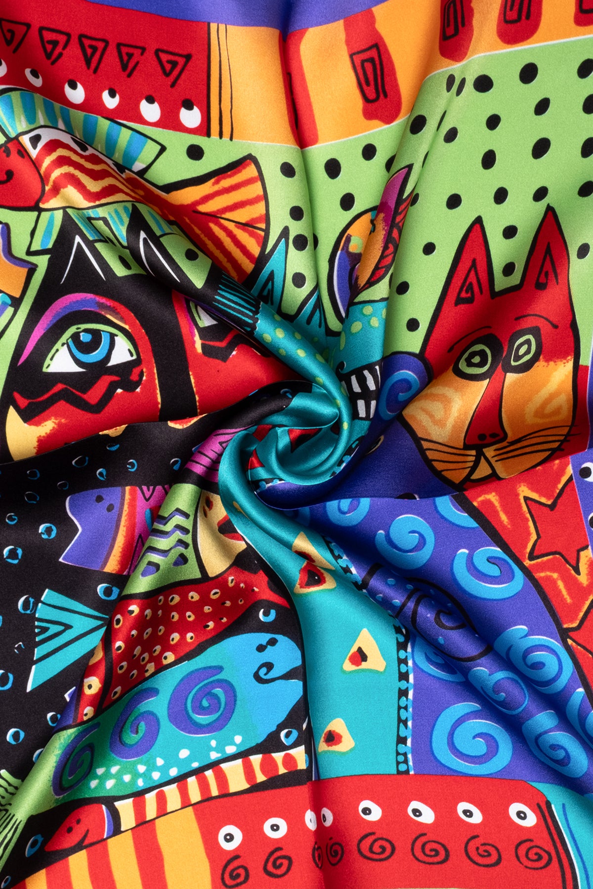 Renkli Laila Saf İpek Kare Eşarp 50x50 cm