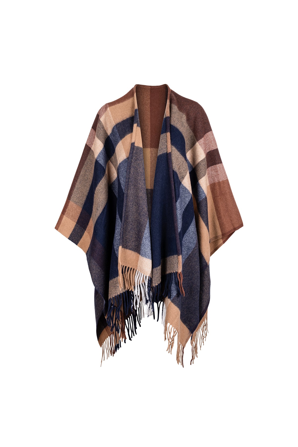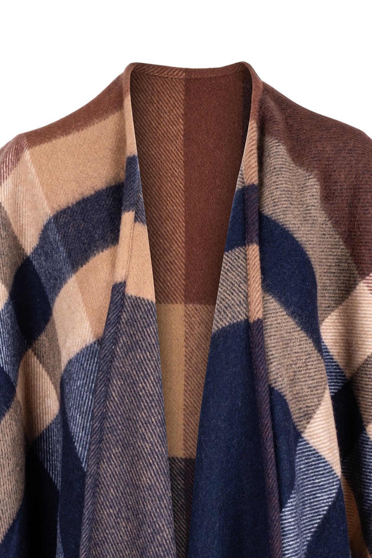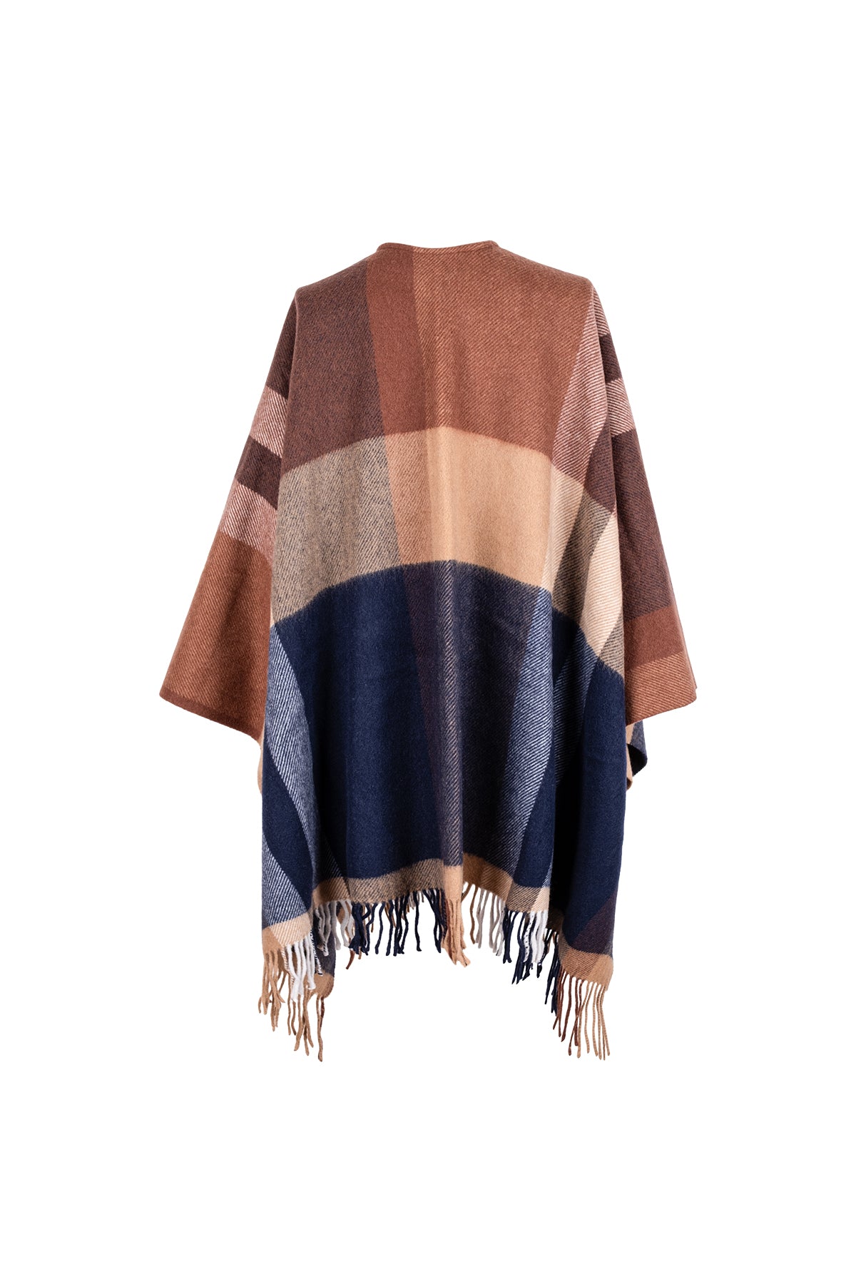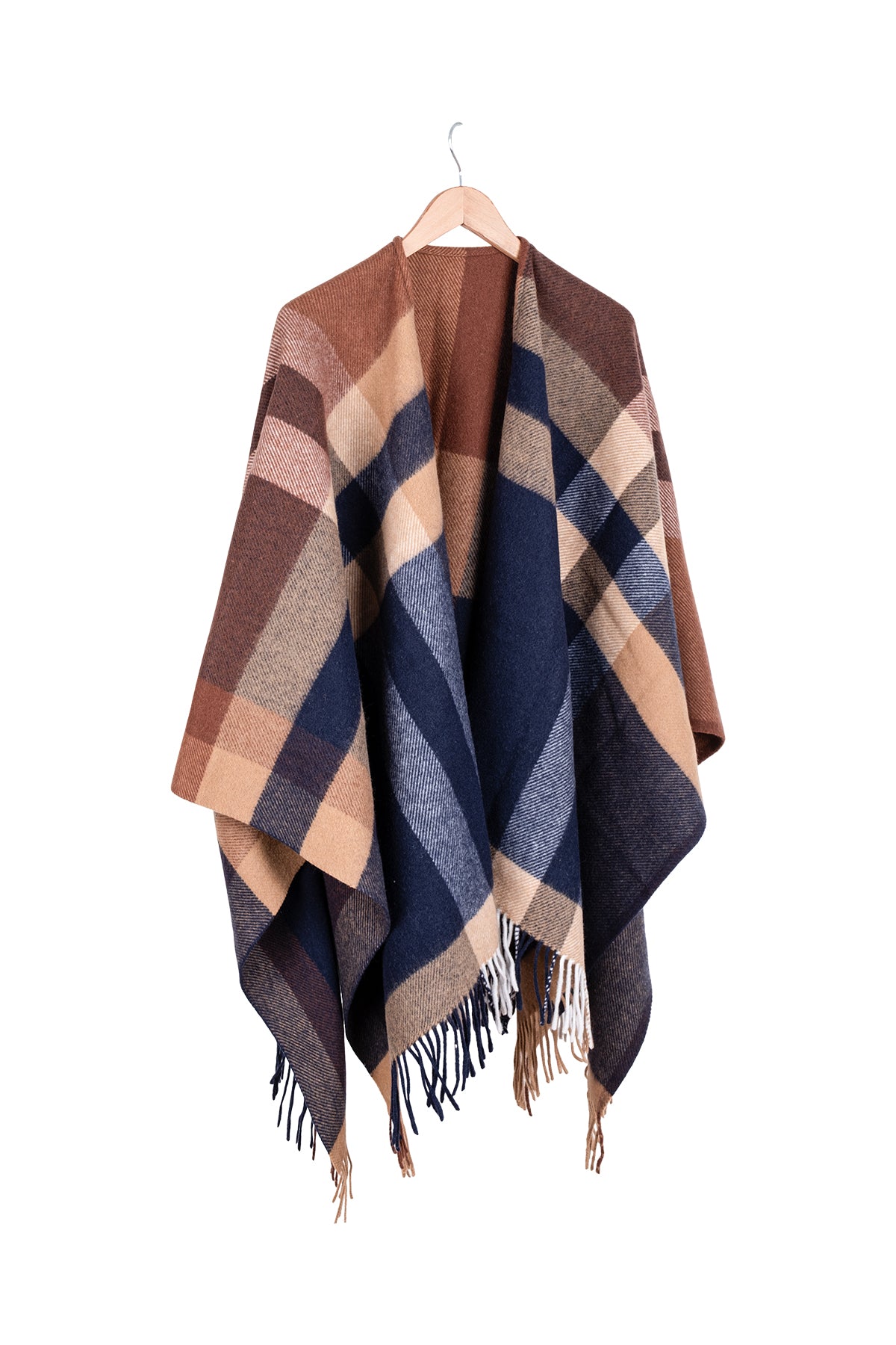 Renkli Laura Saf Yün Kareli Panço 130x150cm
