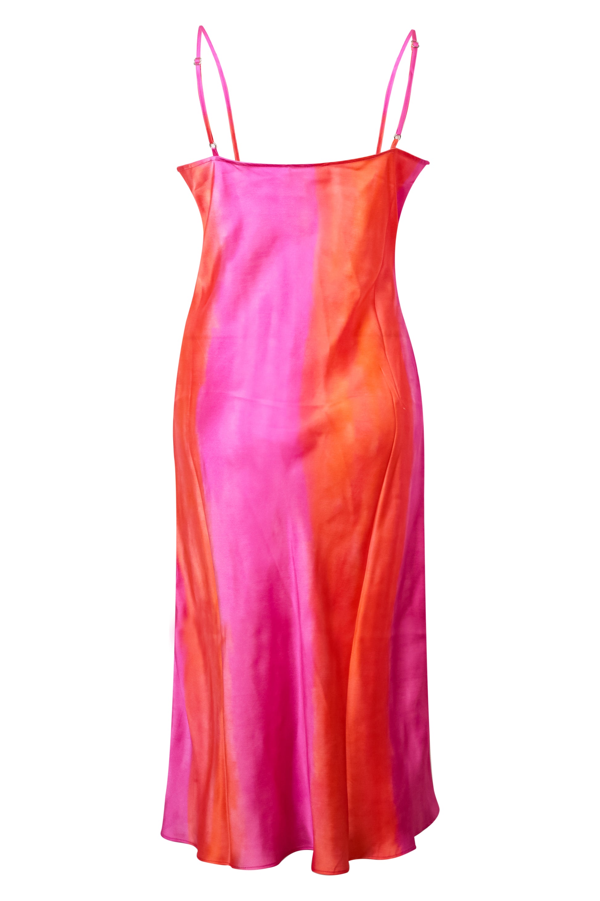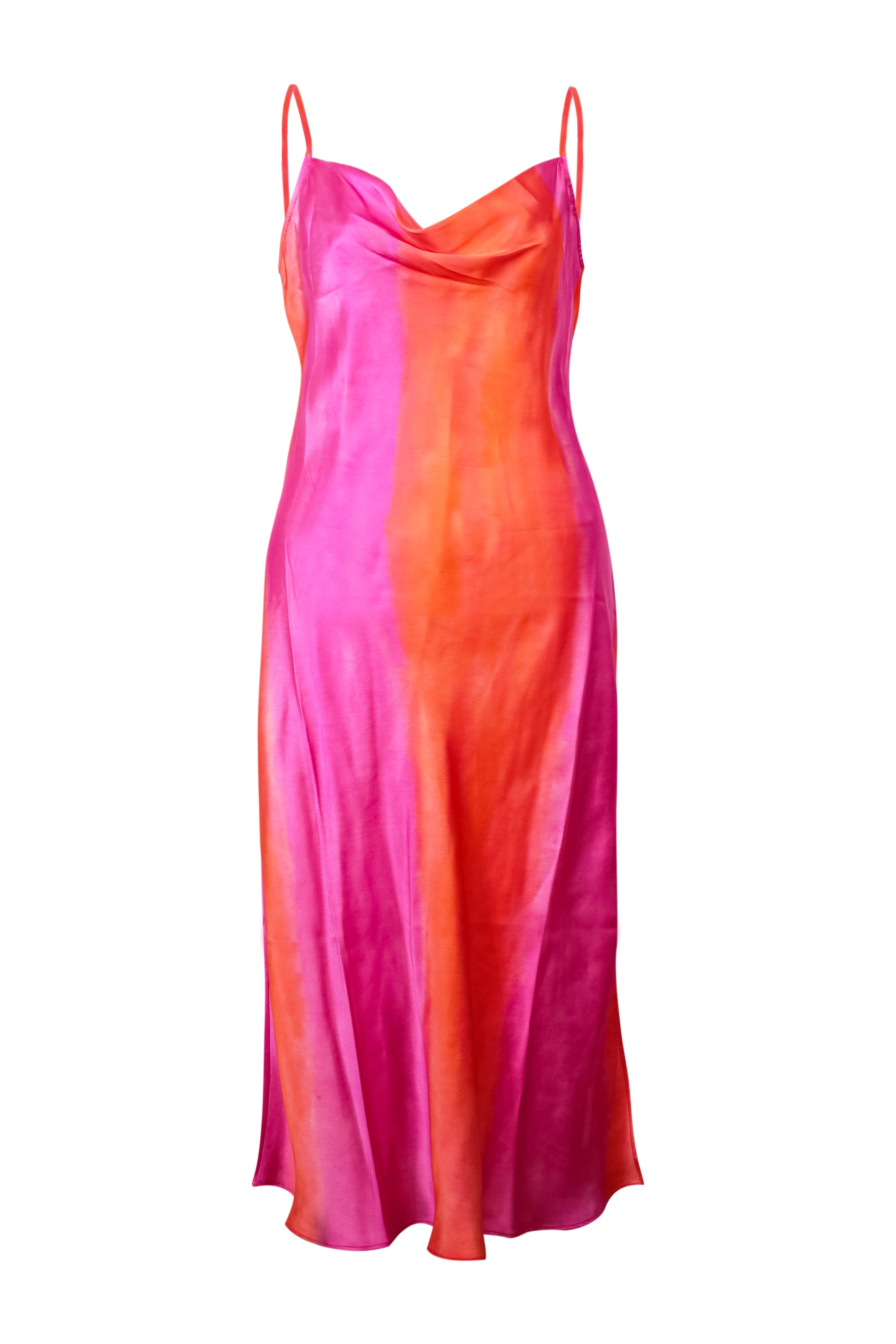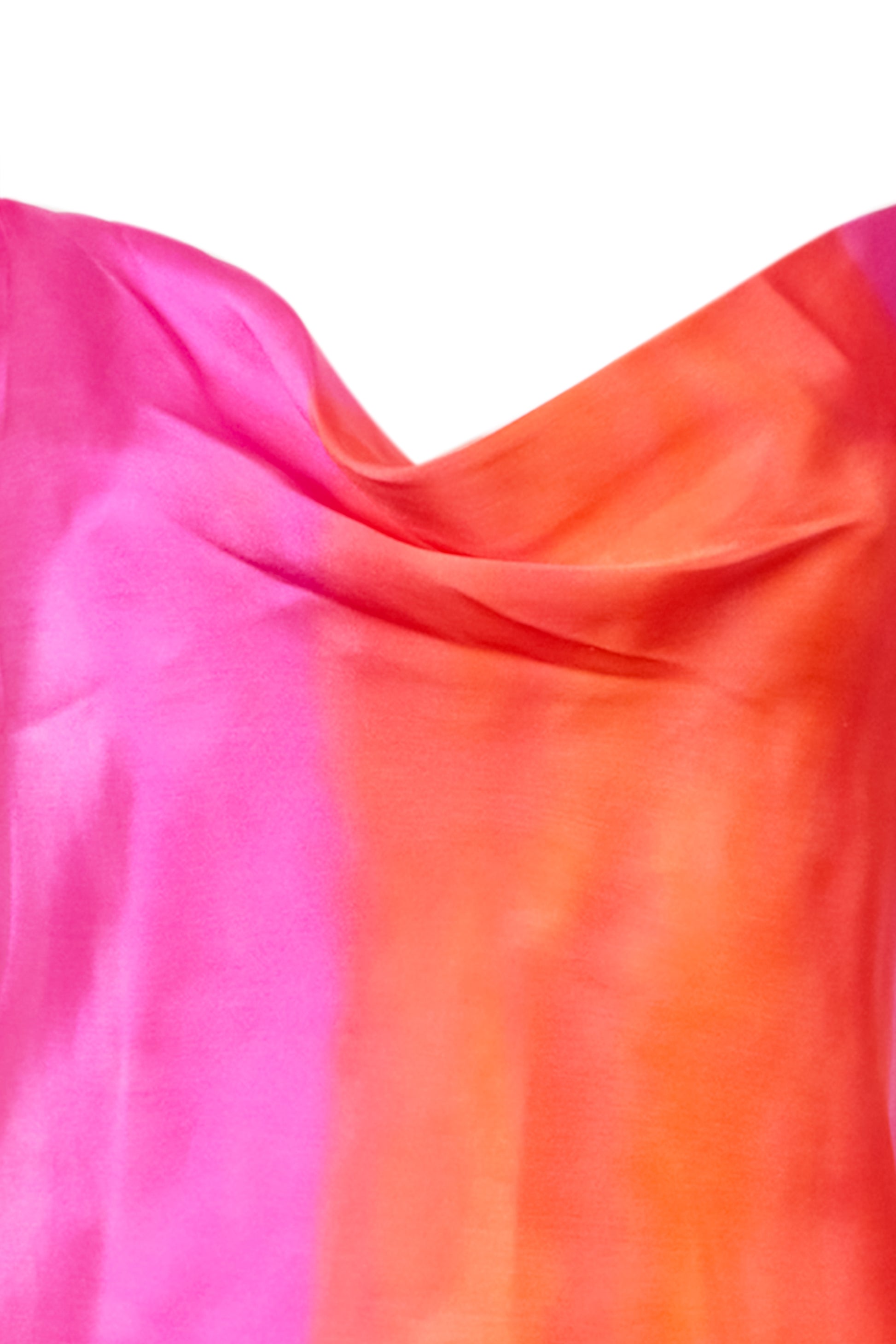 Işıl ışıl bir güneş batımını anımsatan, %100 ipekten üretilmiş bu elbise, yaz akşamlarınıza şıklık katmak için birebir. İpeğin verdiği doğal parlaklık ve yumuşak dokunuşu, size gün boyu süren konfor ve zarafet sunuyor. Renk geçişlerinin cesur ve estetik uyumuyla her adımınızda göz kamaştırın.