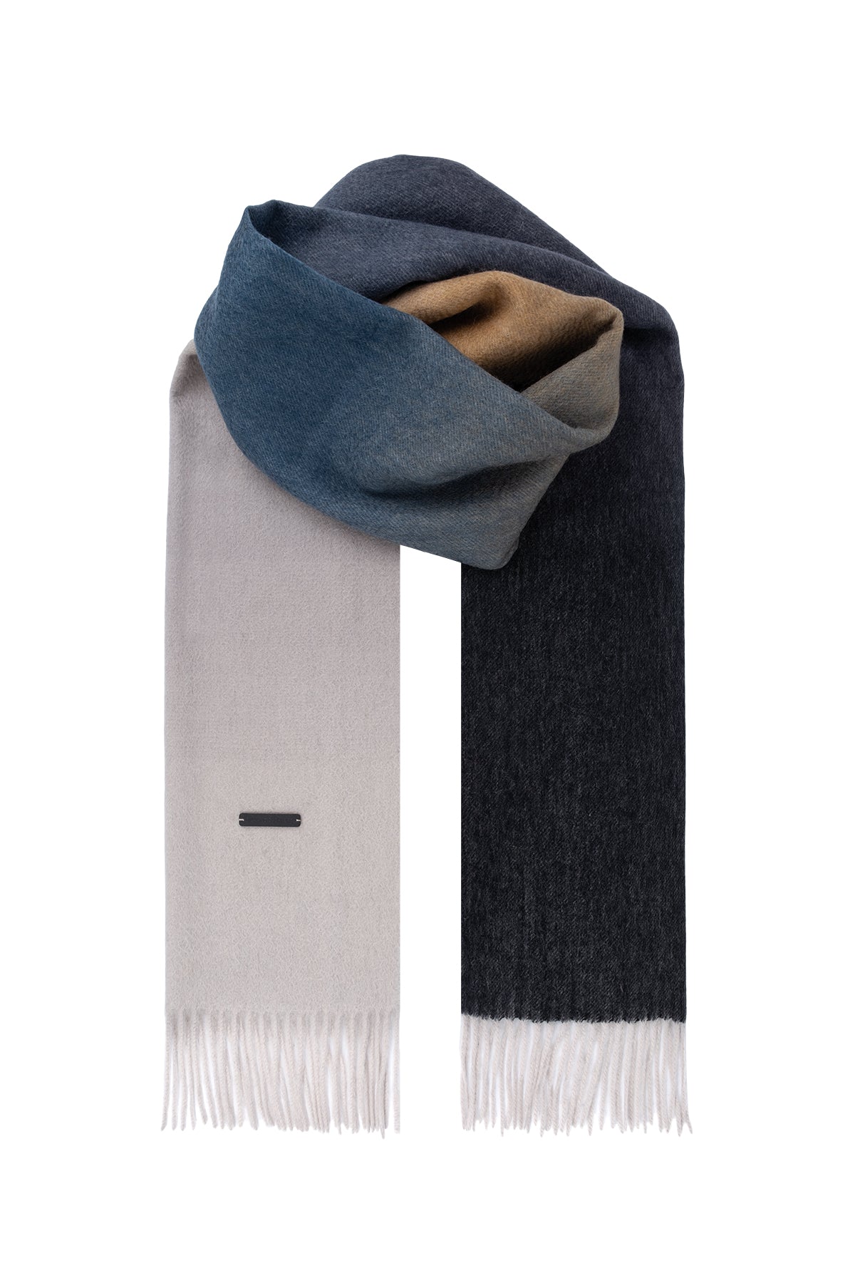 Renkli Patrick Saf Kaşmir Degrade Atkı, tonların sofistike uyumuyla zarafetinizi ön plana çıkarıyor. Gri, bej, mavi ve siyah renklerin degrade geçişi, %100 saf kaşmirin dokusuyla birleşerek hem tarz hem de sıcak bir kullanım sunuyor. Günlük stilinize ince bir dokunuş katarken, kaliteyi ve konforu bir arada sunuyor.
