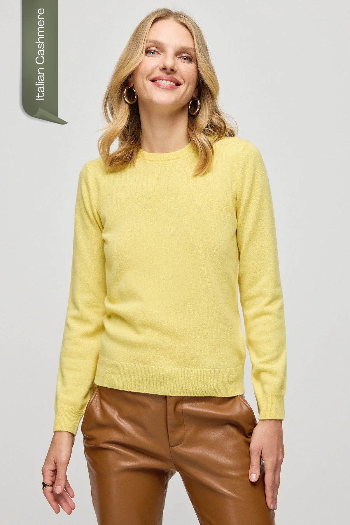Sarı İtalyan Saf Kaşmir Franca Bisiklet Yaka Kadın Kazak