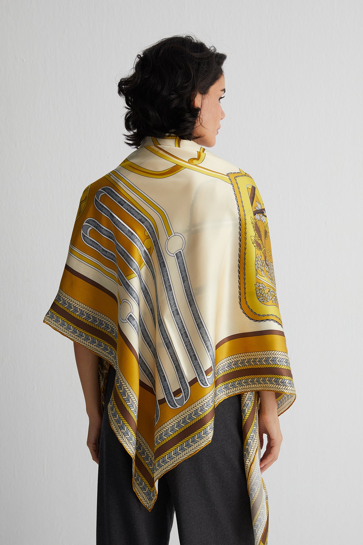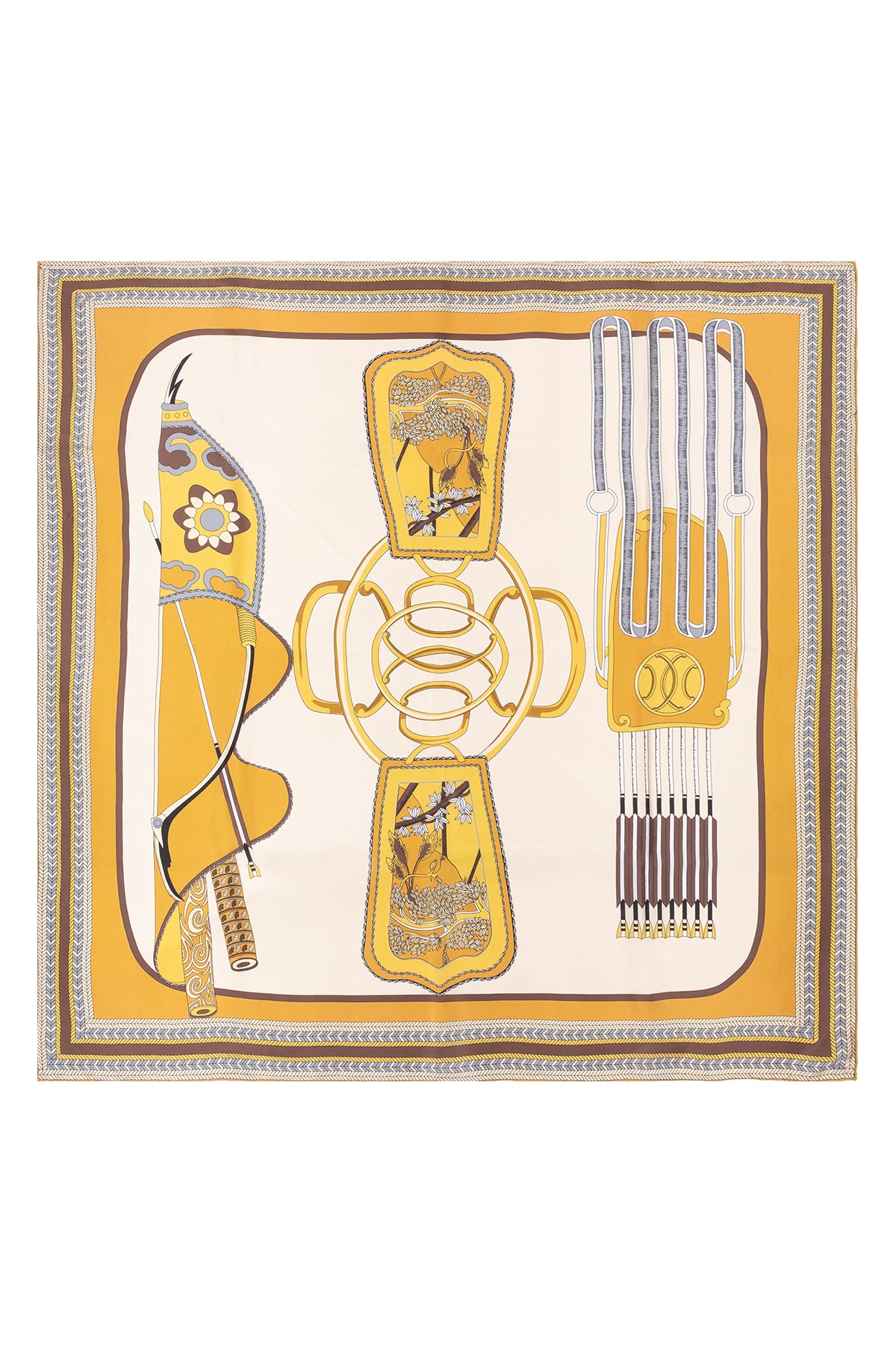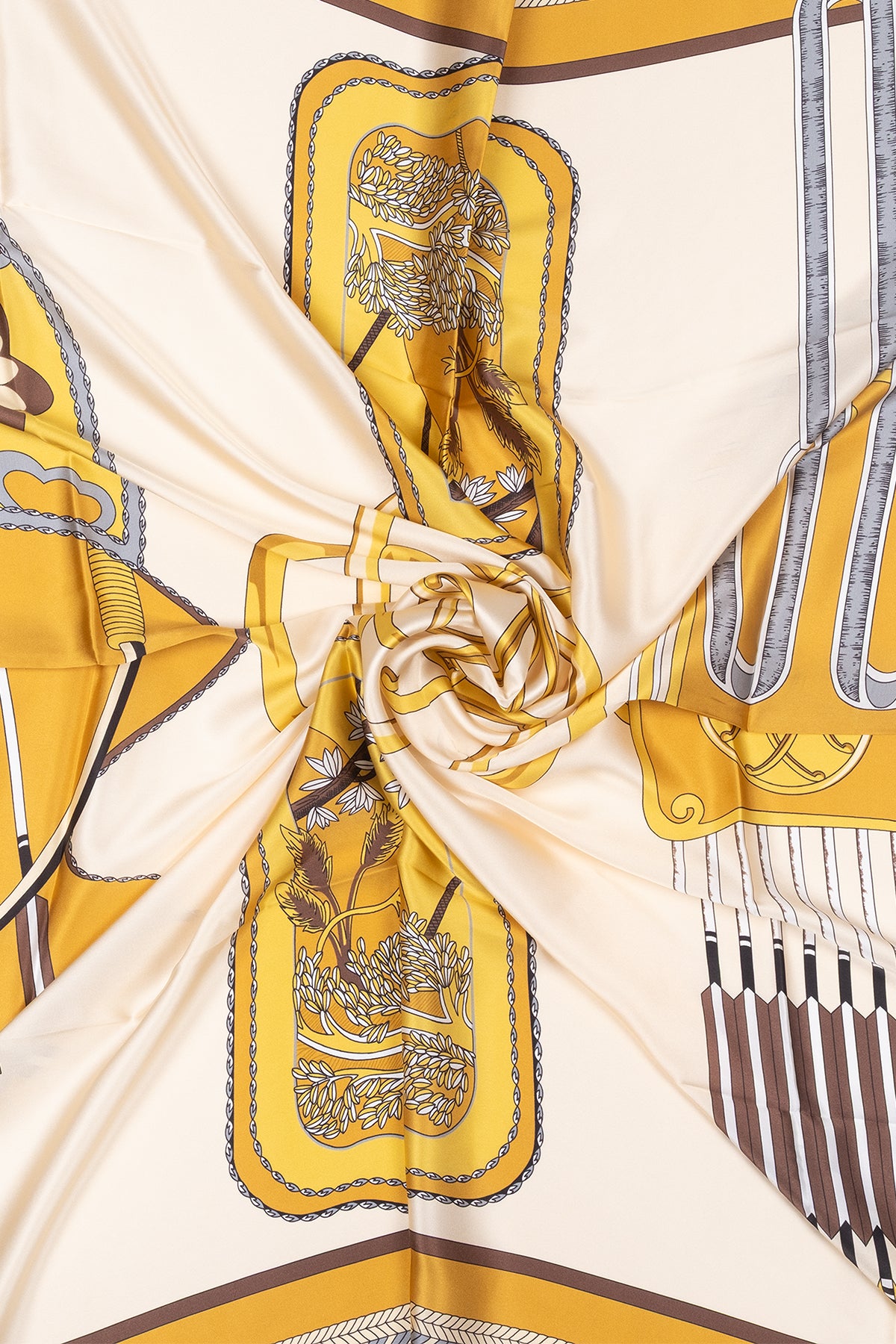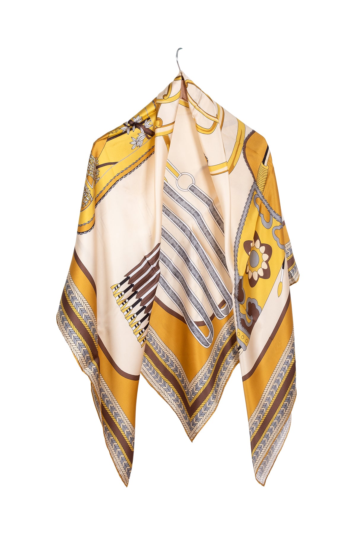 Sarı Lina Saf İpek Baskılı Şal 140x140cm