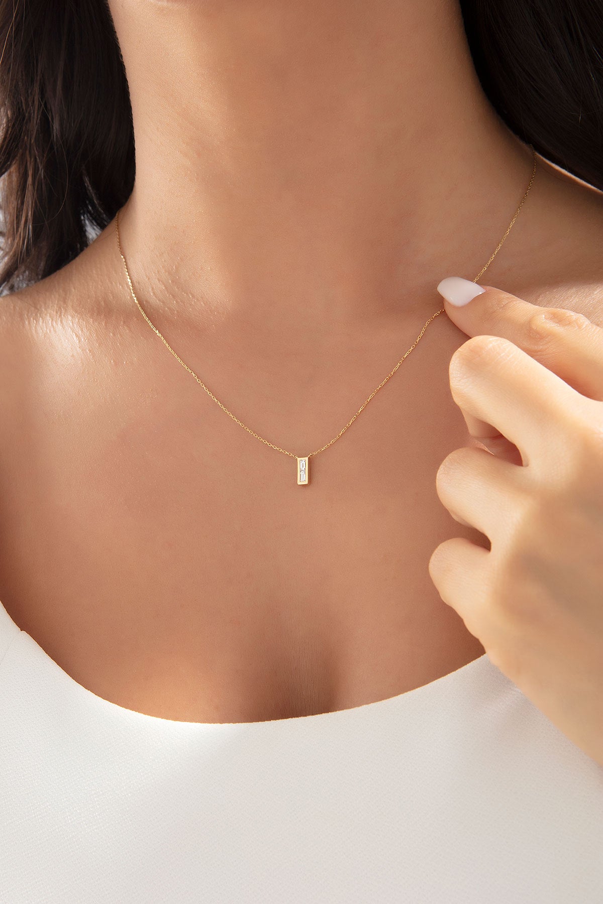 Modern geometrik hatlara sahip Lunea kolye, sade formu ve parlak pırlanta detaylarıyla zarif bir ışıltı sunar. 14 ayar sarı altınla üretilen bu özel parça, hem gündüz hem gece stiline kolayca uyum sağlar. Minimal ve sofistike çizgilerden hoşlananlar için şık bir tamamlayıcıdır.