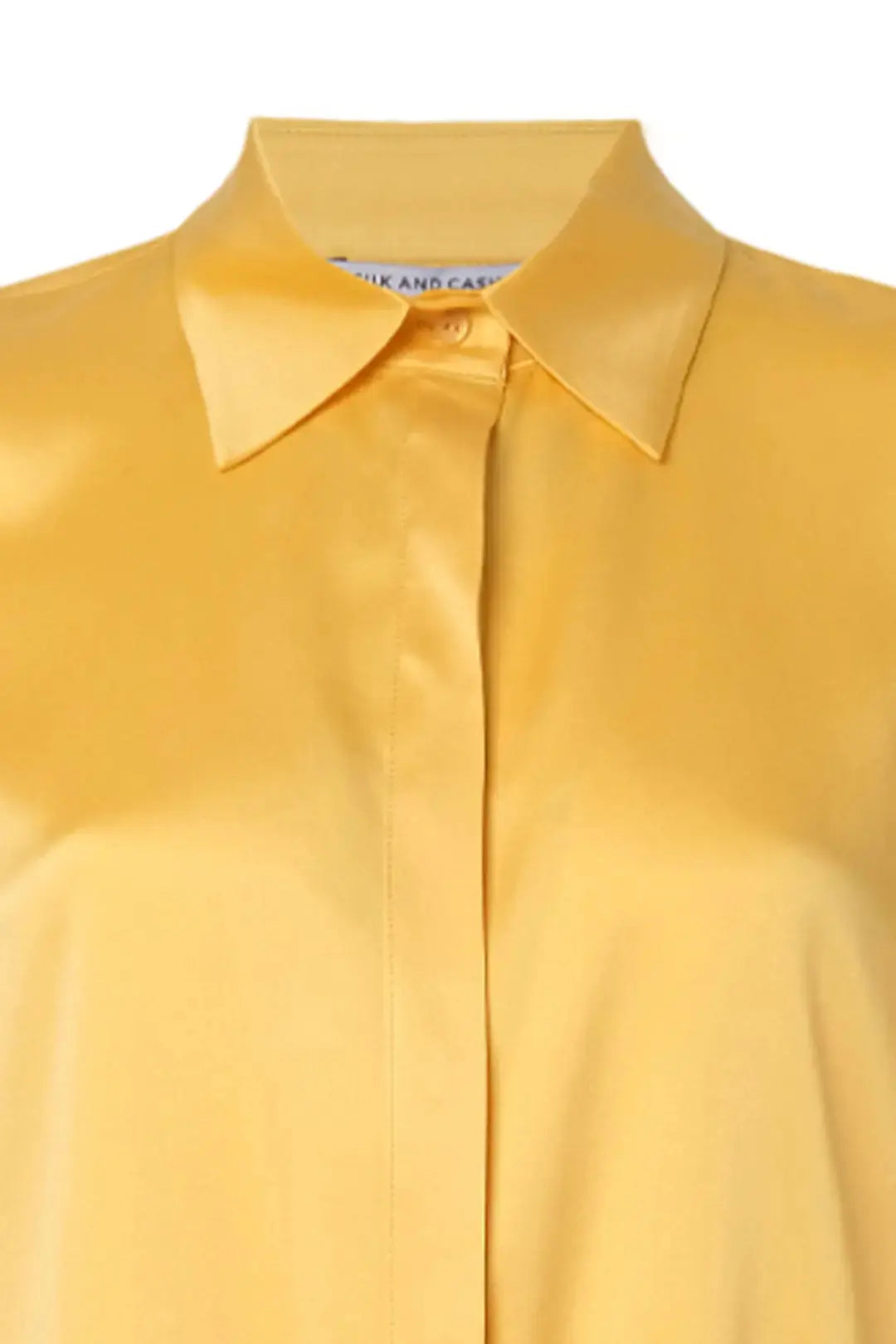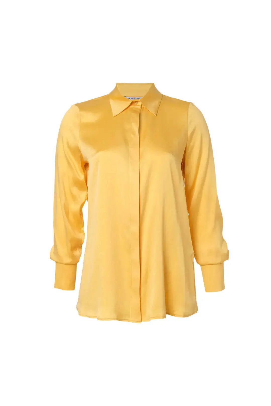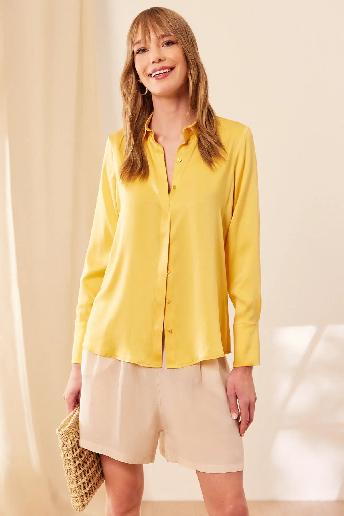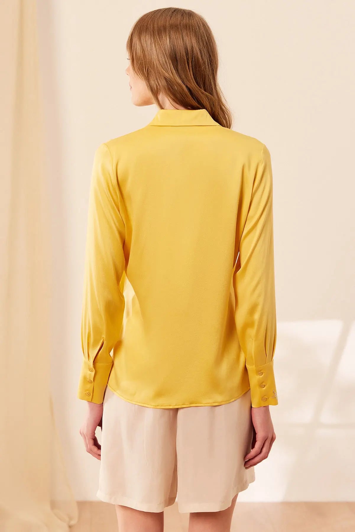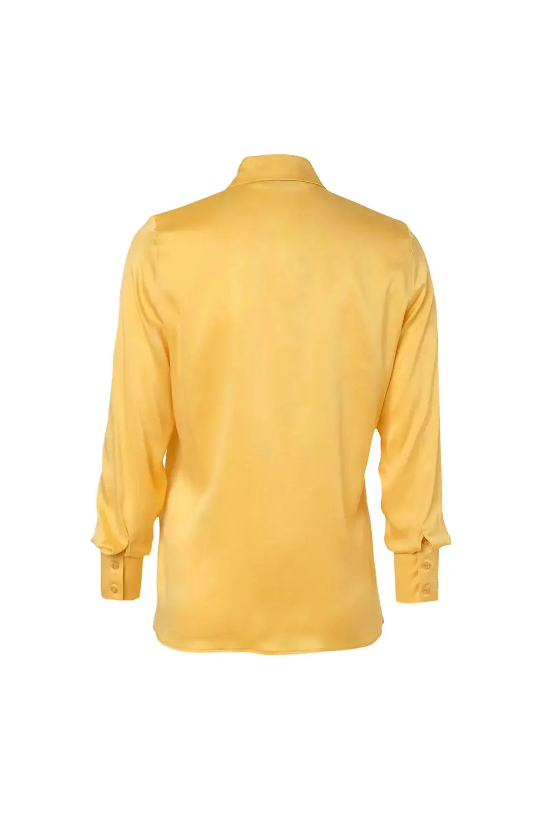 Sarı Saf İpek Audrey Uzun Kollu Gömlek