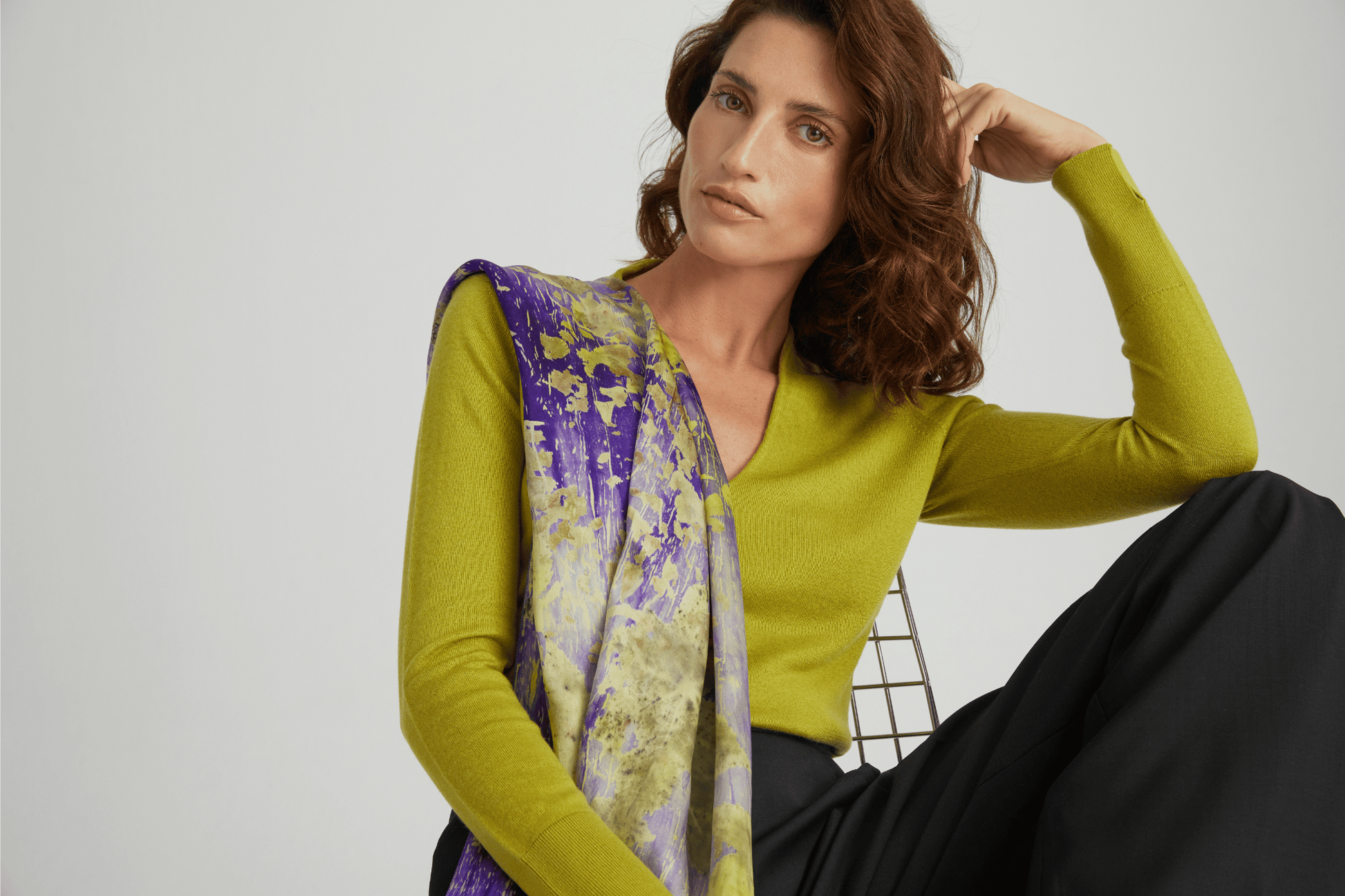 Bu benzersiz şal, sarının canlı tonlarıyla doğal güzellikleri yansıtan el baskısı ekolojik bir sanat eseri. %100 saf ipekten üretilmiş olup, hem doğaya duyarlılığı hem de yumuşak dokusuyla dikkat çeker. 90x190 cm boyutlarıyla geniş ve rahat bir kullanım sunar, her mevsimde tarzınızı tamamlar.
