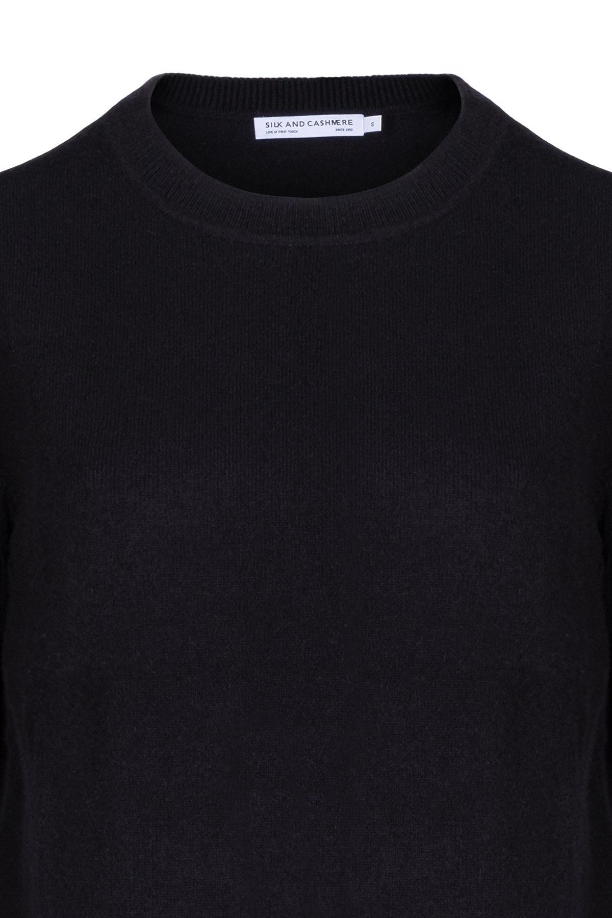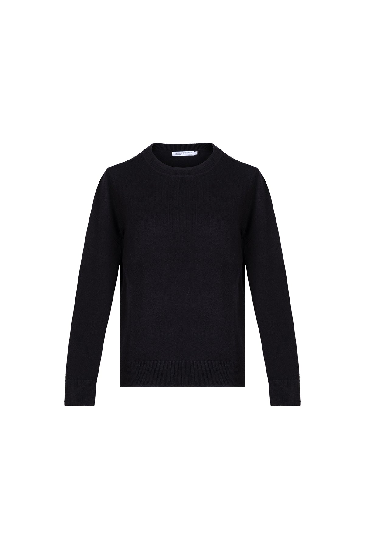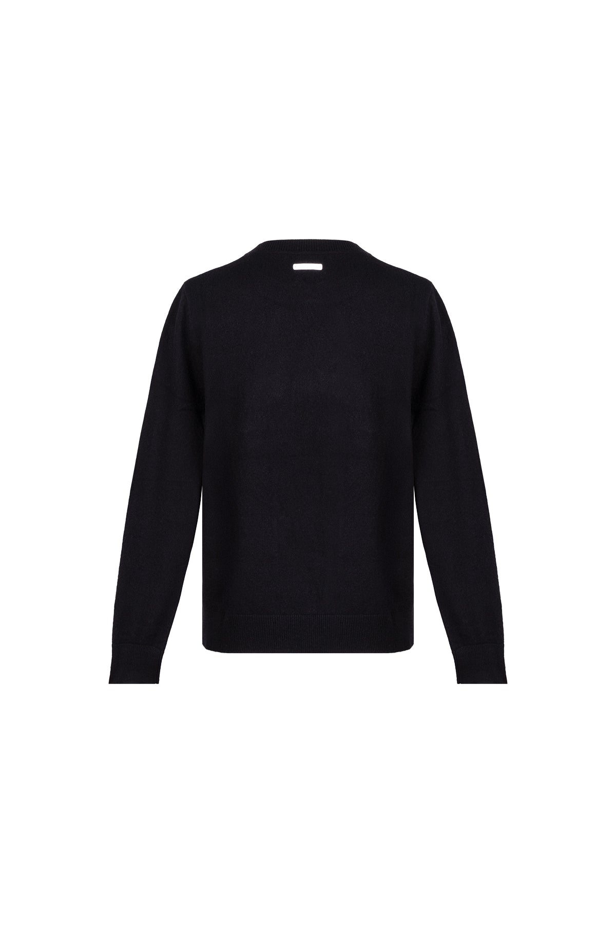 Siyah Agata Saf Kaşmir Yuvarlak Yaka Kazak