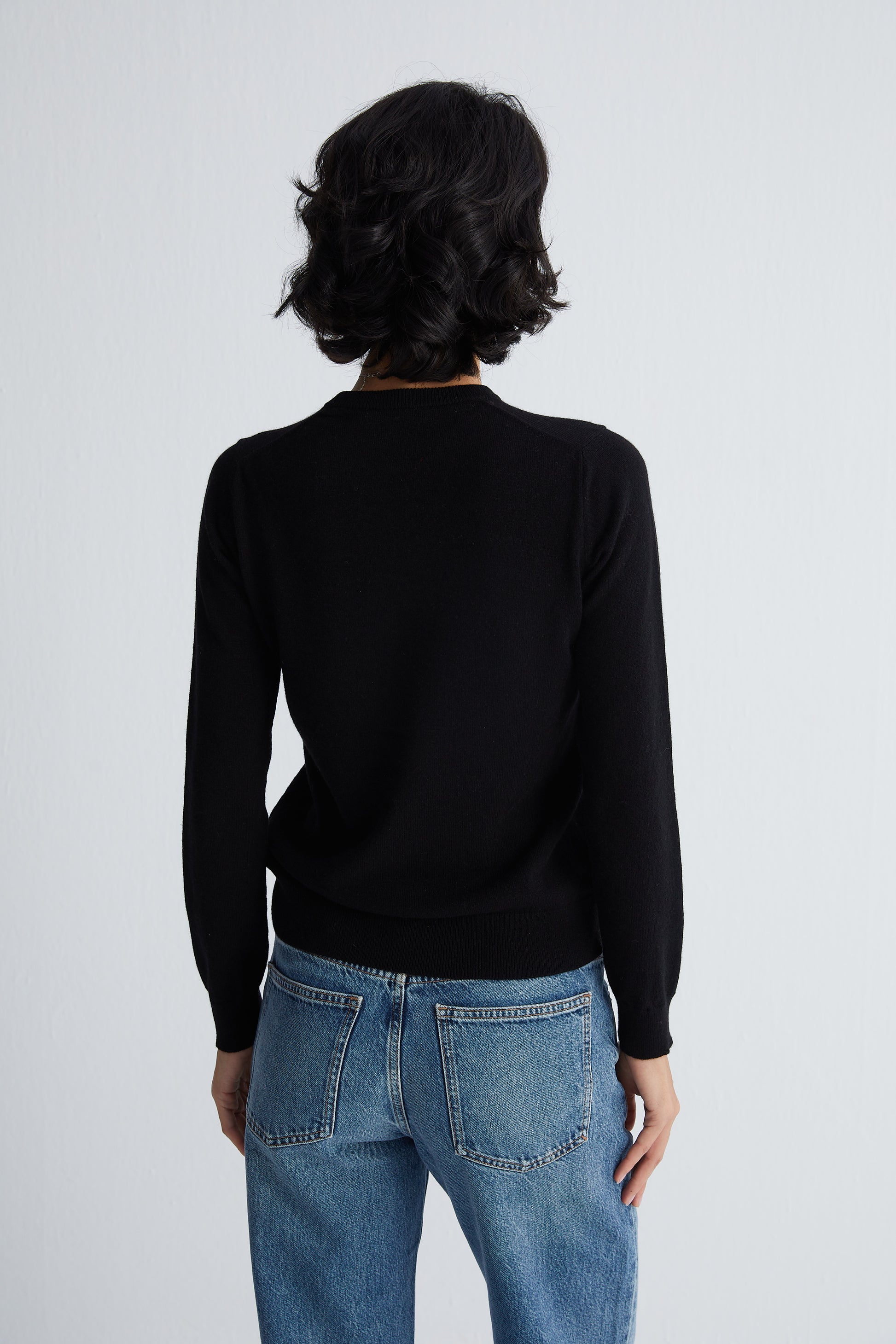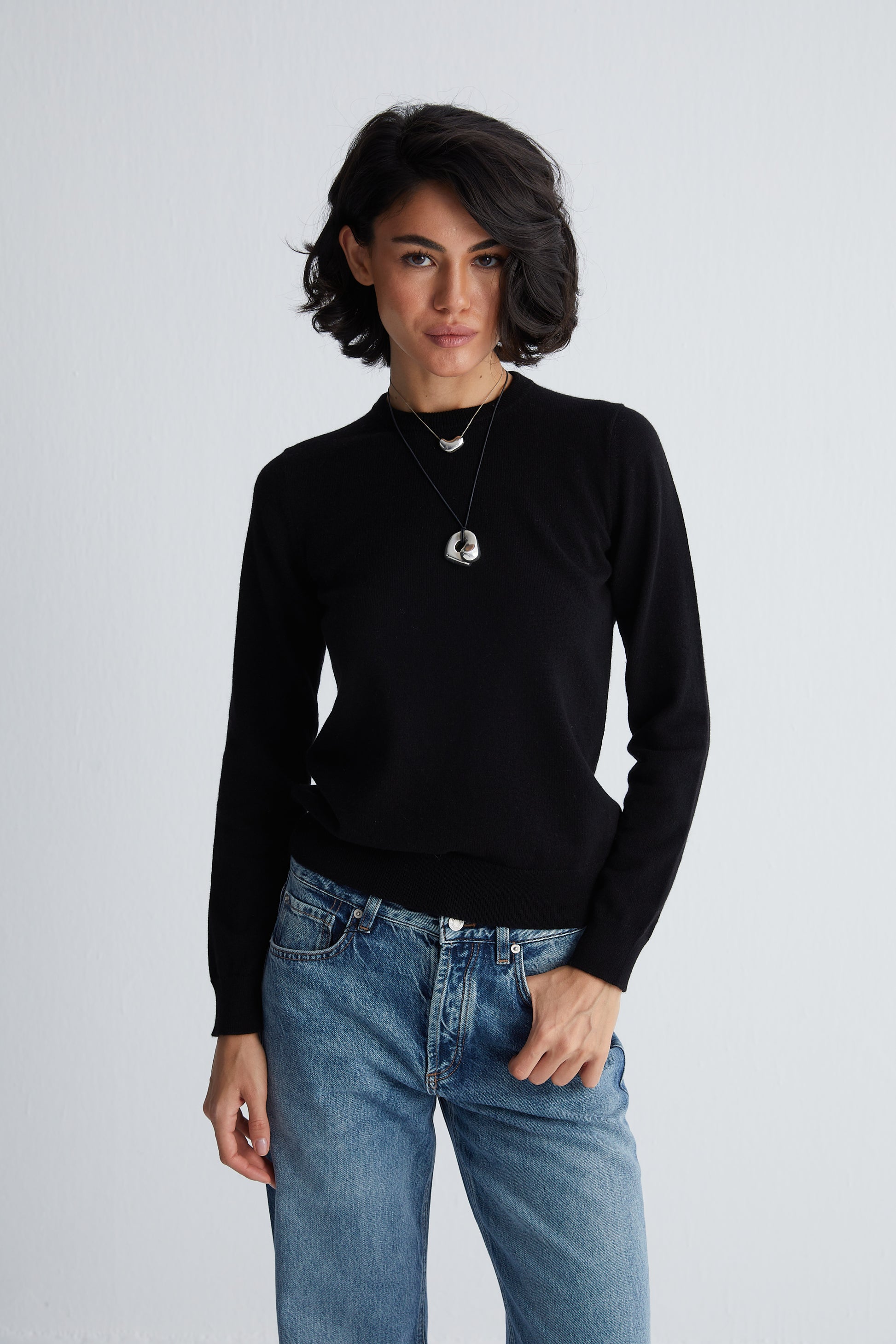 Siyah Alexia Saf Kaşmir Yuvarlak Yaka Kazak