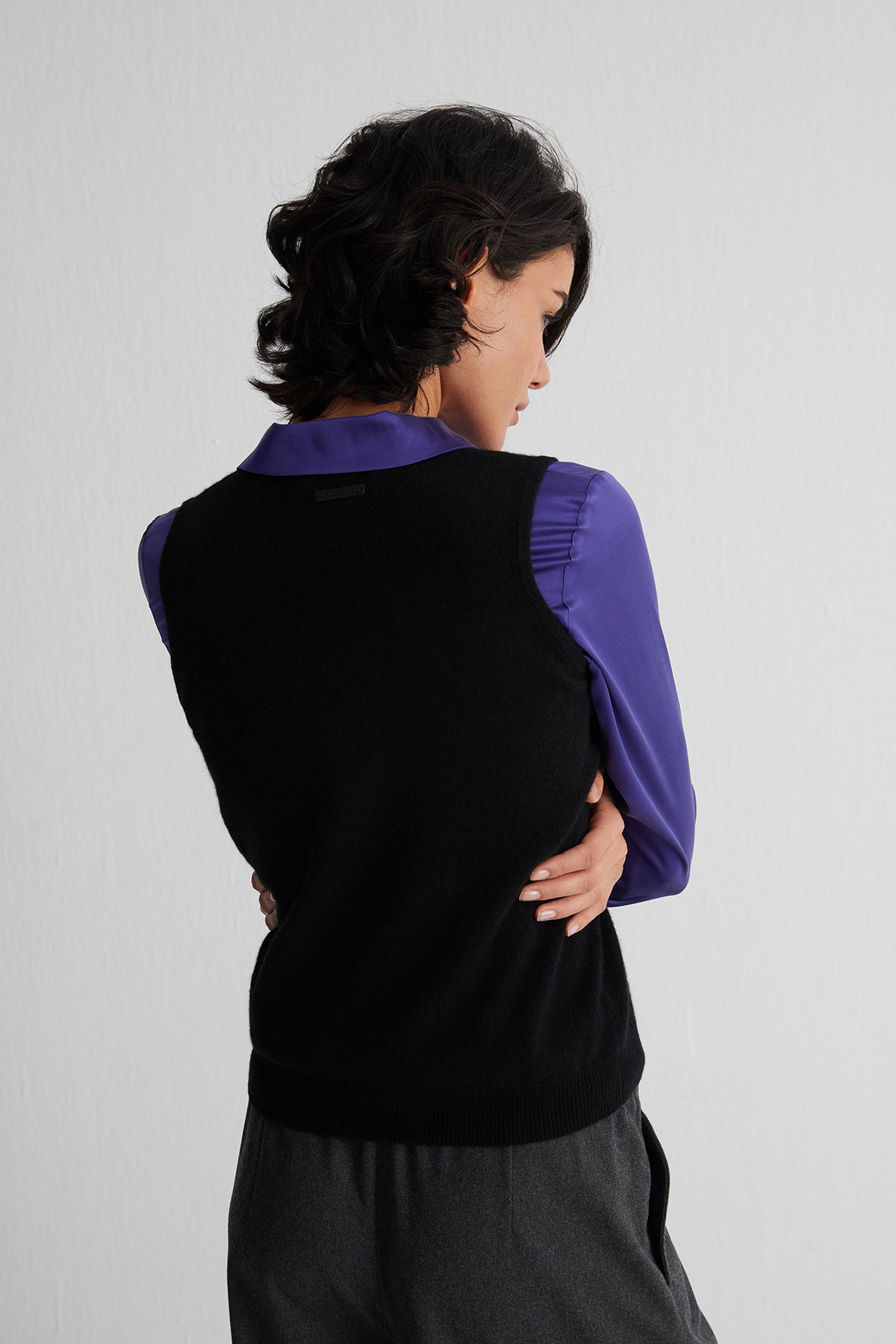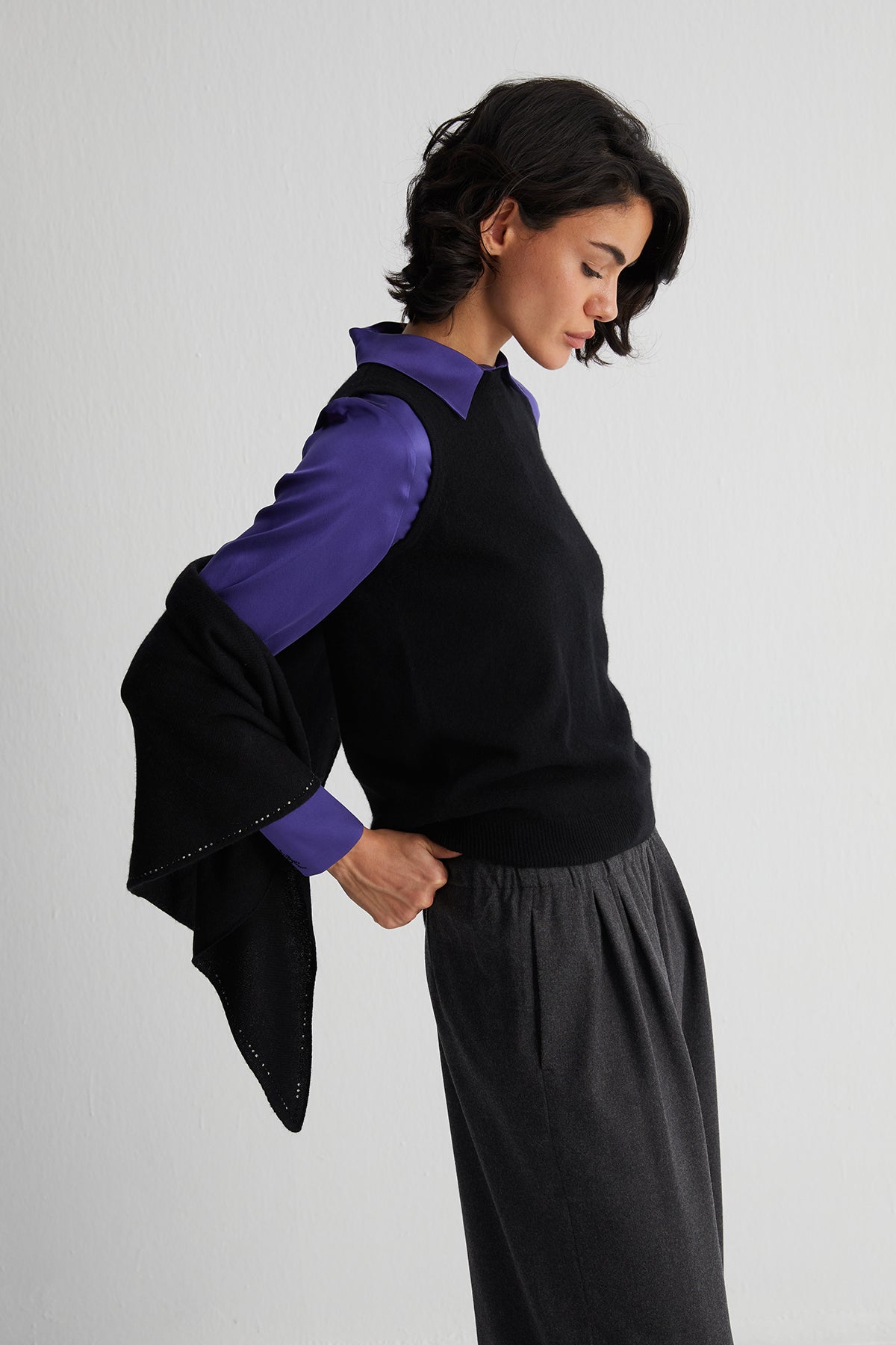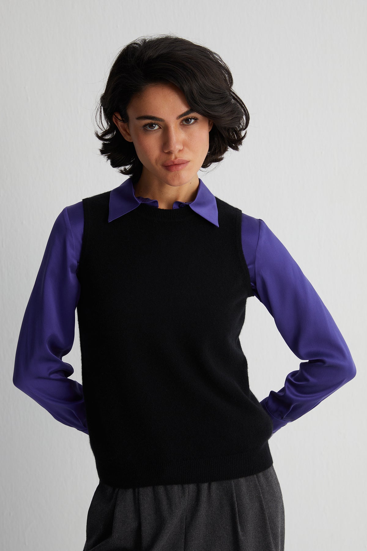 Siyah Alexia Saf Kaşmir Yuvarlak Yaka Süveter