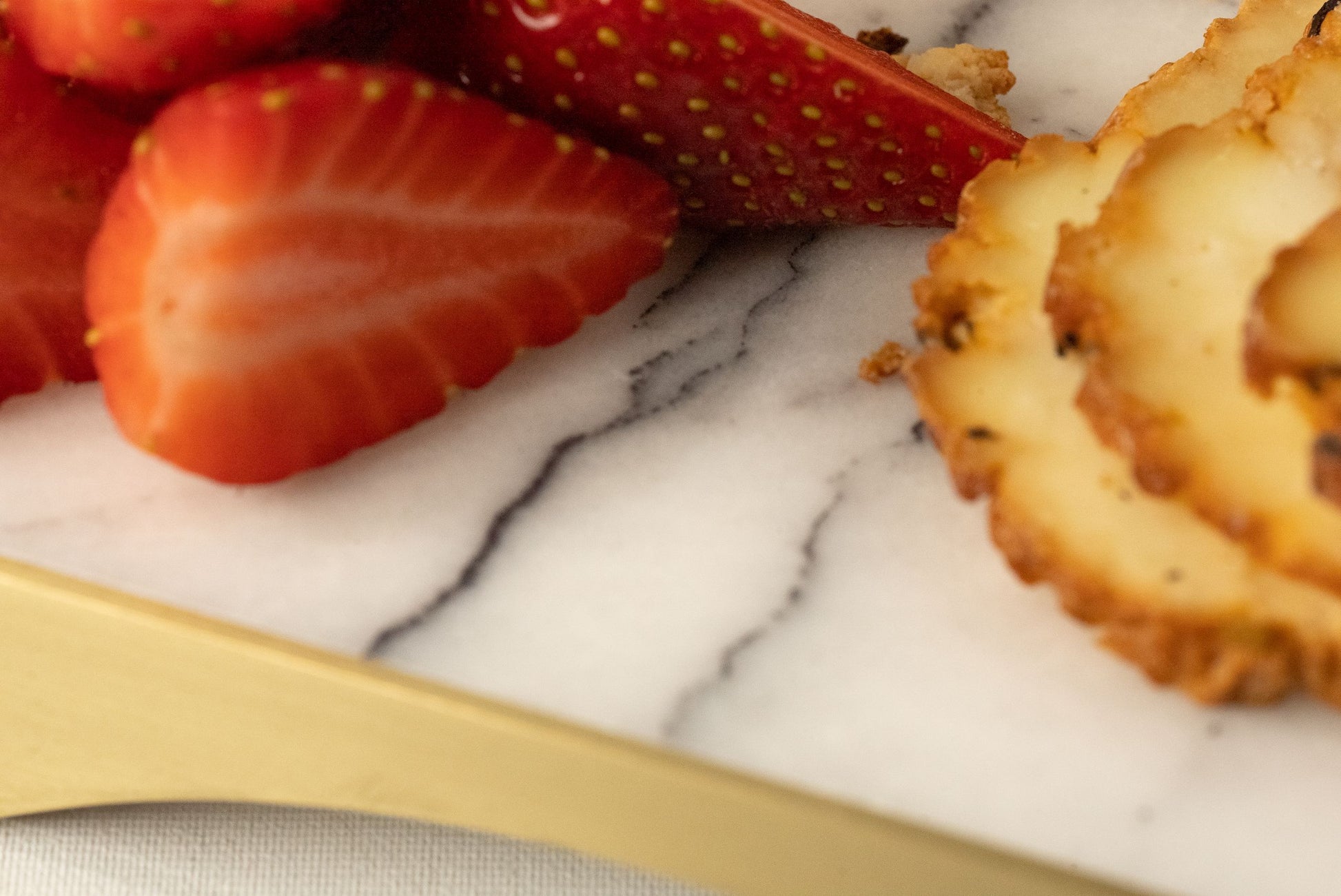 Köşeli hatların gücünü doğanın zarafetiyle birleştiren Asawa kare peynir tabağı, sadeliği merkez alan sofralar için çağdaş bir yorum sunar. Mermerin zamansız yapısı, doğal damar desenleriyle her parçaya tekil bir ruh kazandırırken; pirinç çerçeve detayı tasarımı modern bir çizgiye taşır.