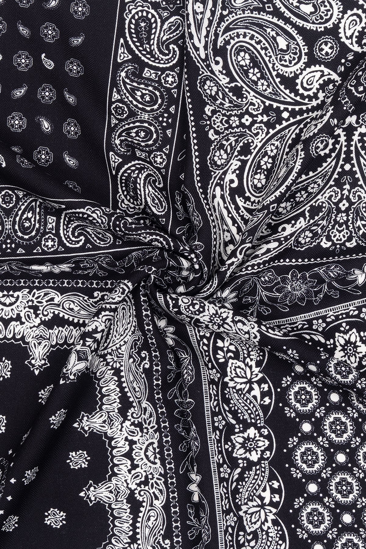 Siyah Lea Saf Kaşmir Baskılı Eşarp 70x 70 cm