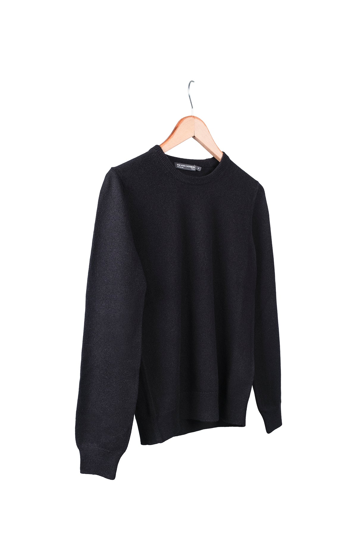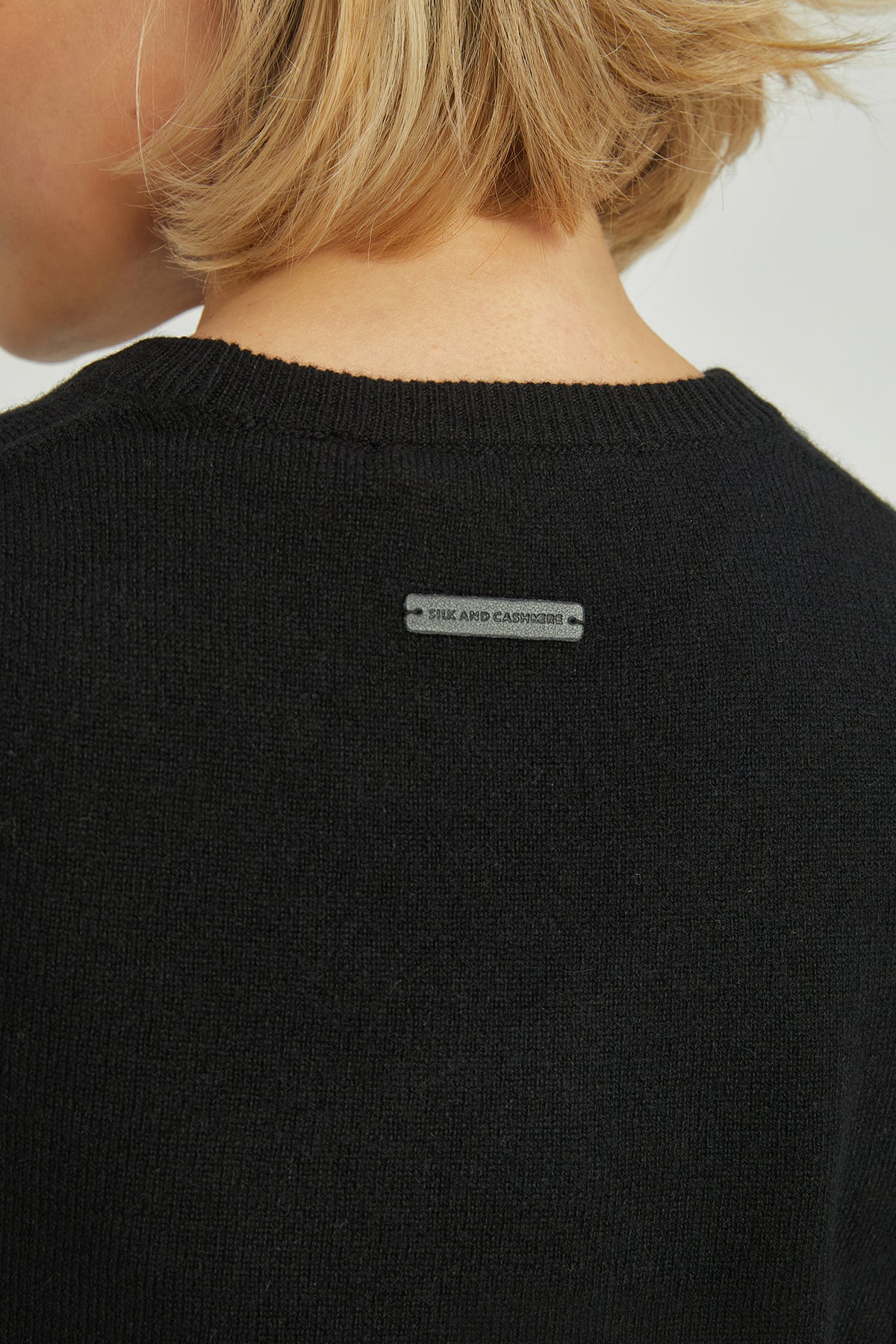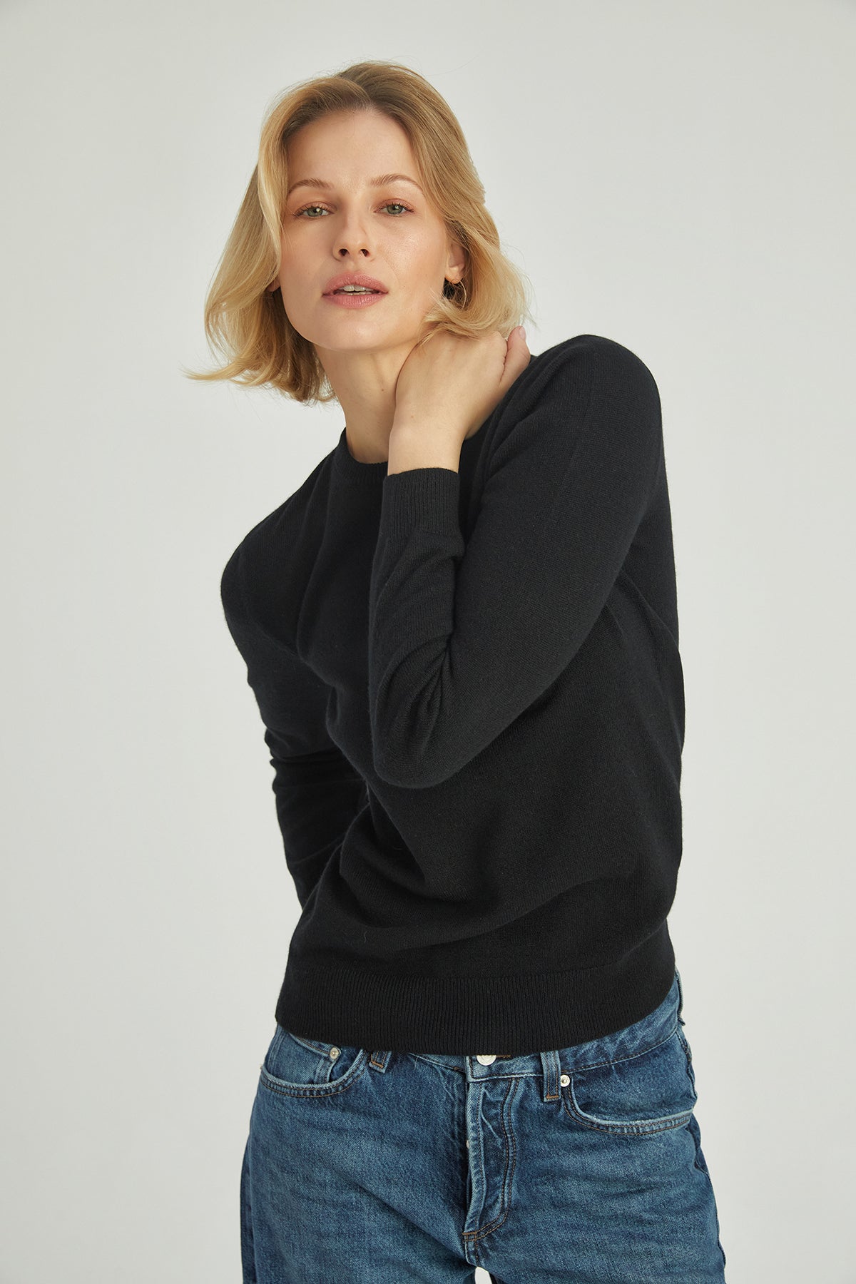 Siyah Franca Saf Kaşmir Bisiklet Yaka Kazak