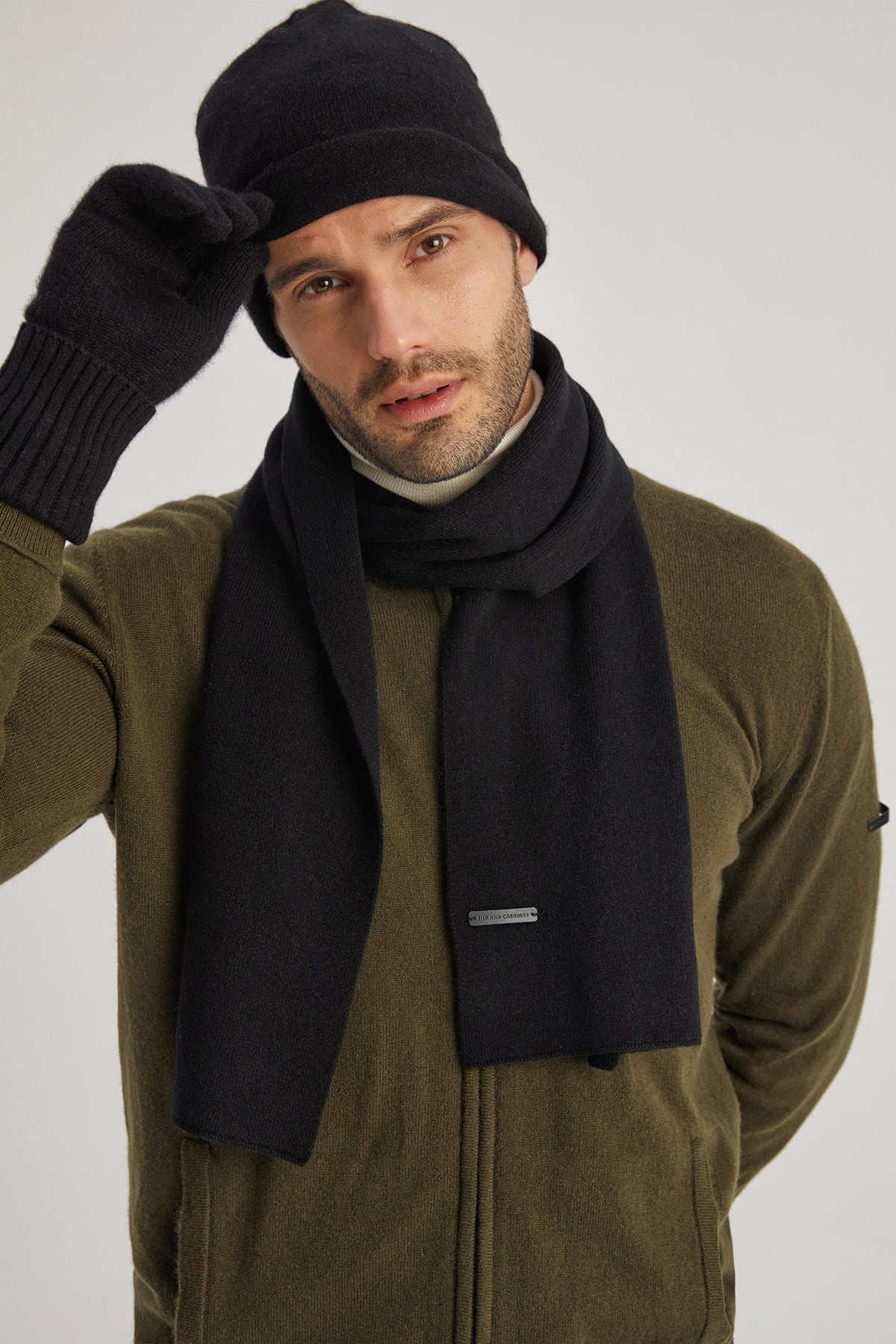 Siyah Hannover Saf Kaşmir Erkek Eldiven