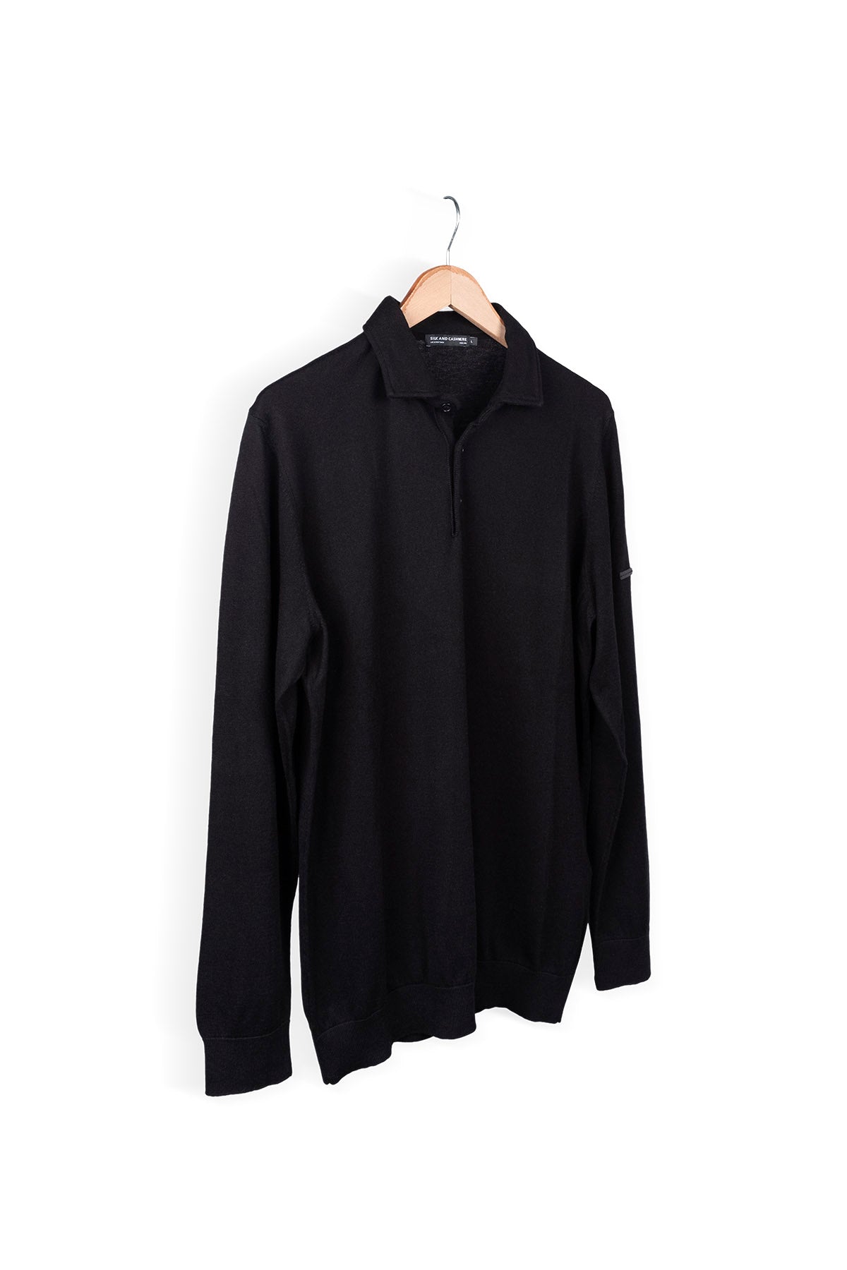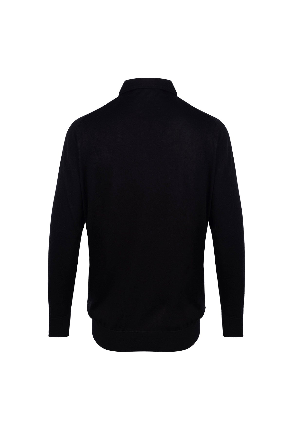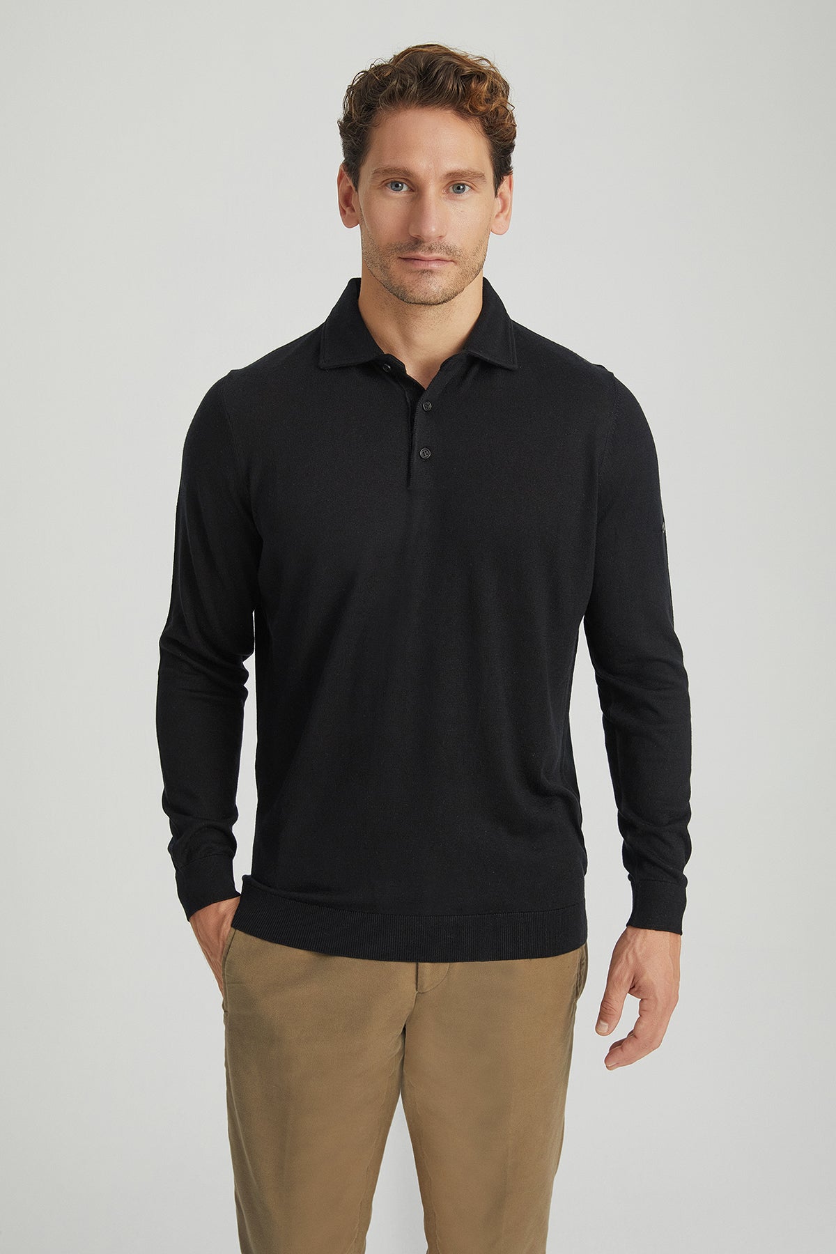 Siyah İpek Kaşmir Utku Uzun Kollu Erkek Polo