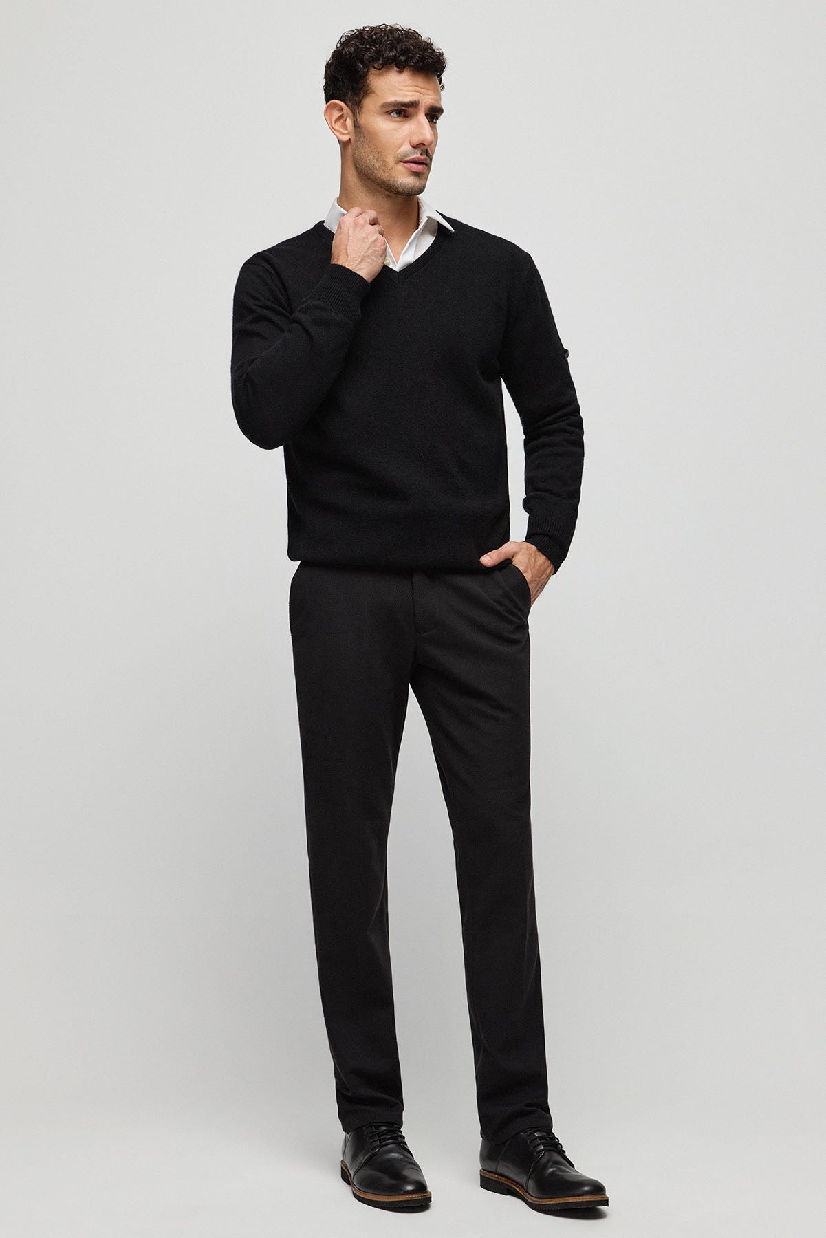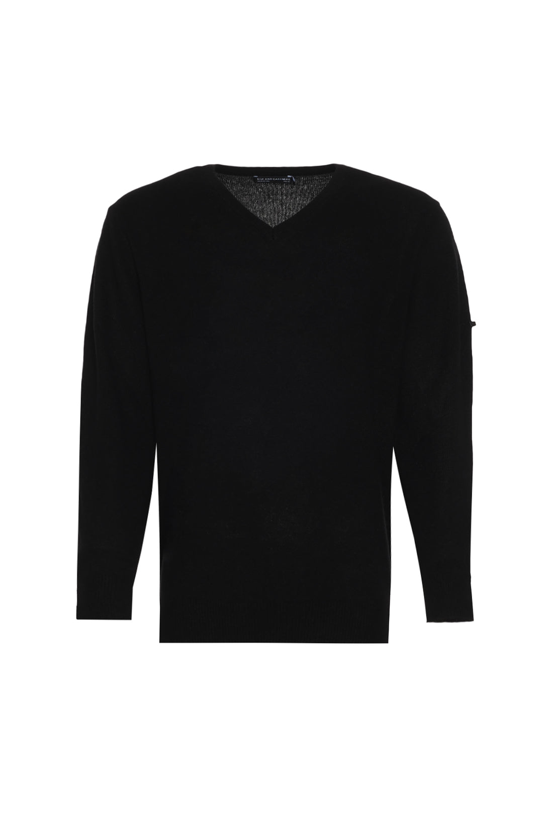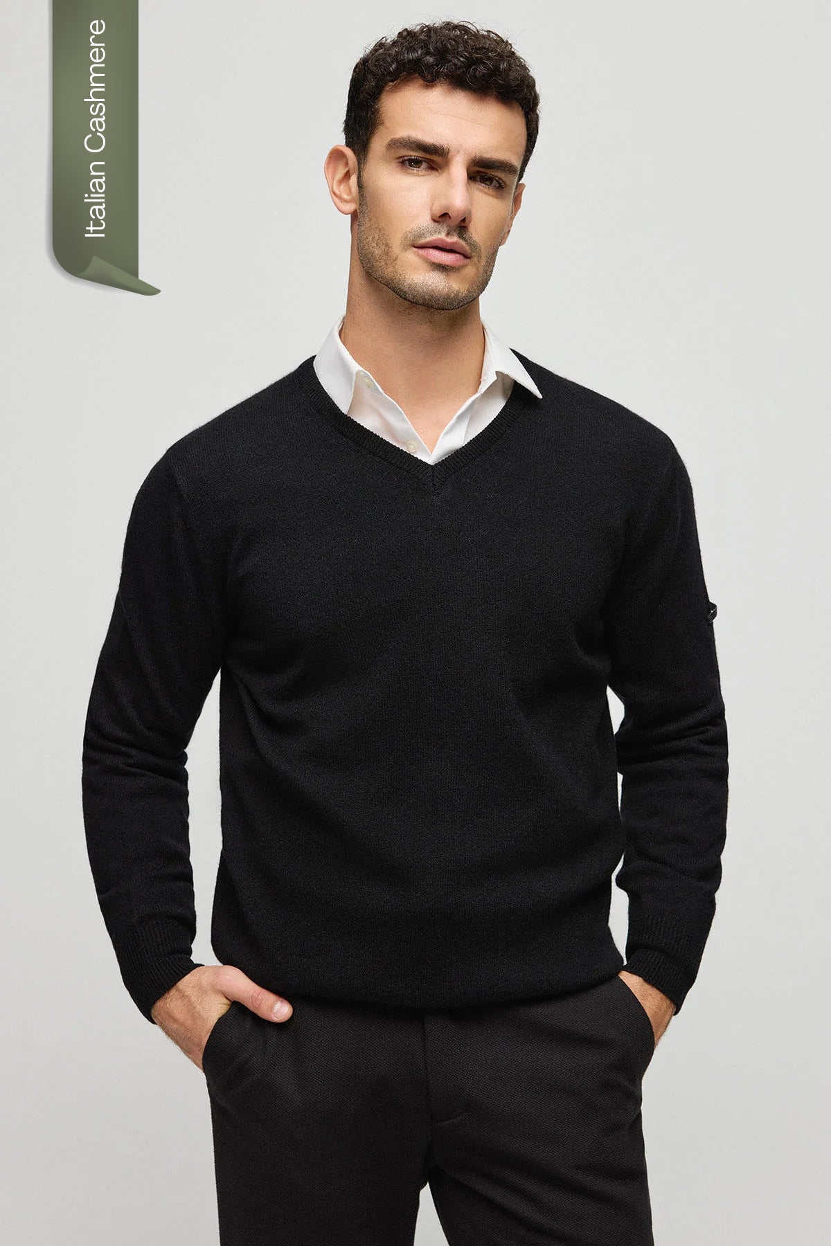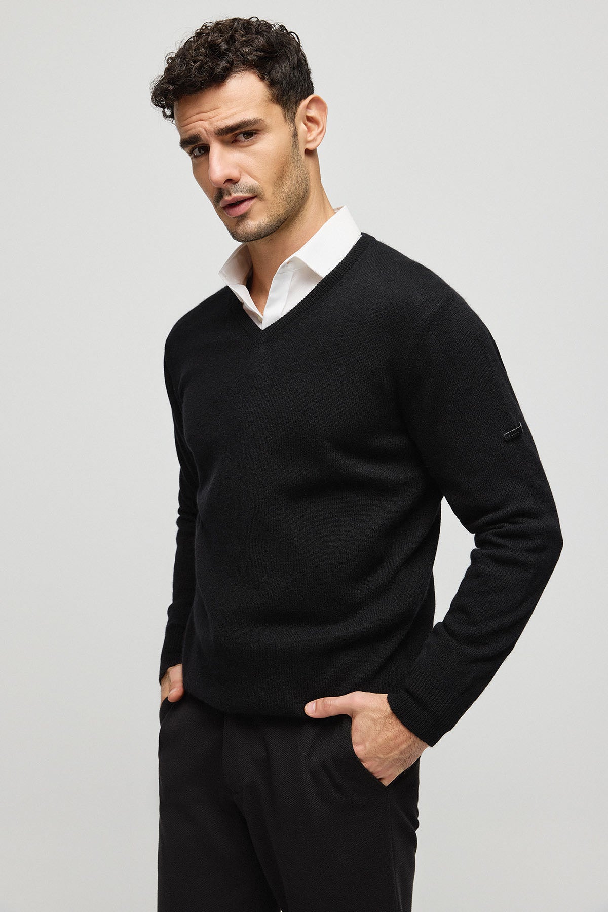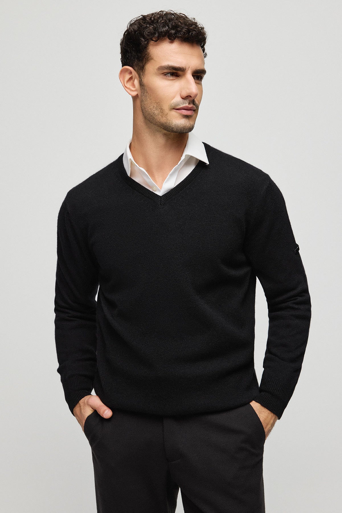 Siyah İtalyan Saf Kaşmir Franco V Yaka Erkek Kazak