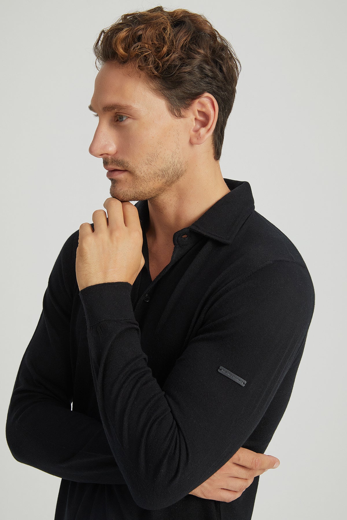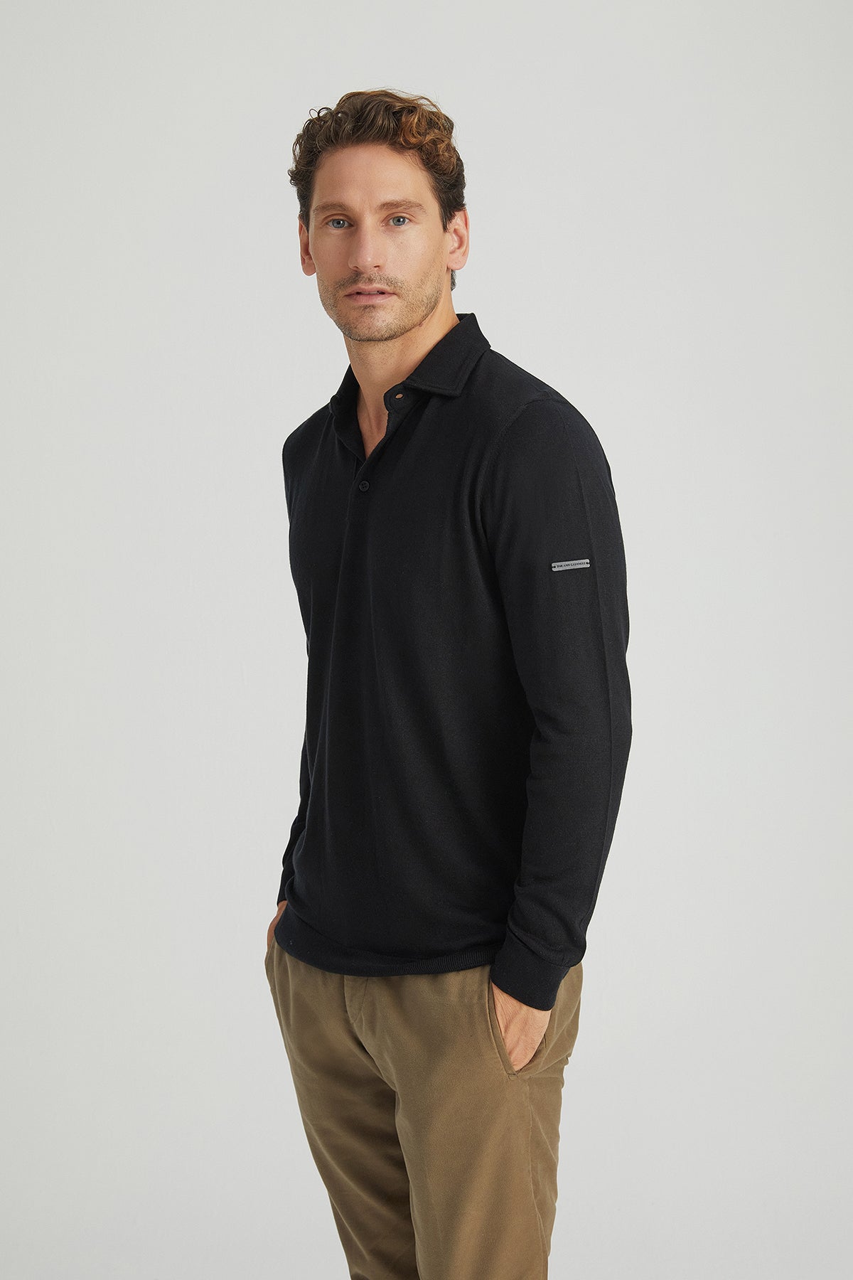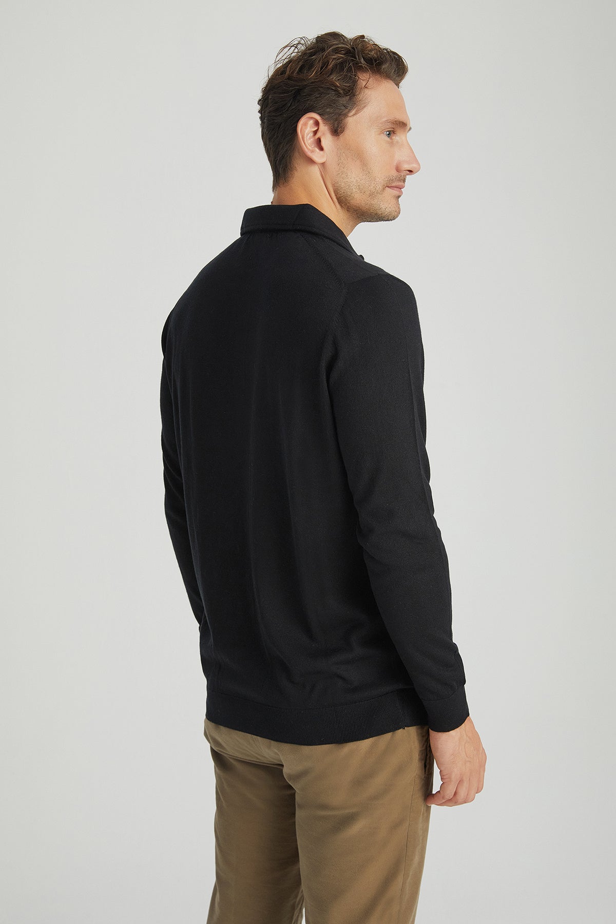 Siyah İpek ve Kaşmir Polo Yaka Uzun Kollu Utku Erkek Triko