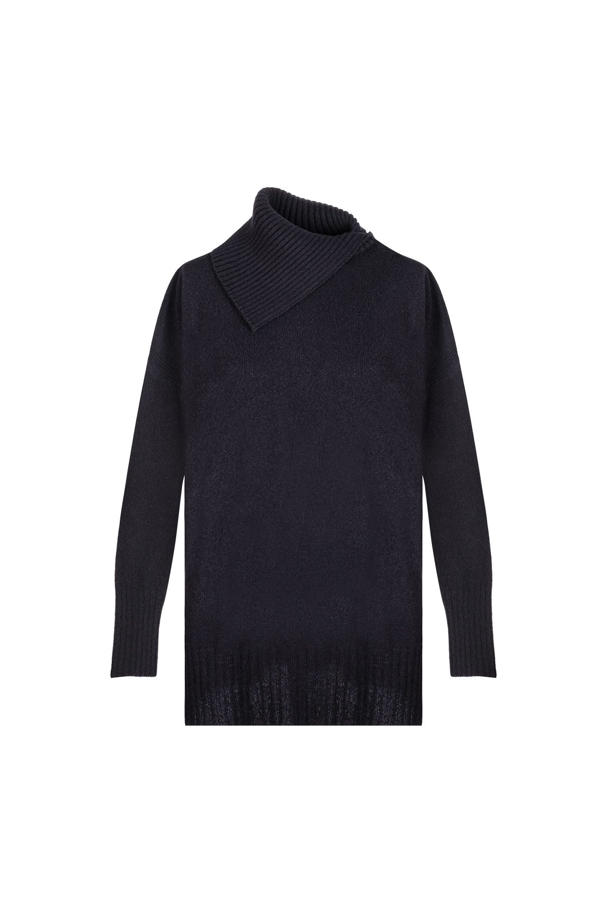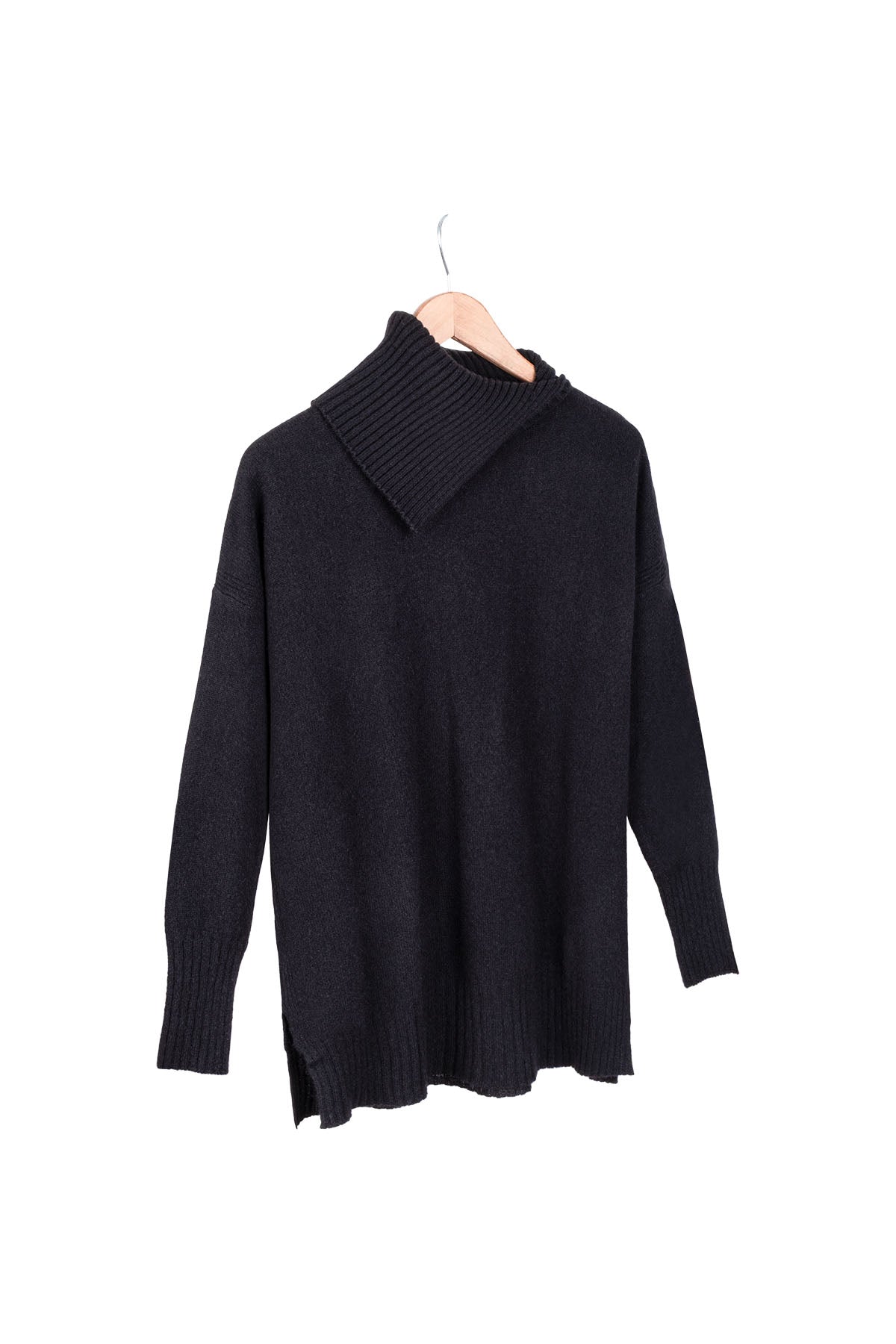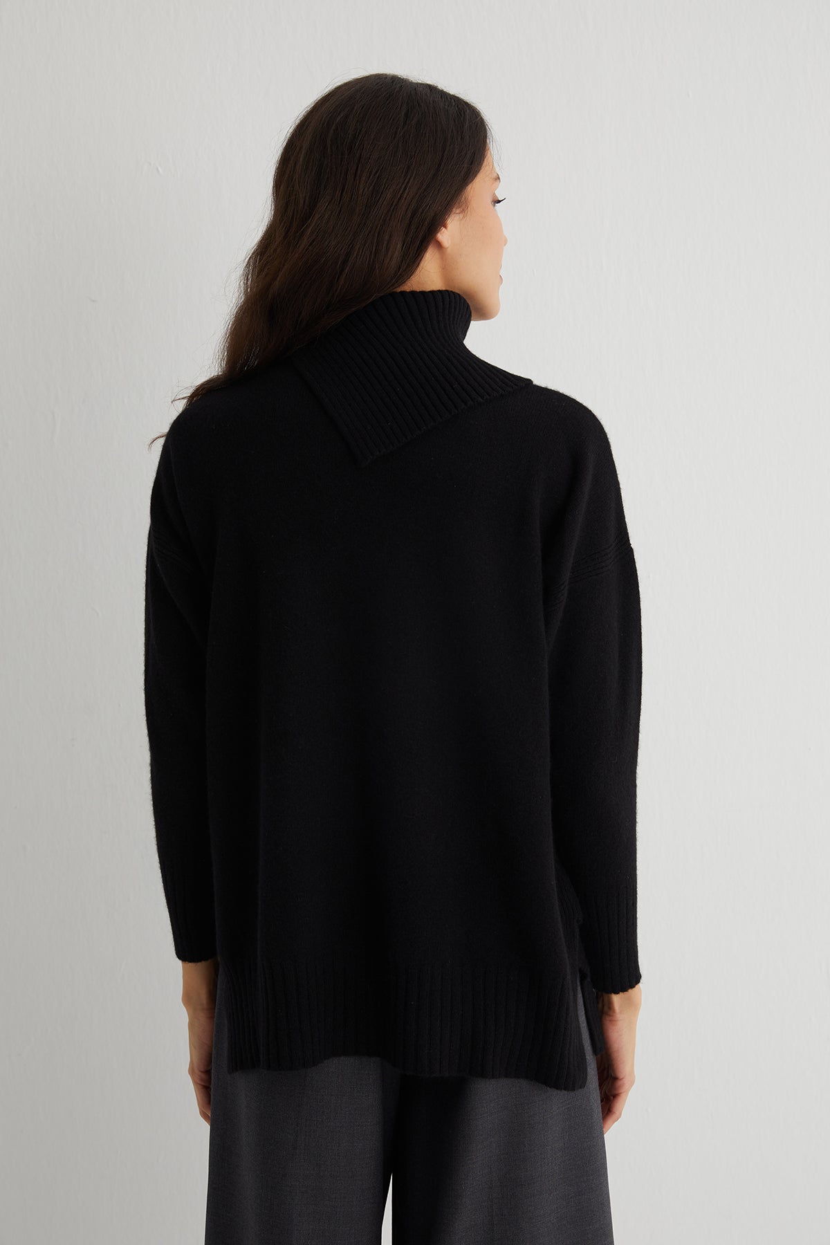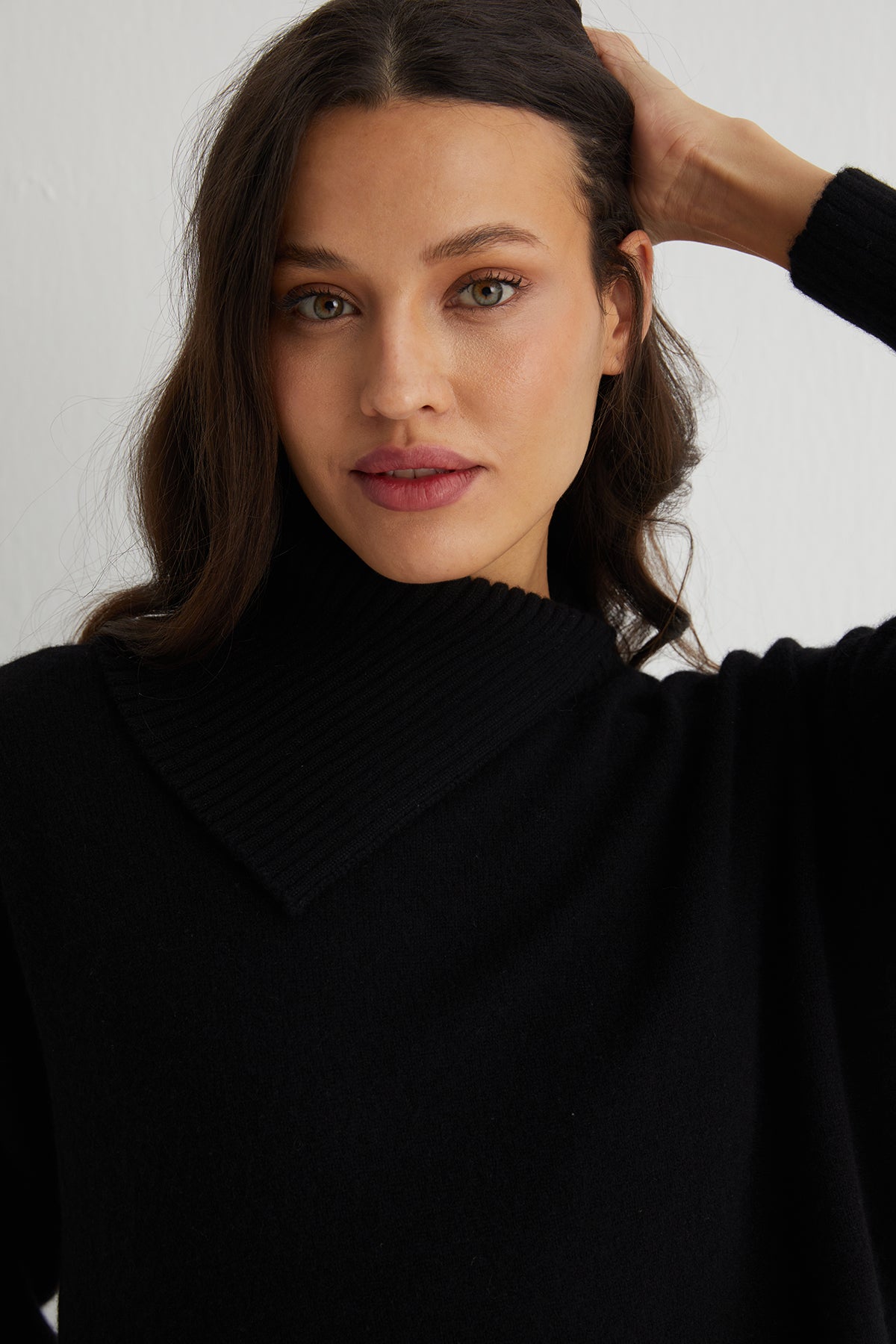 Siyah Isabella Saf Kaşmir Balıkçı Yaka Kazak