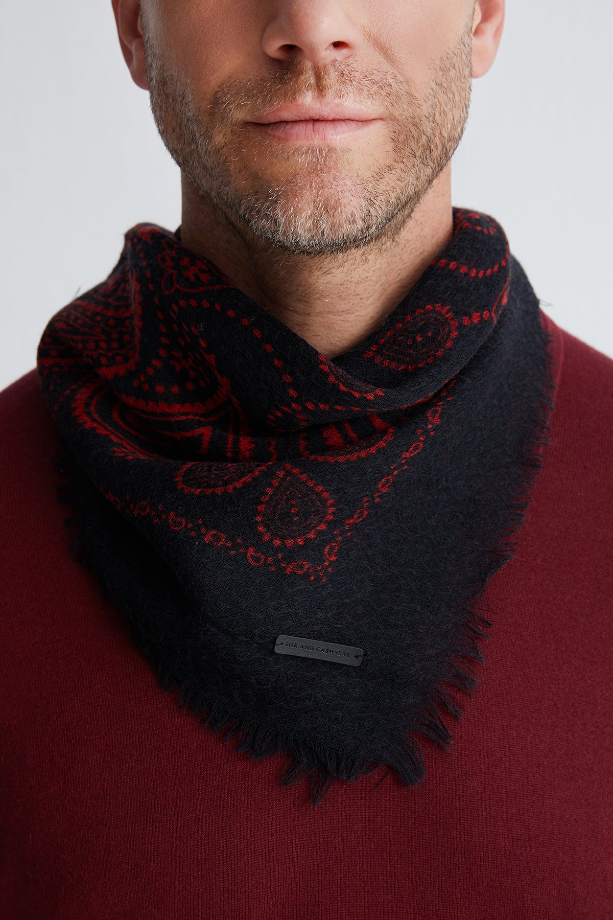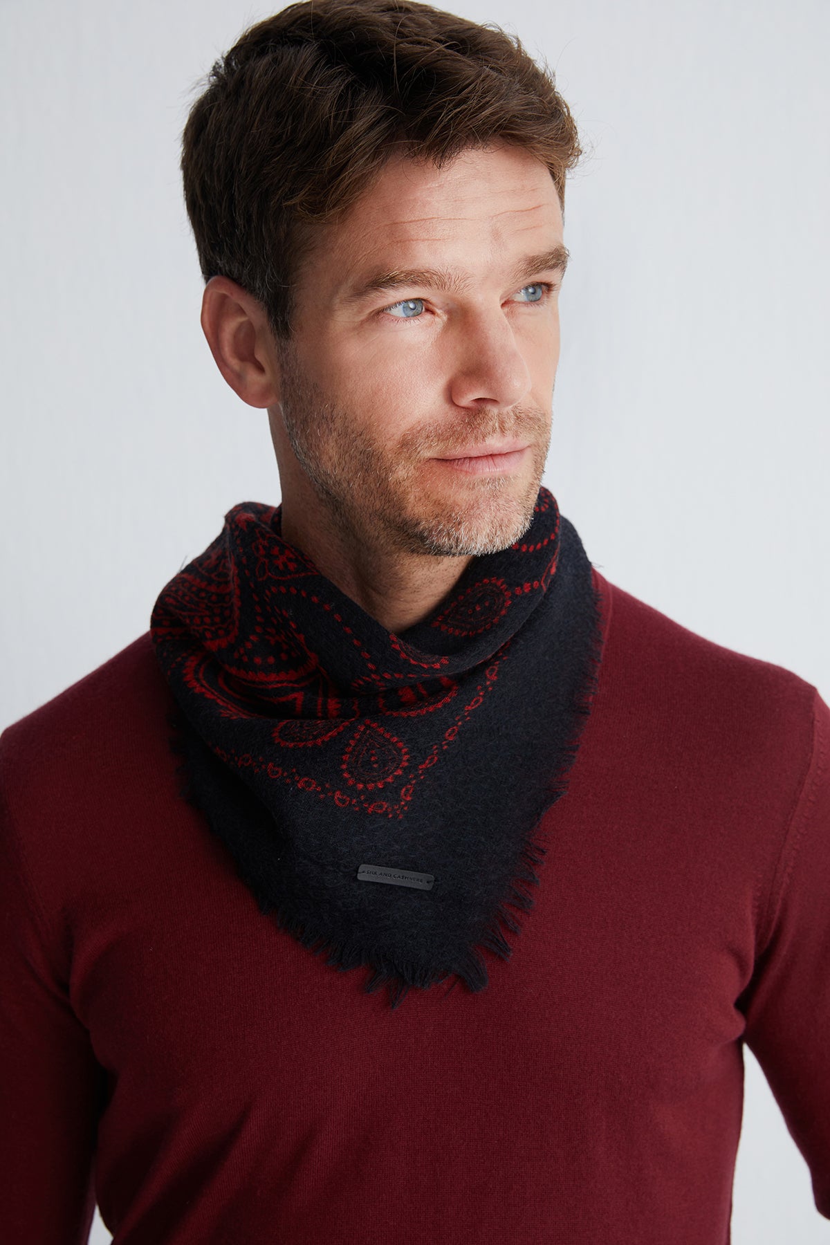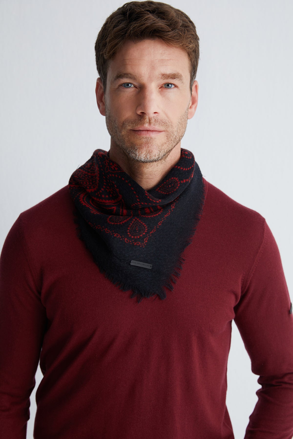 Zamansız jas desenlerini modern kare formda sunan bu şal, gün boyu kullanım için ideal bir parça. Yün ve ipek karışımı dokusuyla hem yumuşak hem de dayanıklı olan tasarım, sade kombinlerin dahi karakterini tamamlamayı başarıyor.