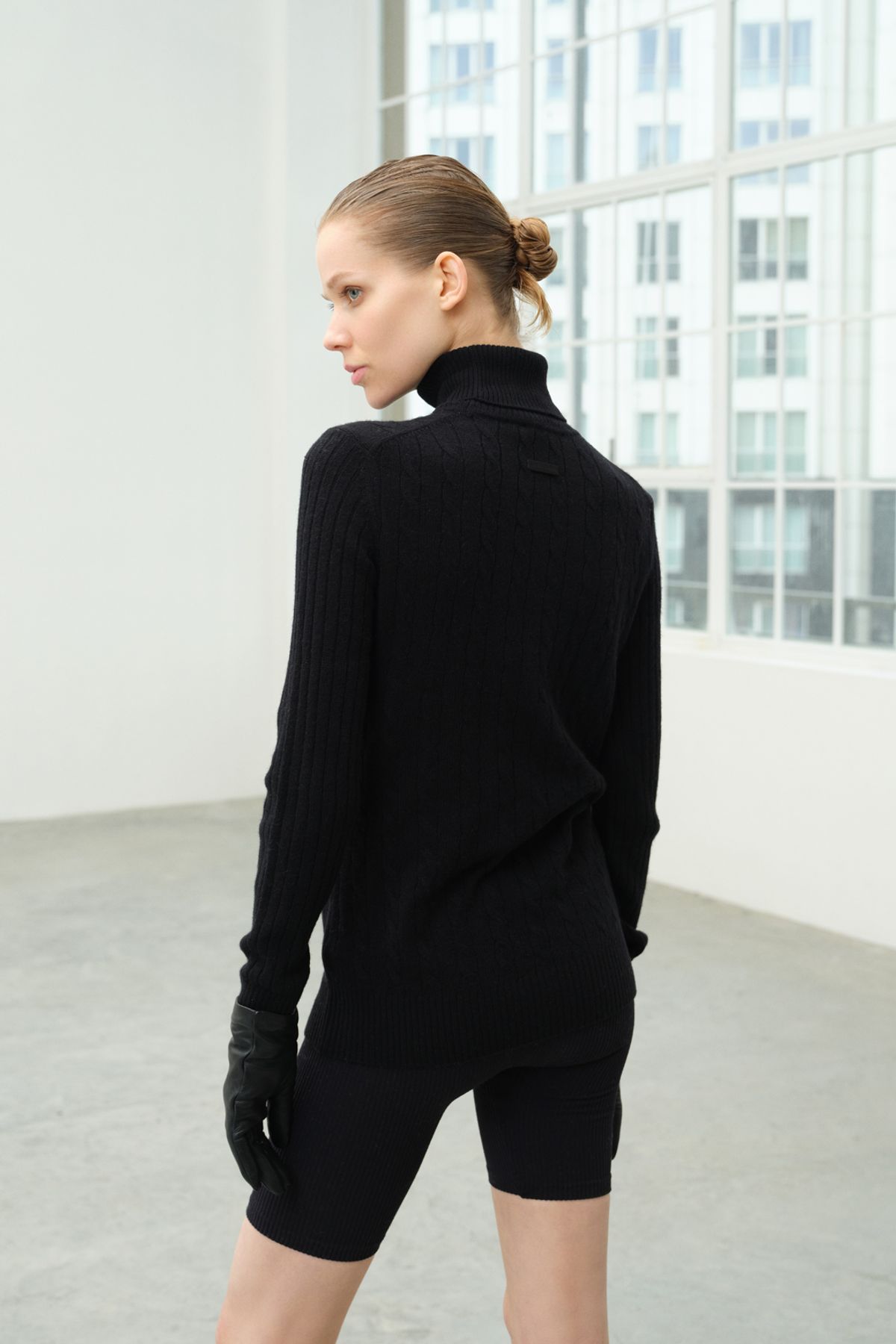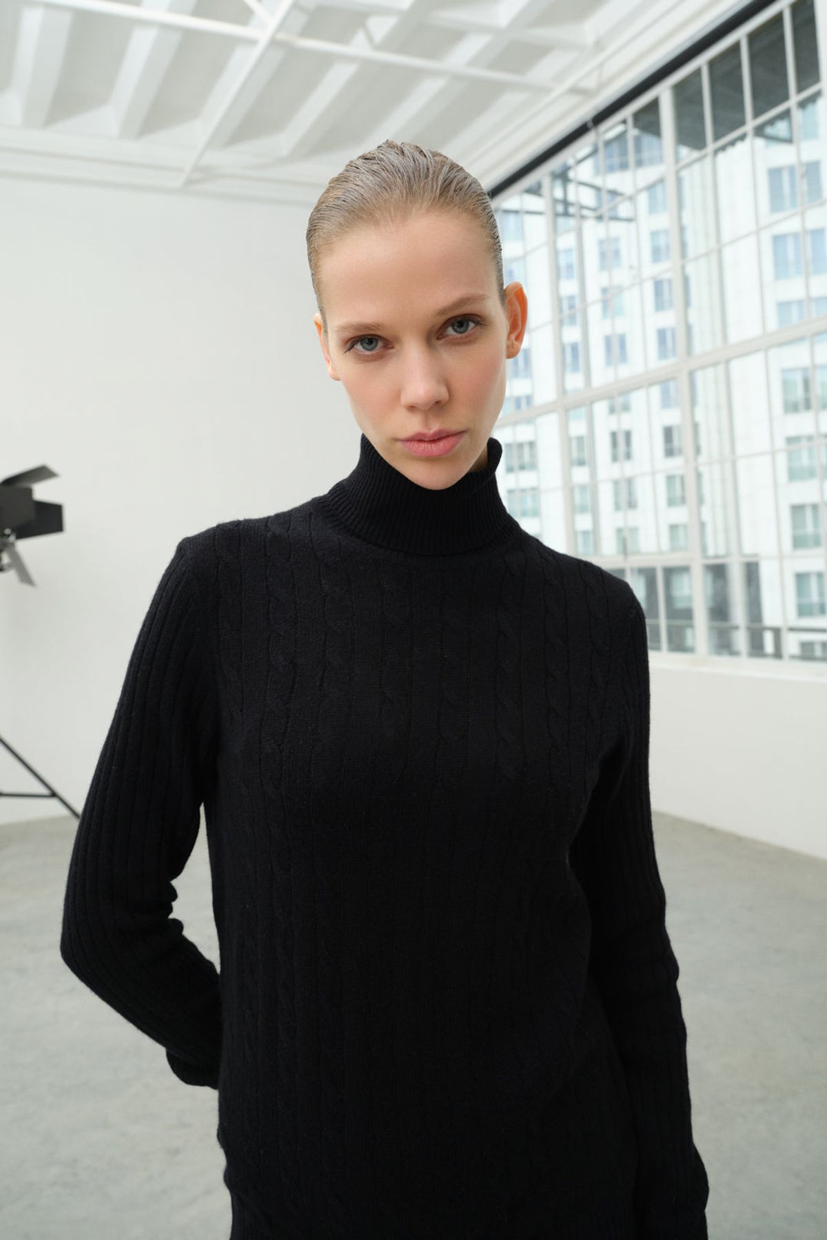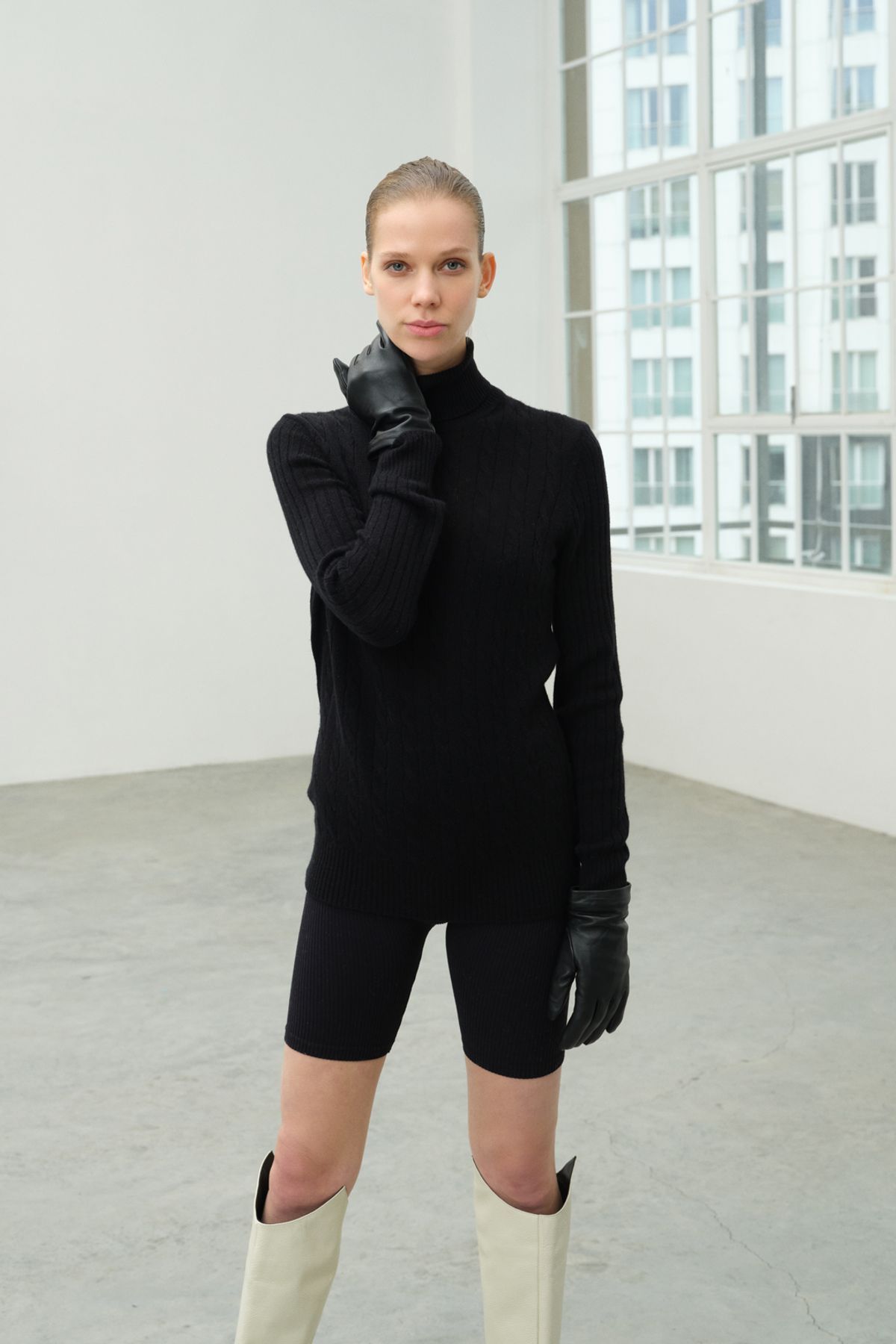 Siyah Kaşmirli Amelia Balıkçı Yaka Uzun Kollu Kazak