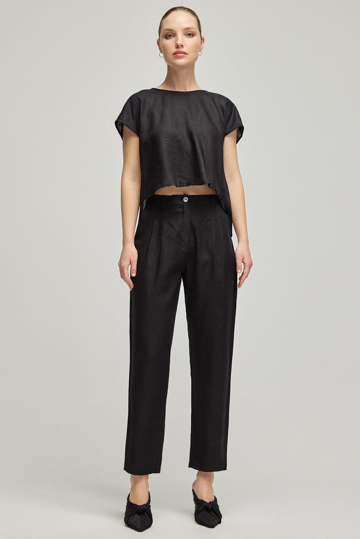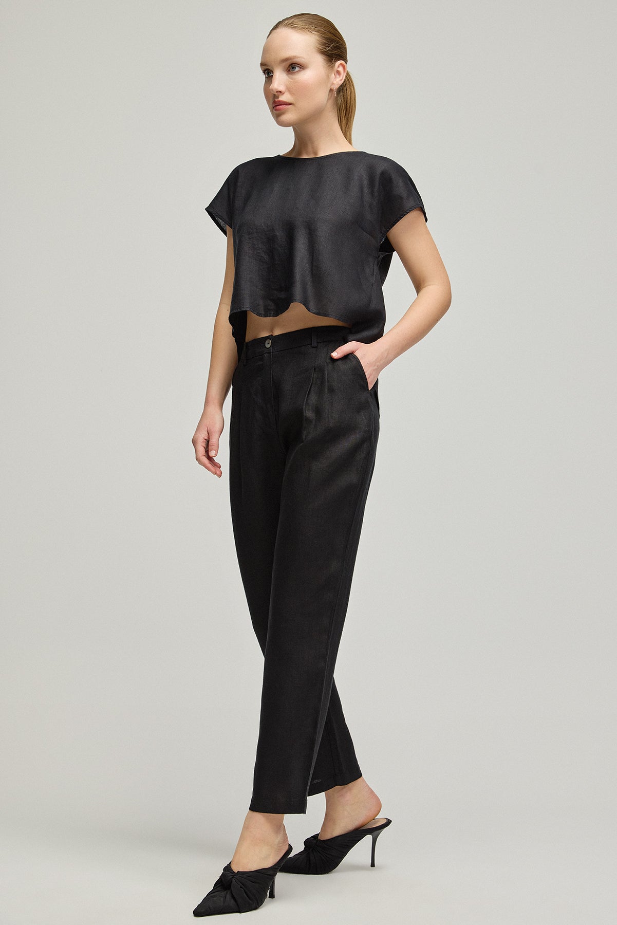 Siyah Kate Keten Pantolon