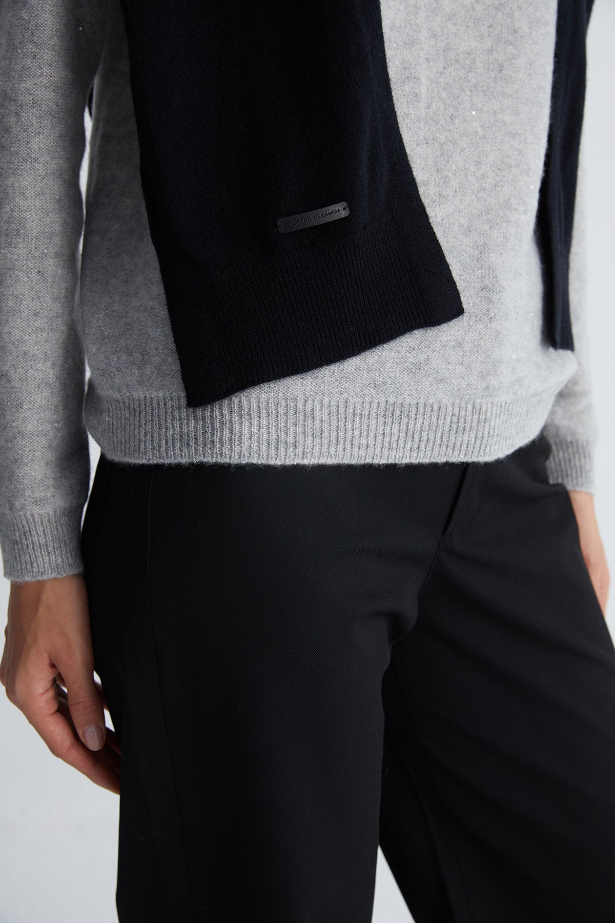 Siyah Lilly Saf Kaşmir Kazak Atkı