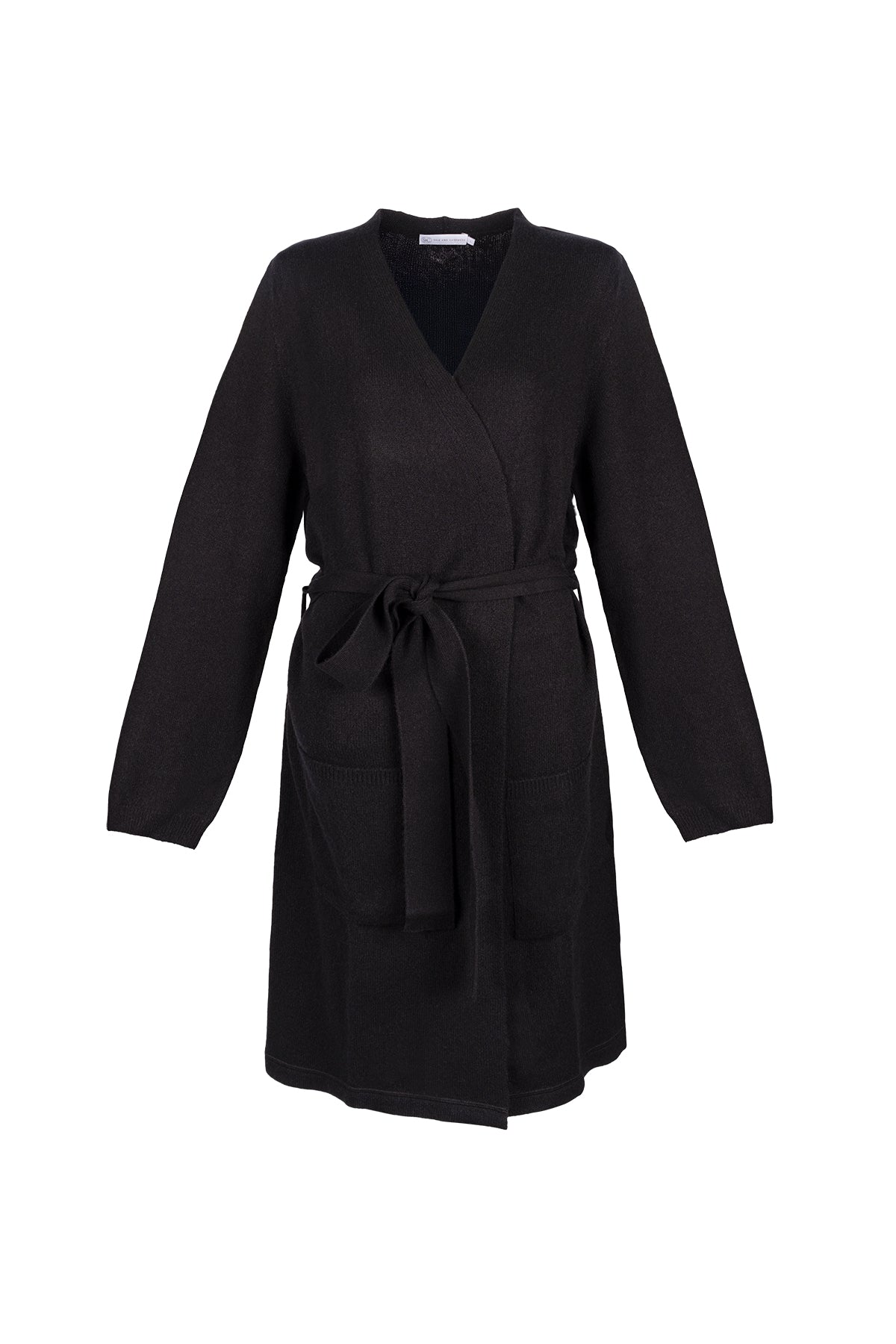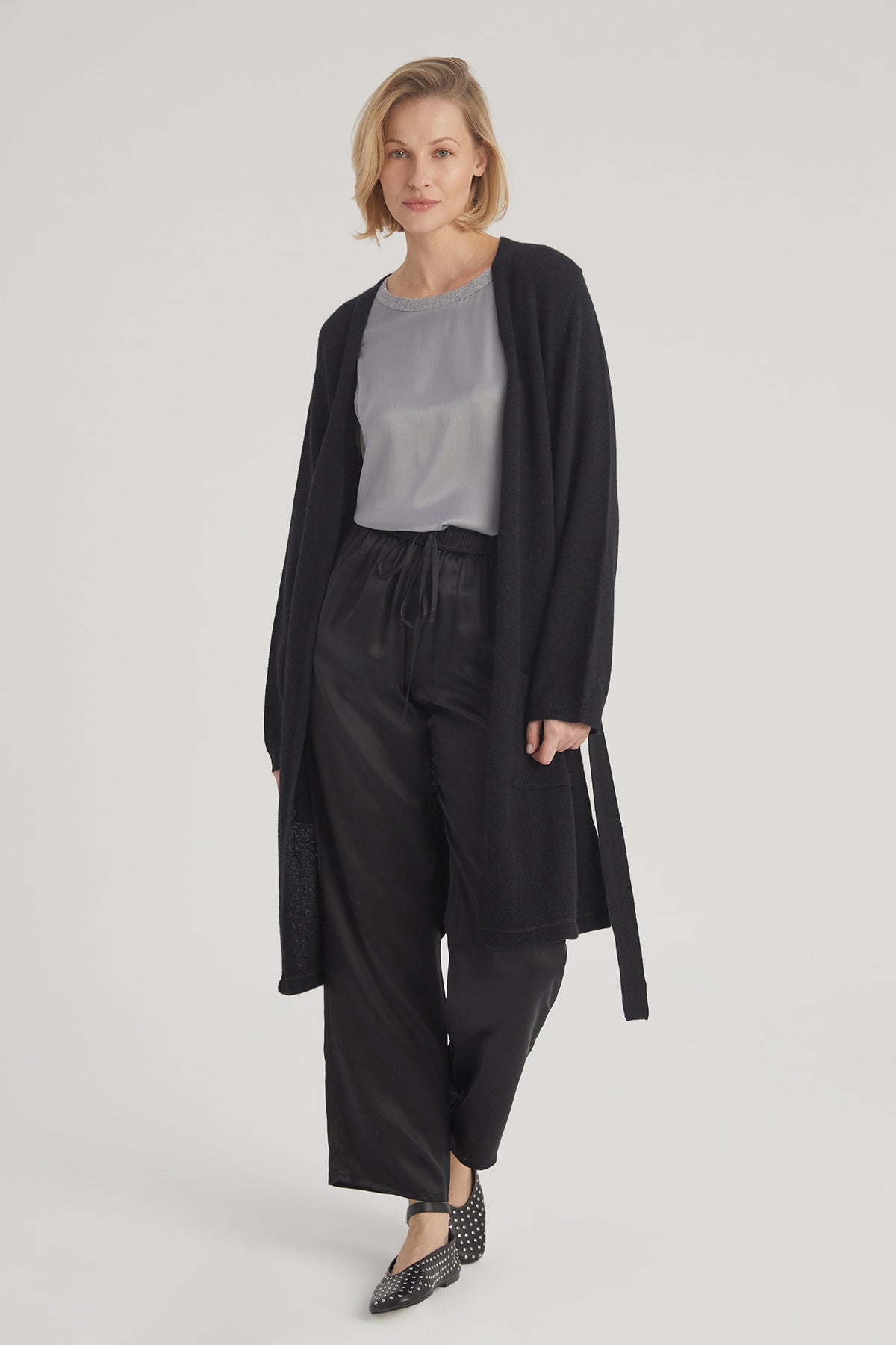 Siyah Lilly Saf Kaşmir Uzun Hırka