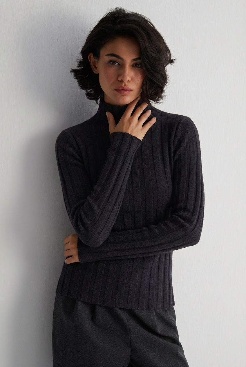 Saf Kaşmir Maggie kazak, doğanın en rafine hammaddelerinden saf kaşmirle hayat buluyor. Yarım balıkçı yakası ve ribanalı yapısıyla sizi sadece sıcak tutmakla kalmaz, aynı zamanda gün boyu konfor ve bütünsel bir zarafet hissi sunar.