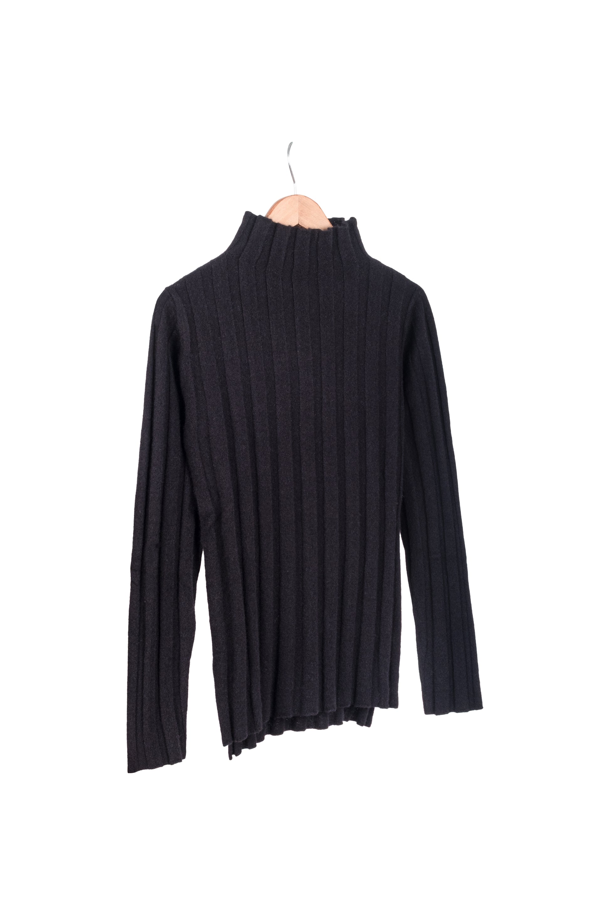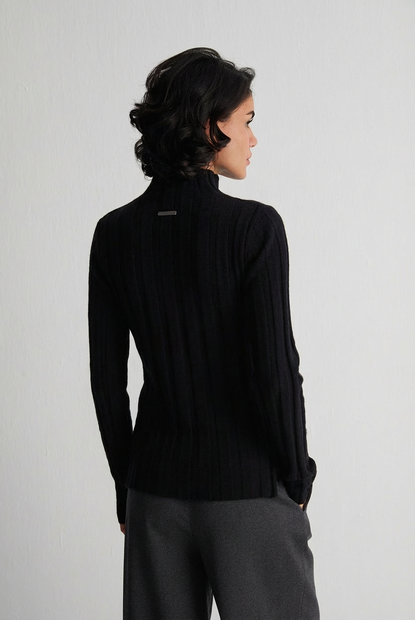 Siyah Maggie Saf Kaşmir Yarım Balıkçı Ribanalı Kazak