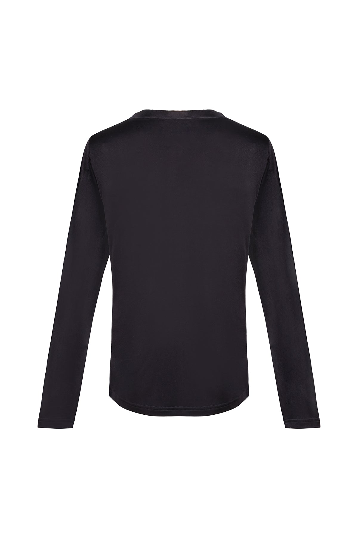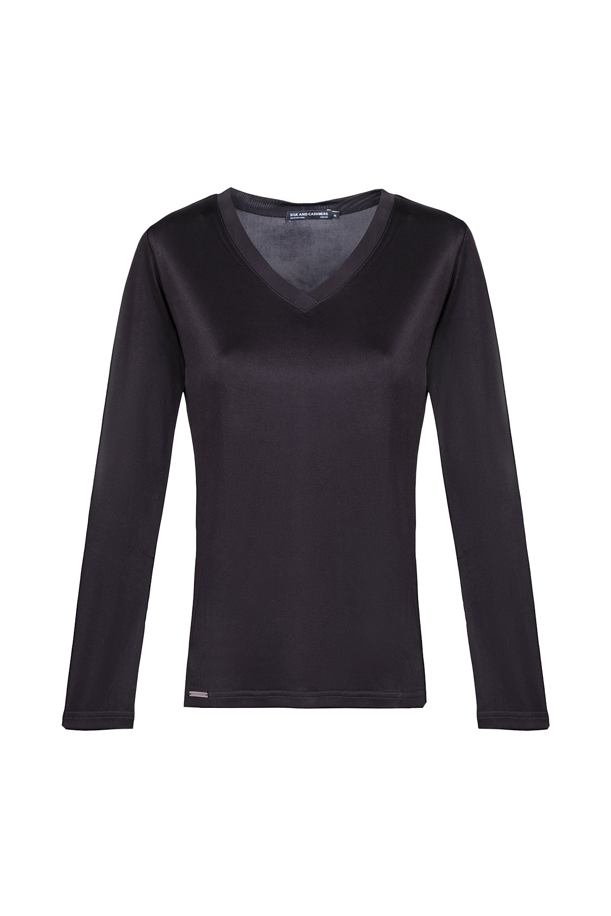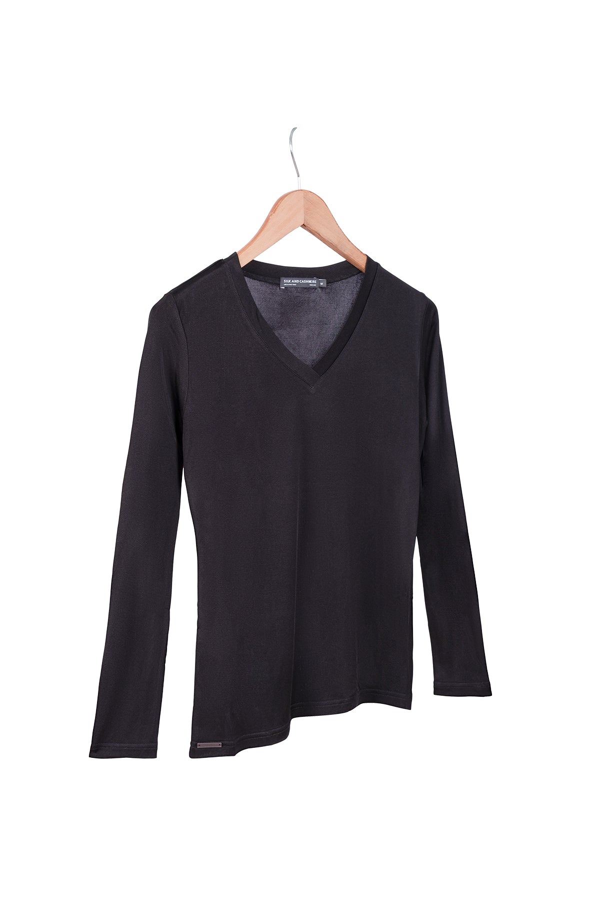 Siyah Marina İpekli V Yaka Bluz, ipeğin doğal parlaklığıyla modern bir stil sunuyor. Zarif V yaka formu ve akışkan kumaşı sayesinde her ortamda sade ama etkileyici bir görünüm elde etmenizi sağlar.