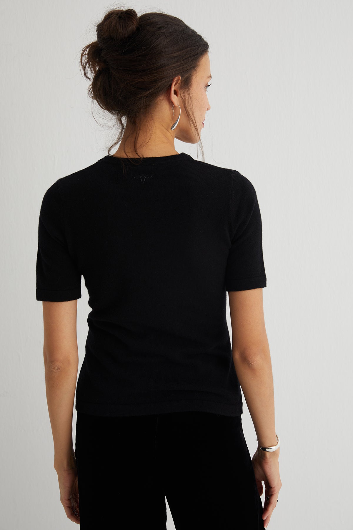 Siyah Merill Taşlı Yuvarlak Yaka Kısa Kollu Triko
