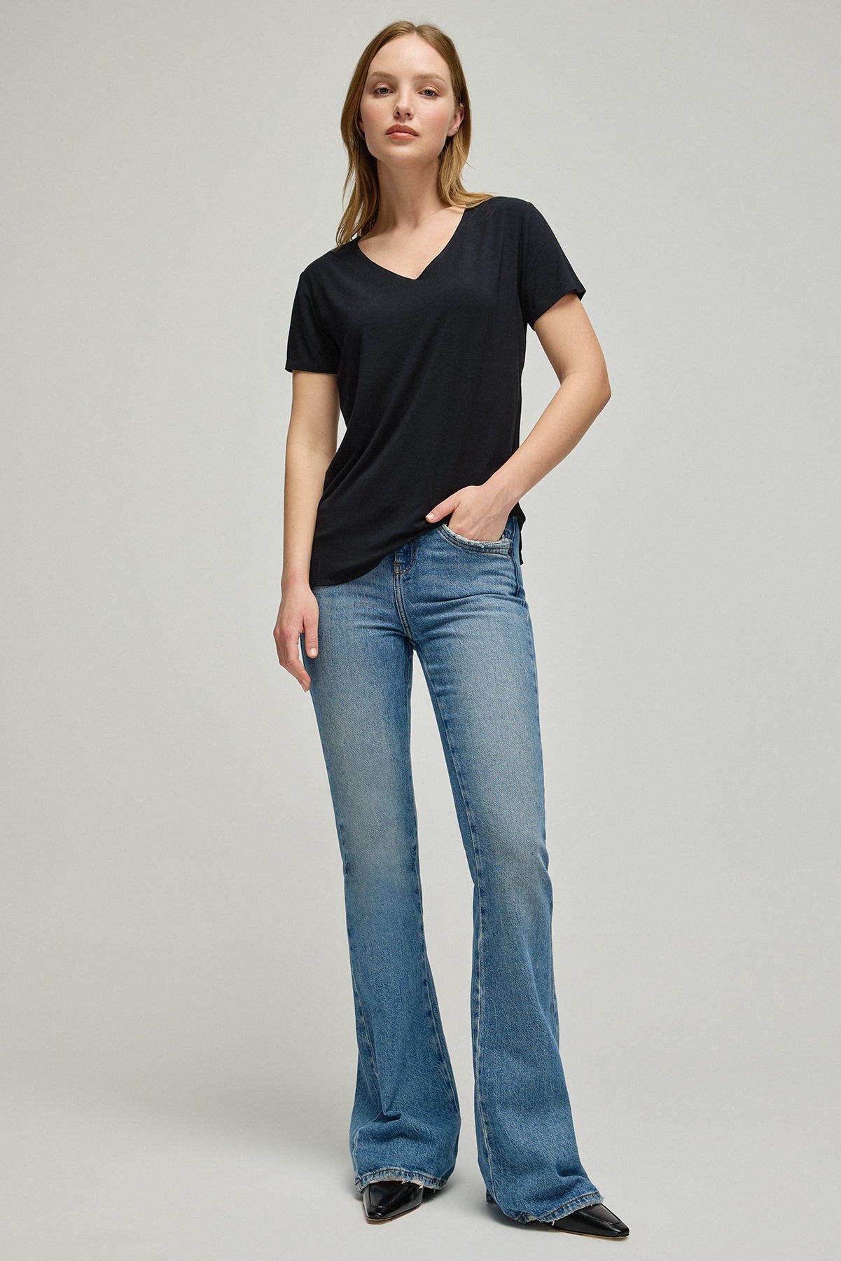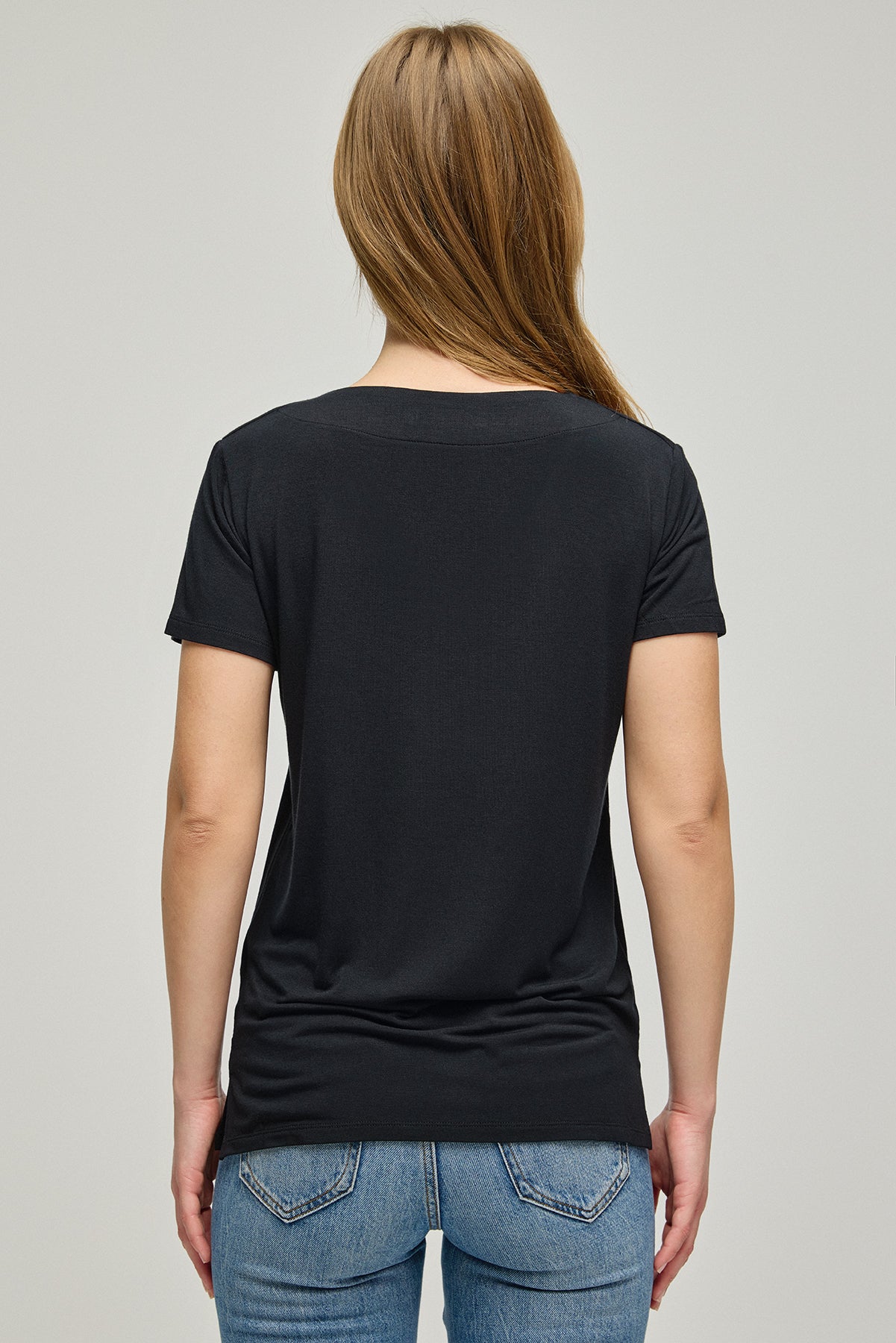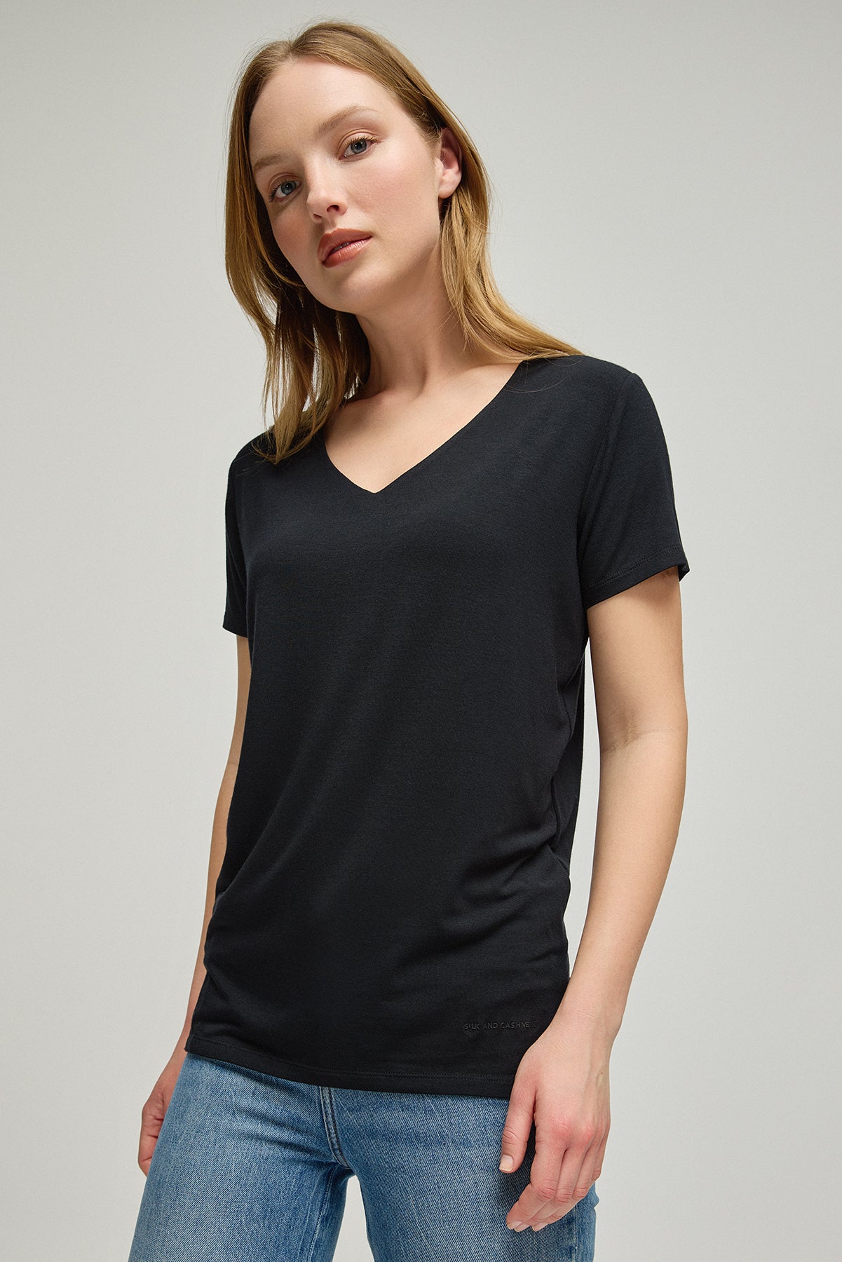 Siyah Modal Tracy V Yaka Kadın Tişört