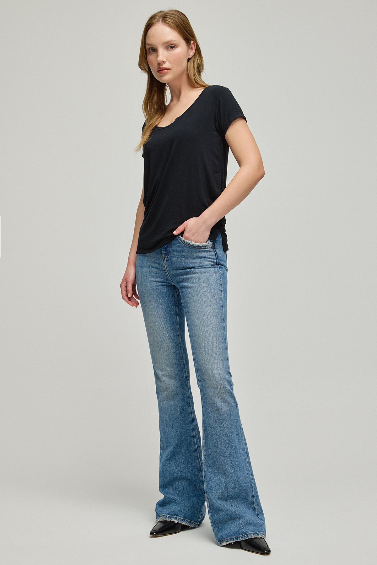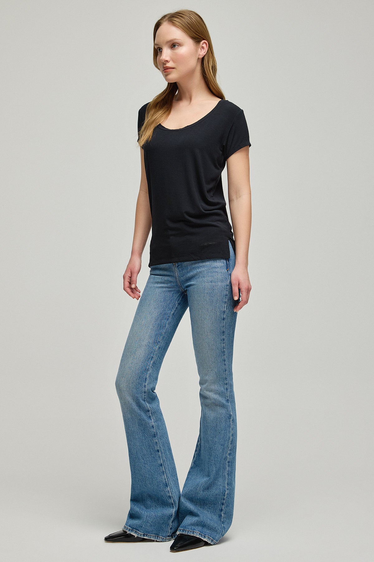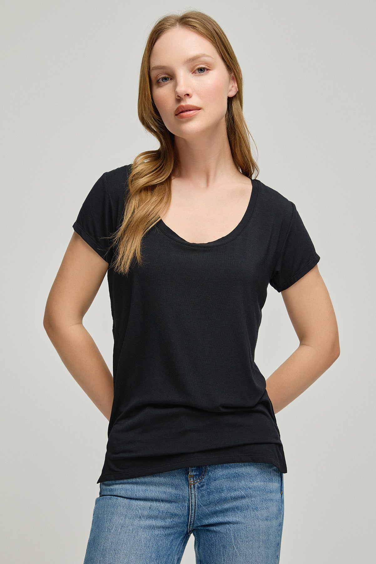 Siyah Modal Tracy Rahat Kesim Yuvarlak Yaka Kadın Tişört