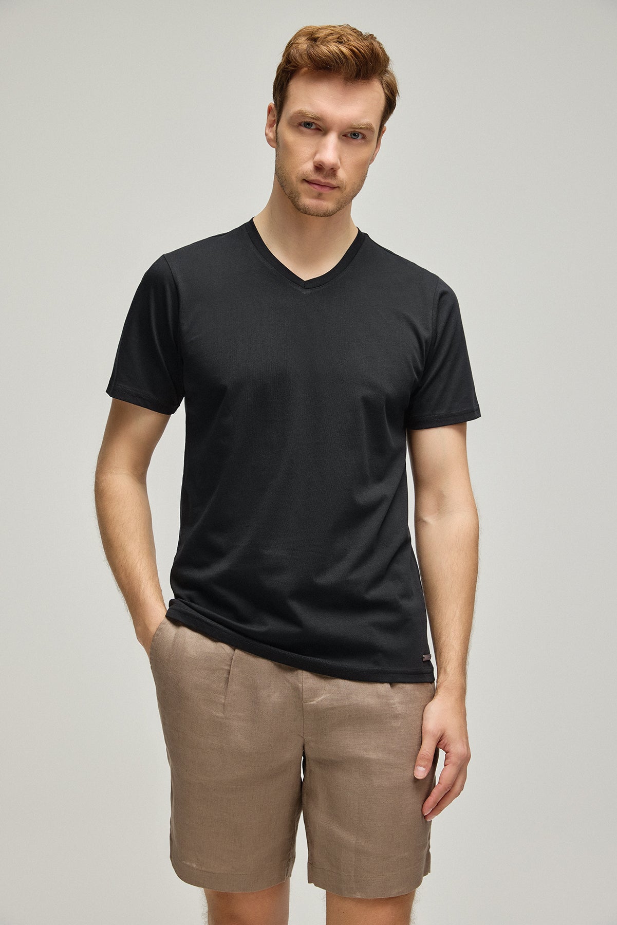Siyah & More V Yaka Kısa Kollu Erkek Tişört