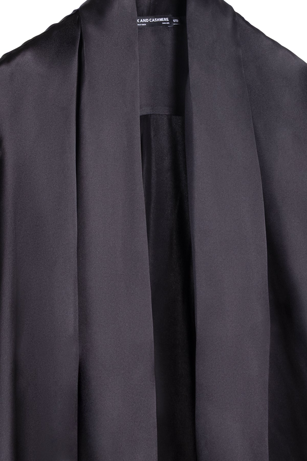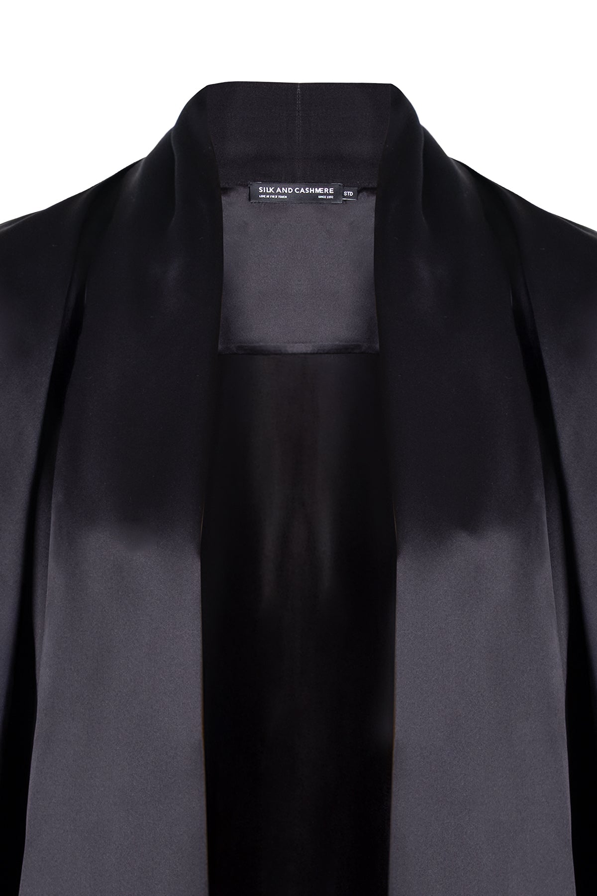 - Şal yaka detayı yumuşak geçişlerle tamamlanır.