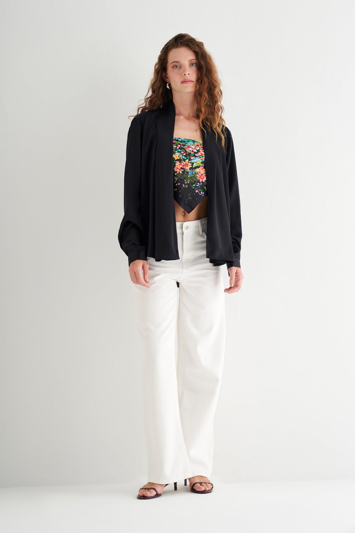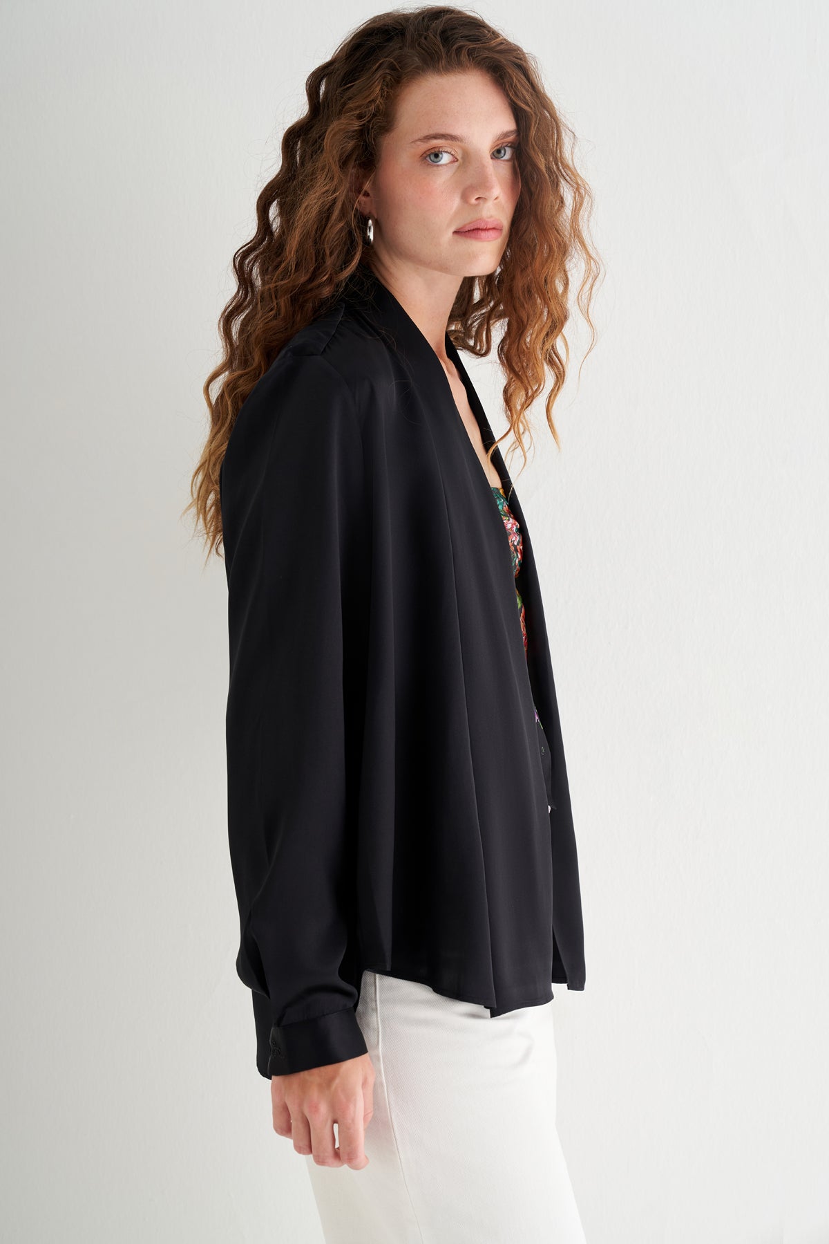 - Önü açık, dökümlü tasarımı modern ve rahat bir silüet yaratır.