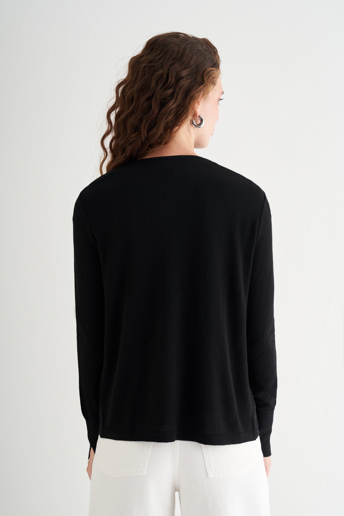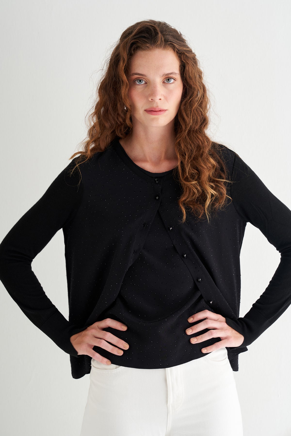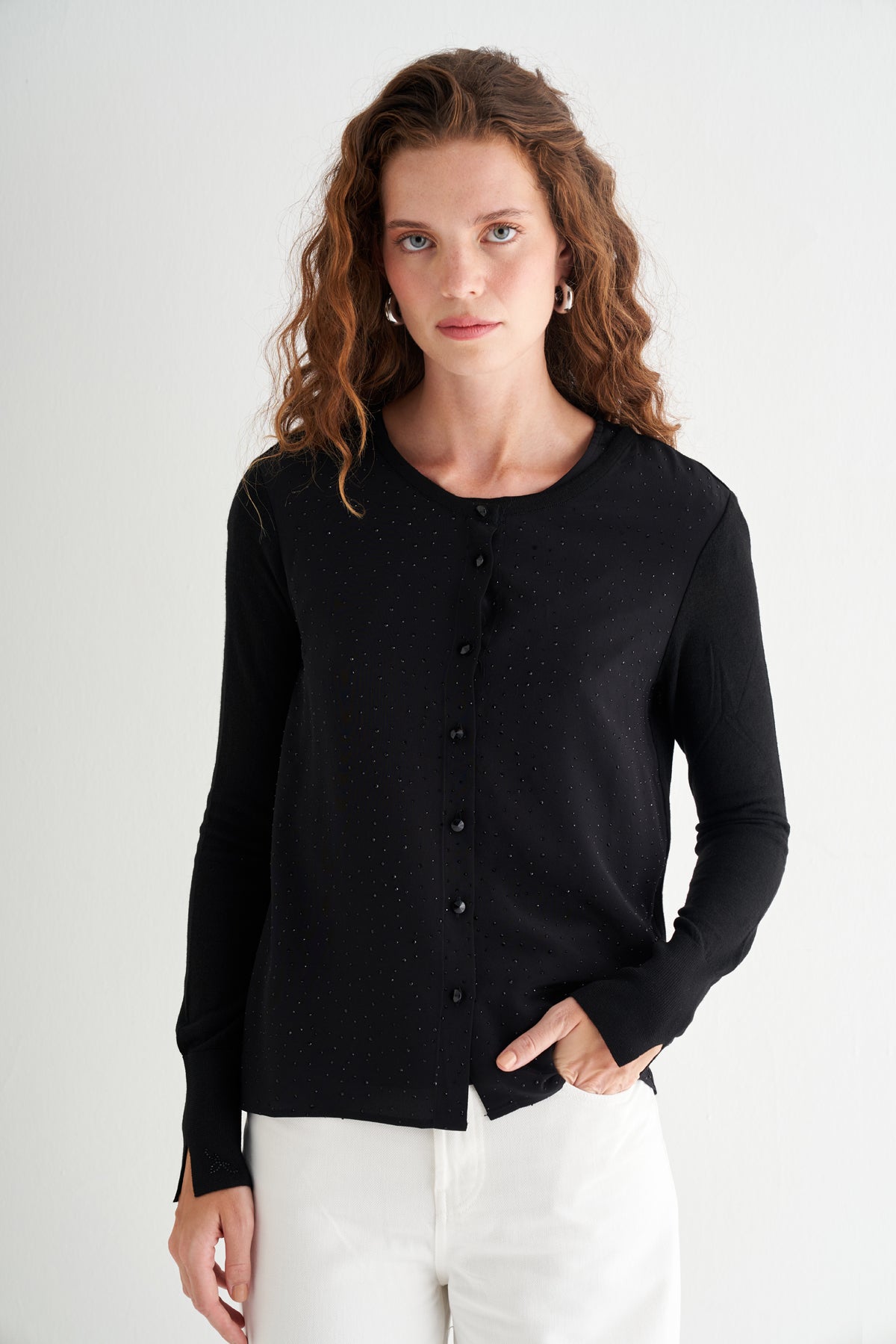 Siyah Nature İpekli Taş Süslemeli Hırka