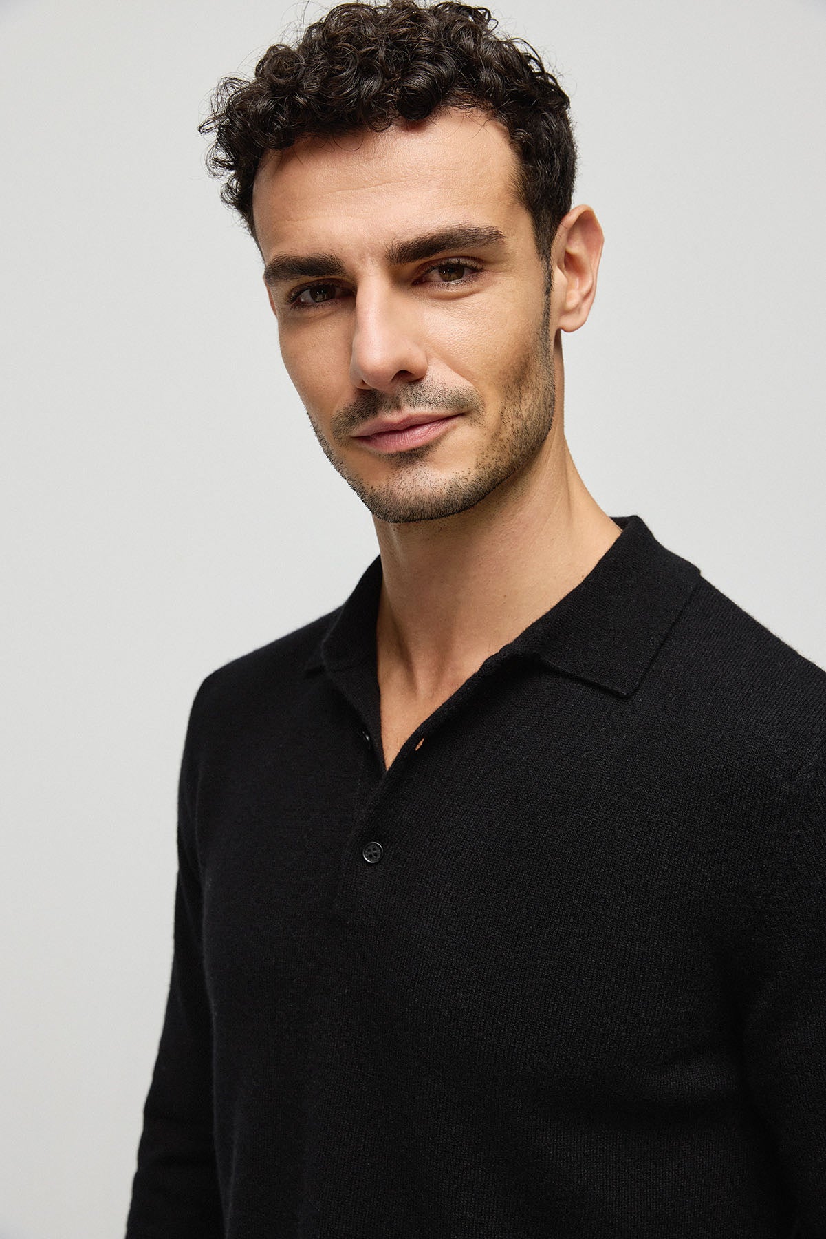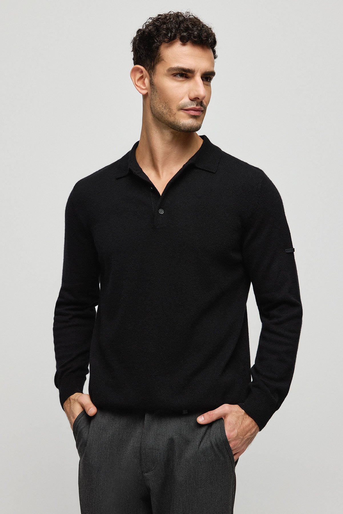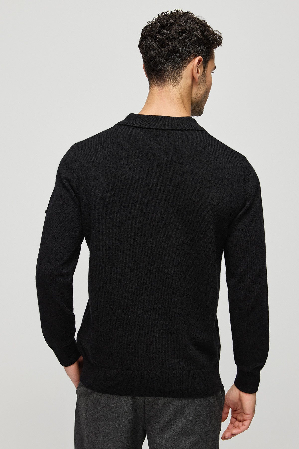 Siyah Saf Kaşmir Erkek Polo Kazak