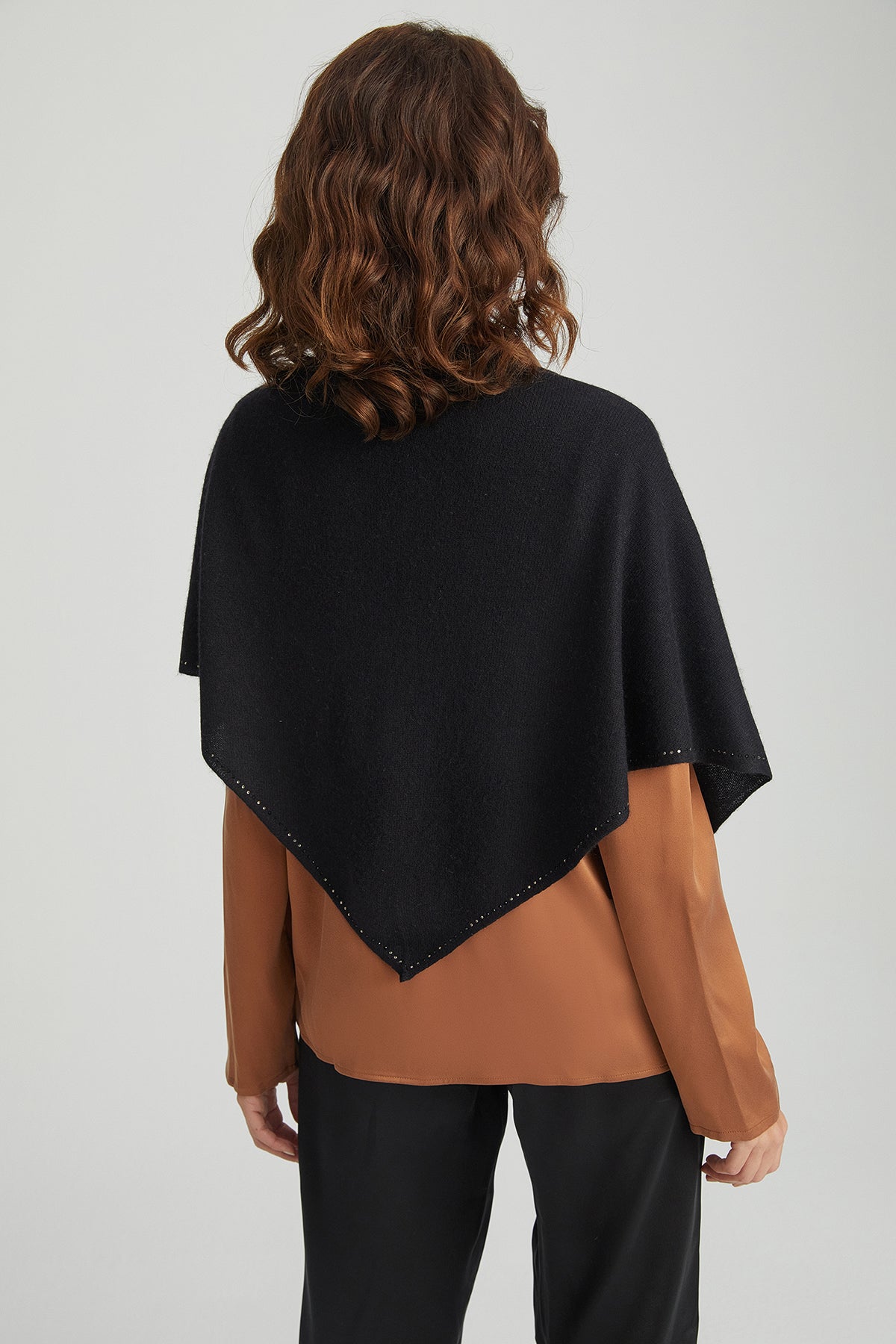 Siyah Saf Kaşmir Taşlı Üçgen Şal 105x105x165 cm