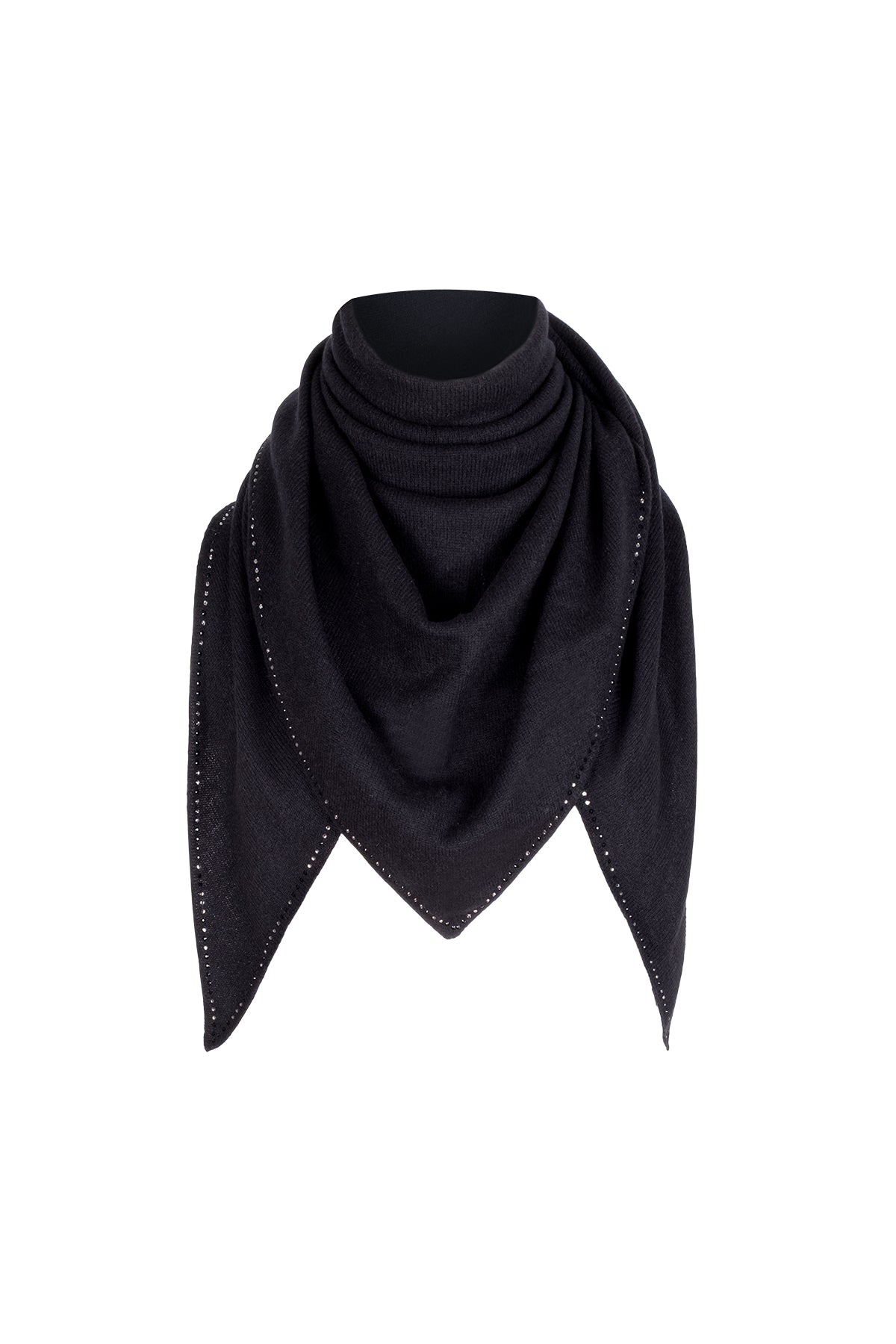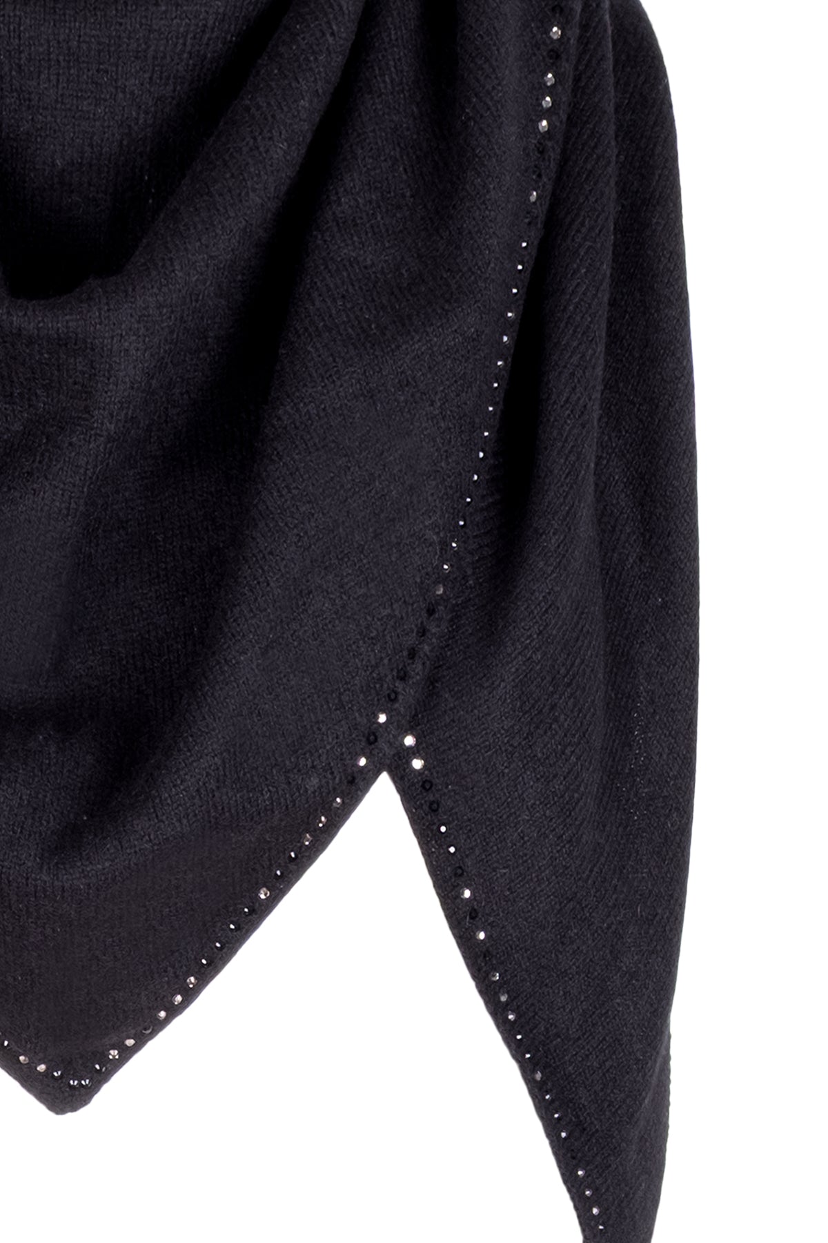 Siyah Saf Kaşmir Taşlı Üçgen Şal 105x105x165 cm